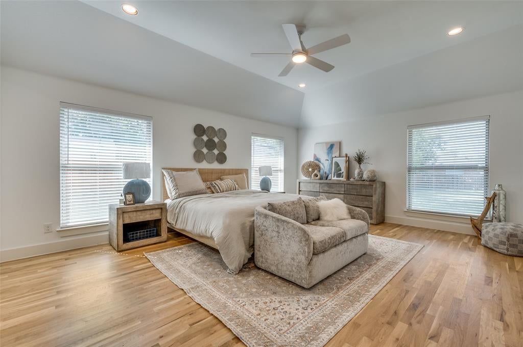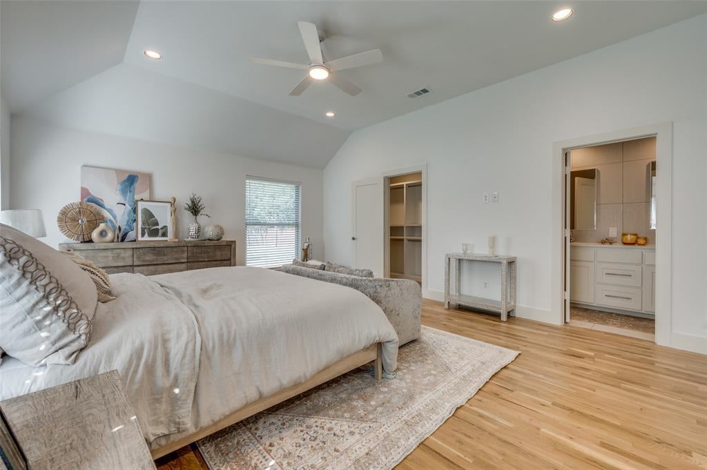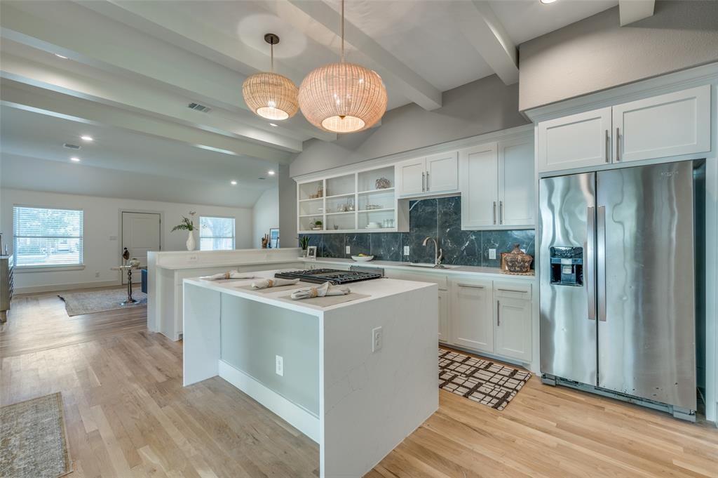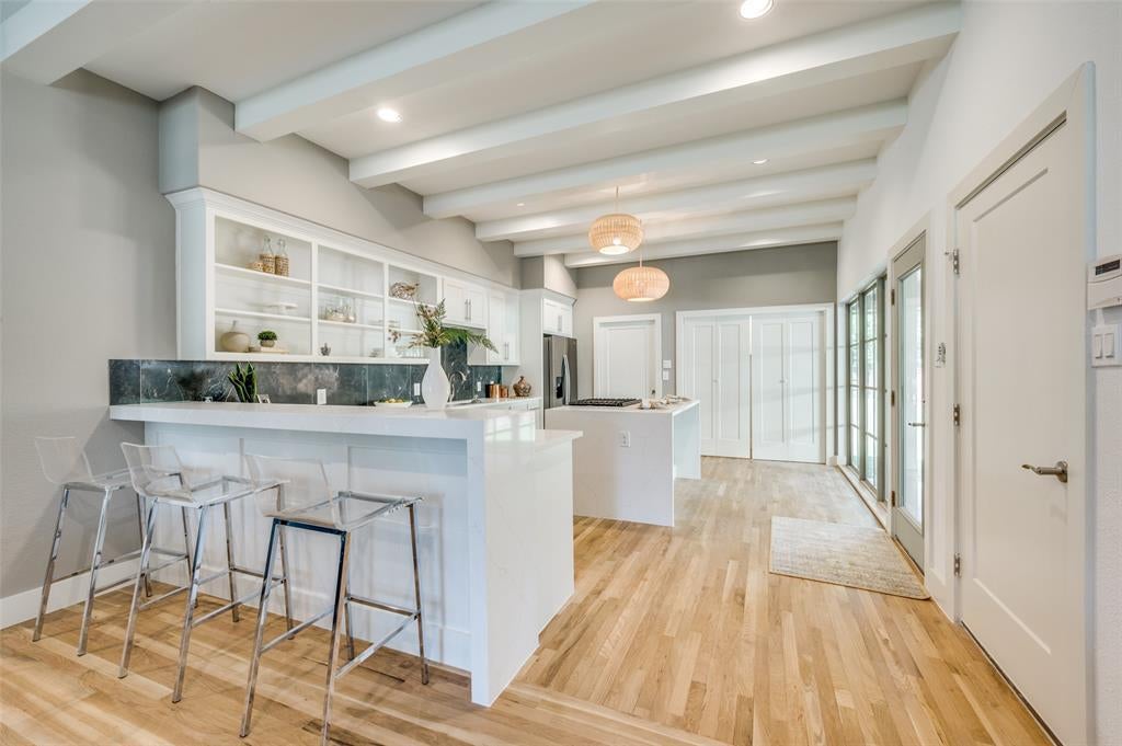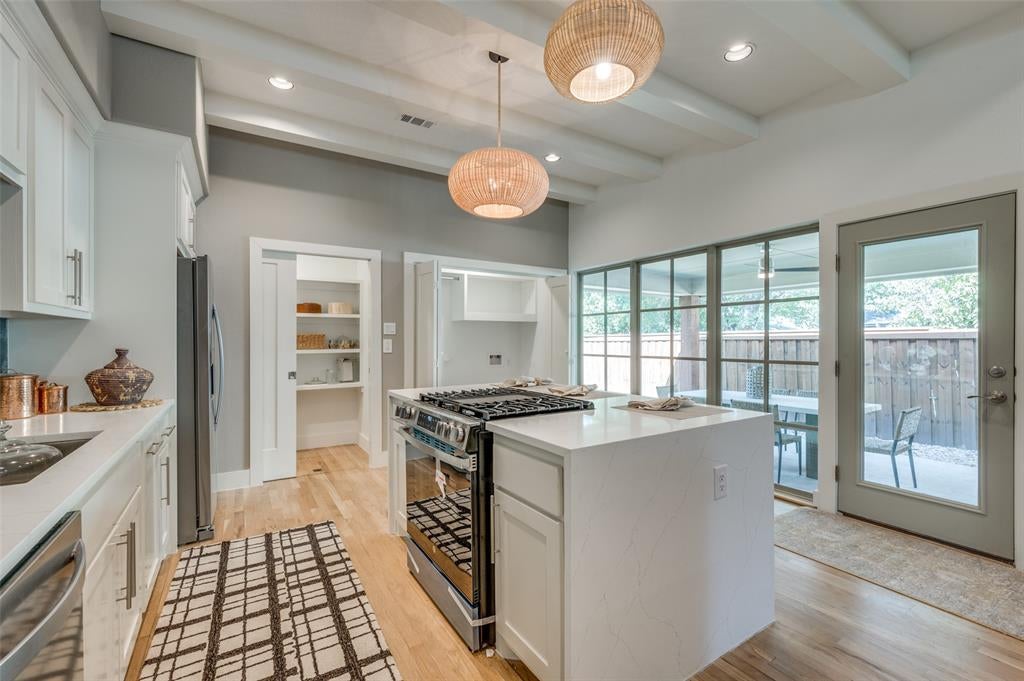 Welcome! This spacious home was beautifully remodeled with high end finishes and amber stained hardwoods with unique marquetry. Enjoy open concept living and dining with a wall of windows overlooking the covered patio and backyard. The kitchen is equipped with gas cooktop, ample storage, large panty, and the high ceiling is accented with wooden beams. The primary bedroom offers two closets, an ensuite, and vaulted ceilings. The secondary bedrooms offer nicely sized closets and there is a stylish guest bathroom. There is abundant natural light throughout the entire home. At almost a quarter of an acre, there is plenty of space for outdoor entertaining, gardening, and even a pool! Walking distance to gorgeous Centennial Park with trails, lake, pavilion, large fountain, and walking trails.