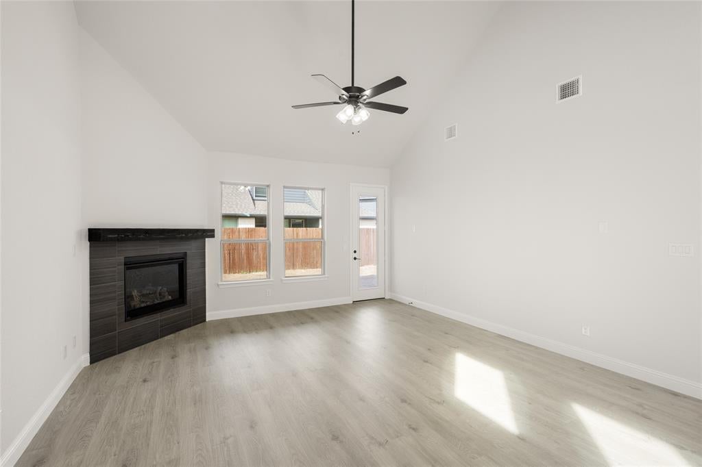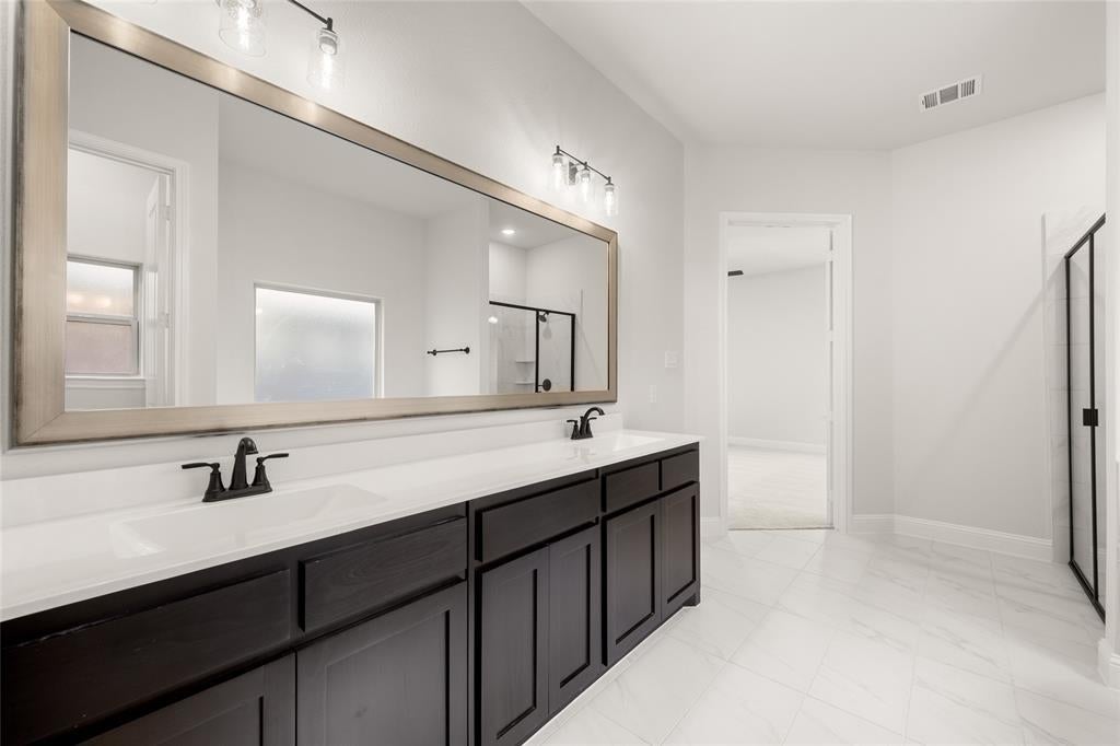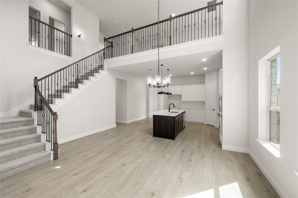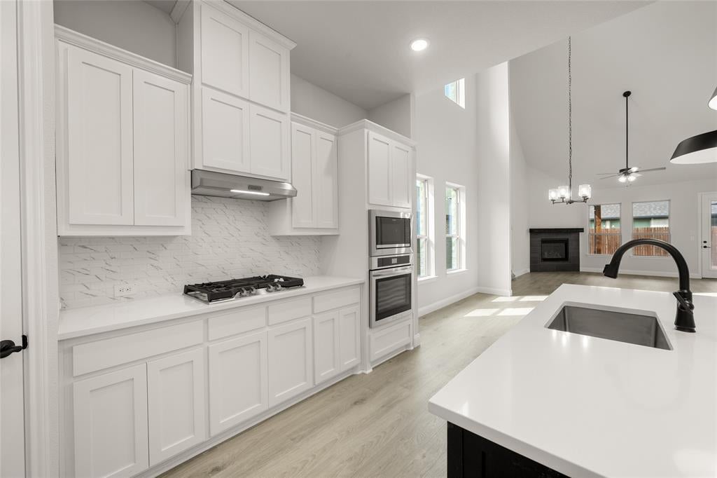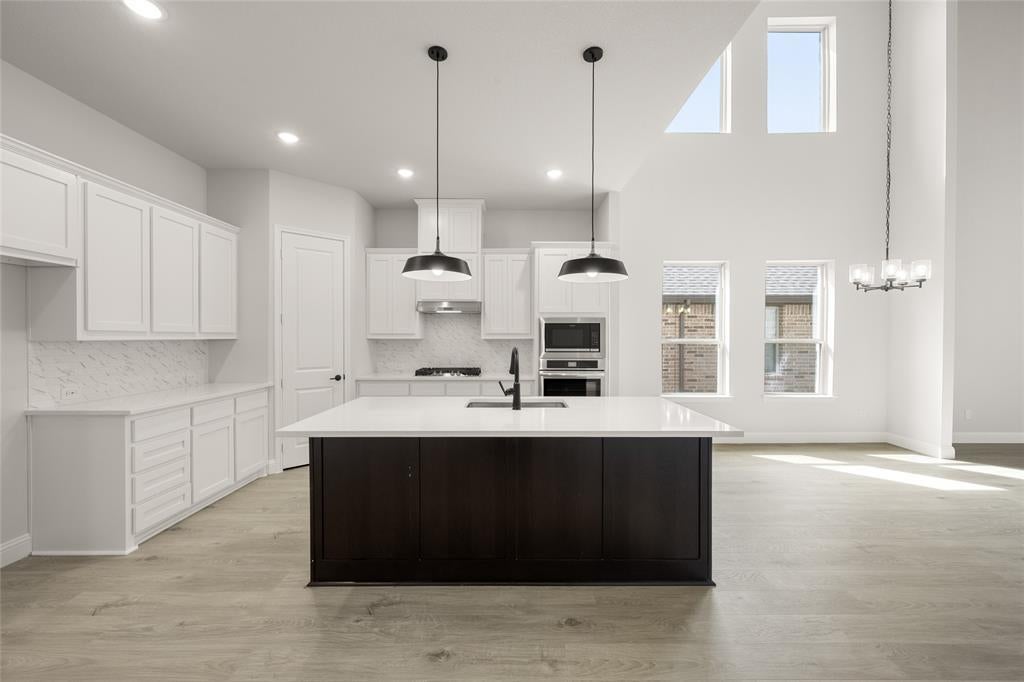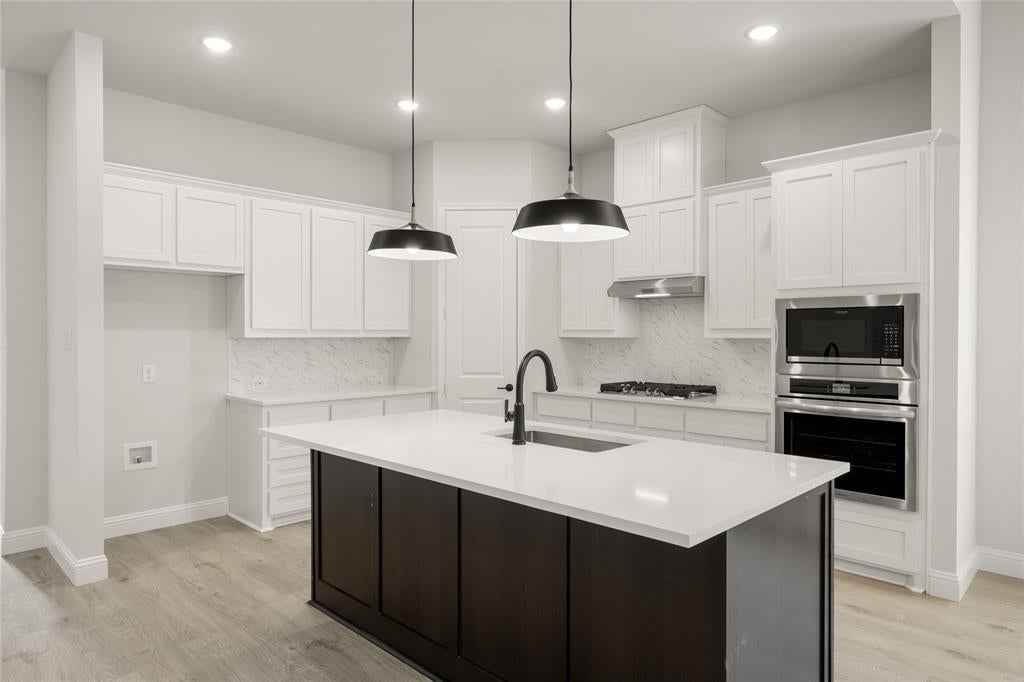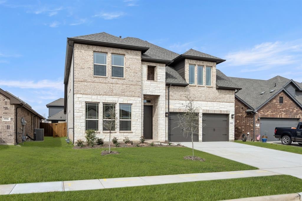 MLS# 20778417 - Built by Sandlin Homes - Ready Now! ~ Our Silverstone plan with 4 bedrooms, 3.5 bathrooms, a formal dining room, sitting area in owners bedroom, game room, media room, and a covered patio. This home is designed with 3cm quartz countertops, stained cabinets and painted cabinets at the kitchen perimeter, carpet, upgraded tile and engineered hardwood, matte black fixtures, and a tiled fireplace.