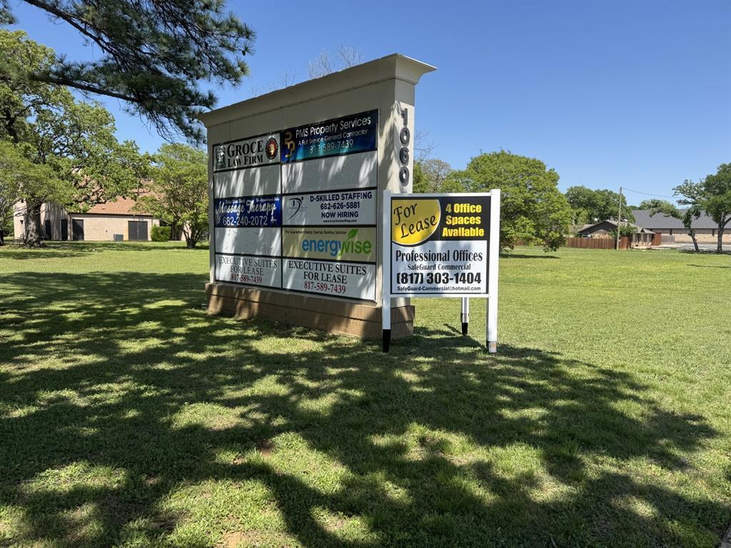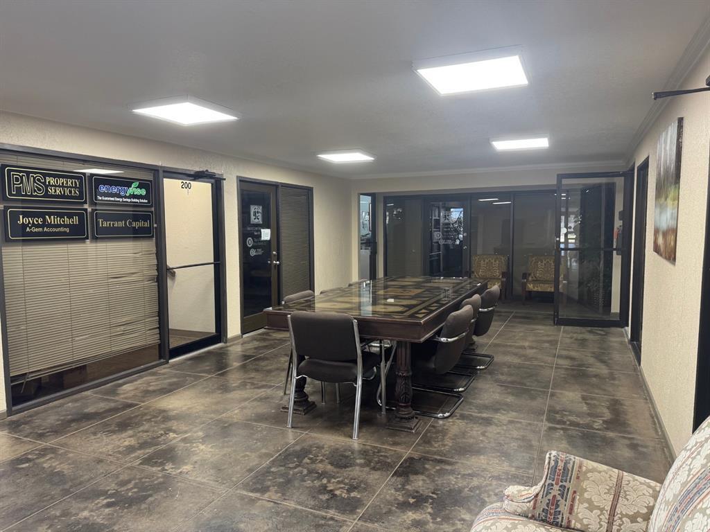 Three contiguous offices (15X10, 10X11,11X8) available and a conference room (10X20) to meet your unique requirements. Opens directly into main lobby. NEW Luxury vinyl laminate flooring. Peaceful professional office environment, first floor available with legal and podcast and photography studio neighbors. Public restrooms. Window coverings included. Lots of parking, some covered available. Recent renovated parking spaces are clean and spacious. Easy access to Hwy 183 and Hwy 820 in Hurst.