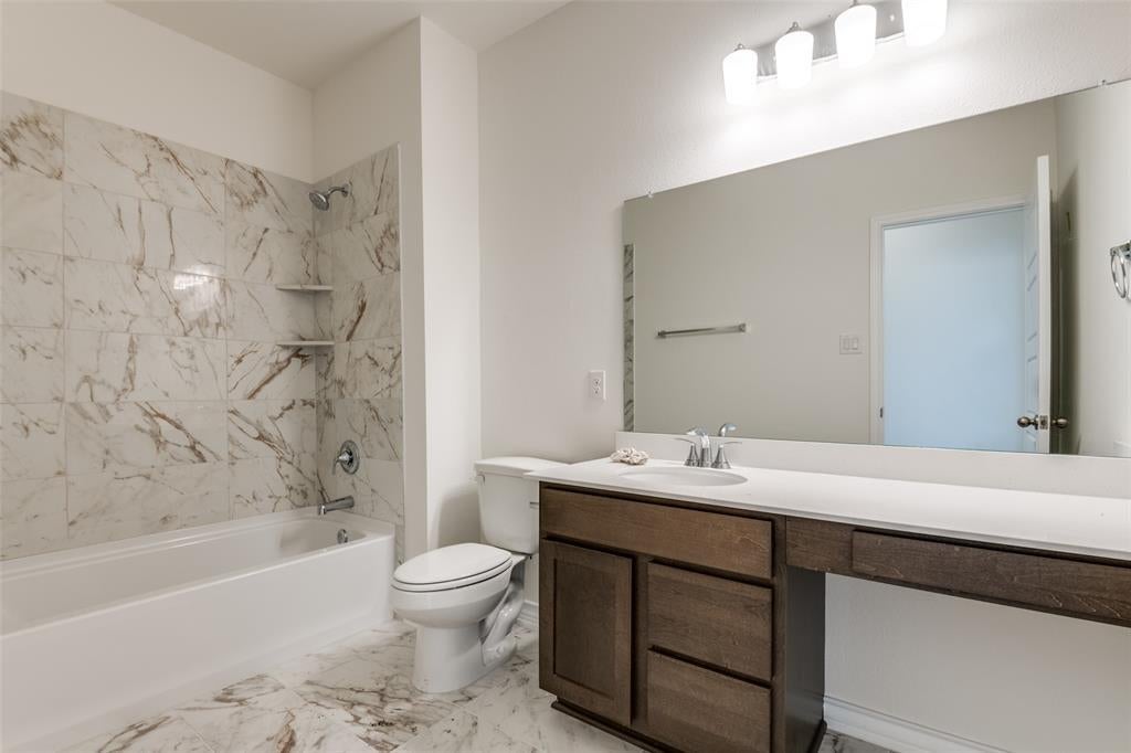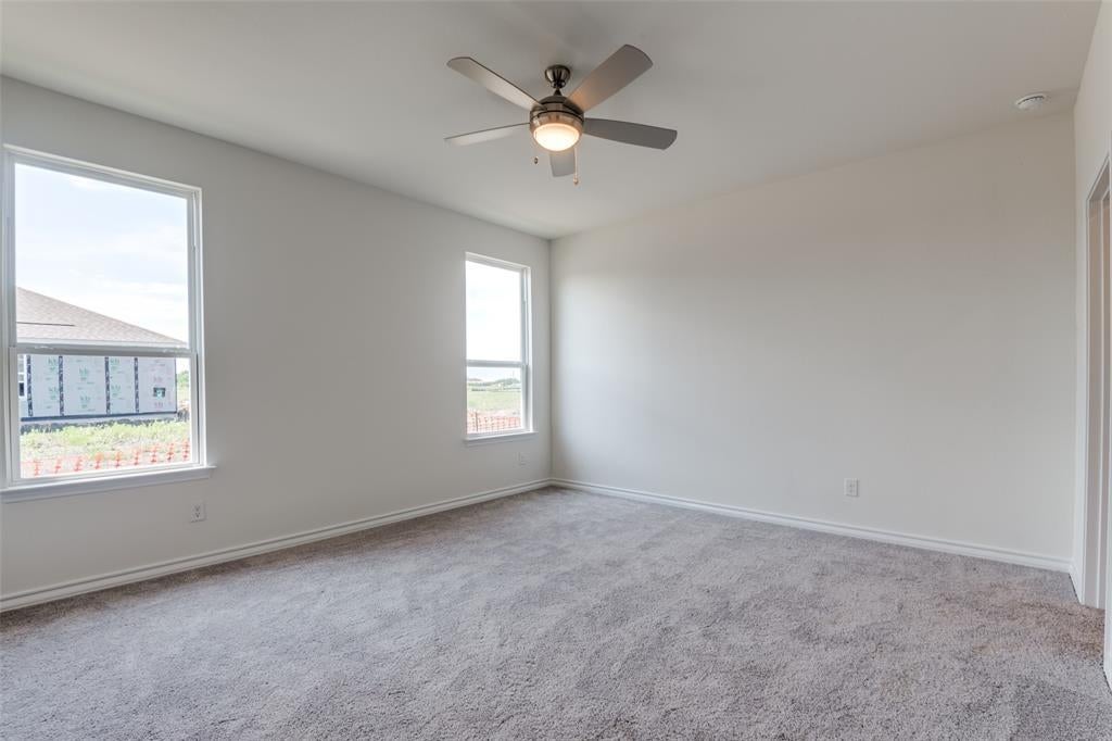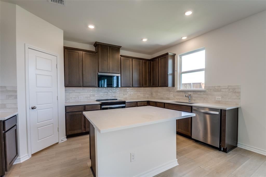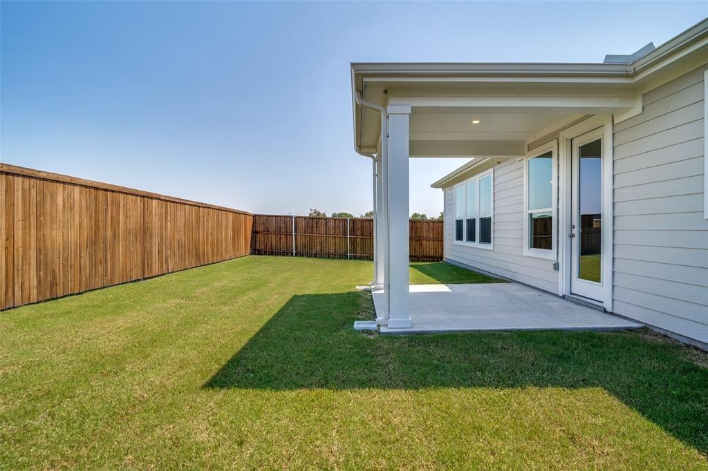 Step into this bright home featuring an open concept kitchen and living room with 9 ft ceilings, enhancing the spaciousness. The upgraded gourmet quartz kitchen boasts a sleek high arch faucet and stainless steel appliances with an innovative electric range stove. The primary bath offers an extended vanity and a fiberglass shower with chrome accents. Outdoors, enjoy a covered patio and a lush yard with a full sprinkler system. Additional touches include a stained entry door, smartkey entry, smart thermostat, and 2in faux wood blinds. Current time frames before closing may be longer than originally anticipated. See sales counselor for approximate timing required for move-in ready homes. Ask sales counselor about closing cost and rate buy down opportunities.