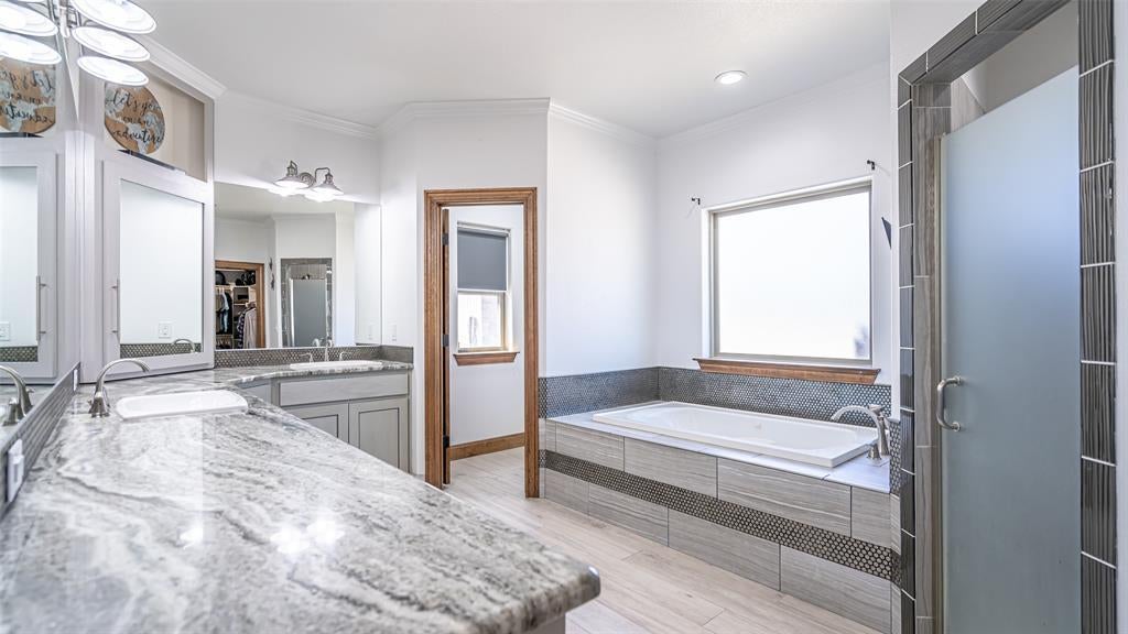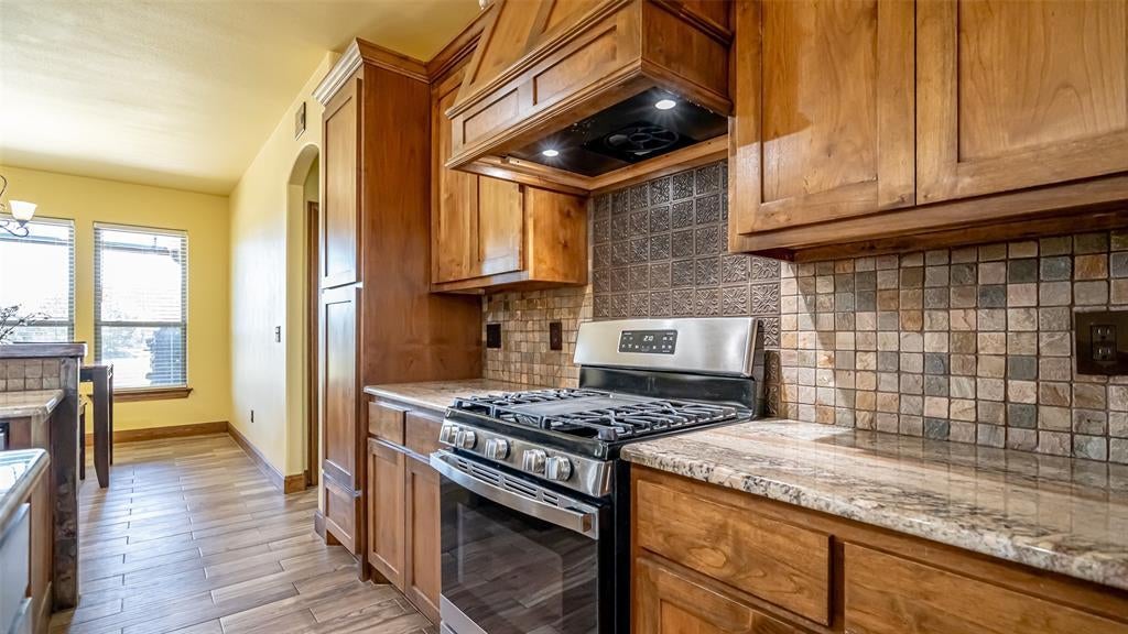 Make the drive out to see this beautiful home in Azle, Texas! This 114 Woodlot Lane property is a single-family home located within the Deer Ridge Estates Subdivision. Built in 2015, this residence offers 5 bedrooms with all walk-in-closets and 3.5 bathrooms. The master bathroom holds a 48 inch master soaker tub! The entire home is approximately 3,160 square feet of living space. The property sits on a 2-acre lot, providing ample outdoor space. Key features of the home include a kitchen equipped with granite countertops, an island, breakfast bar, coffee bar and propane stove top! This home makes it ideal for both daily living and entertaining! The living Room features a focal point rock fireplace, creating a cozy and inviting atmosphere! The Master Suite is an oversized master bedroom that boasts a three-level molded tray ceiling. The master bath includes a spacious walk-in closet with a unique built-in vanity. Outdoor Amenities: A private outdoor kitchen is accessible via the back porch and space for a family barbeque cookout! Additional highlights of the property are a 50 x 30 workshop equipped with electricity, water and 10 X 12 roll bay doors. The Workshop also has attached carport, offering versatile storage and workspace options, that can park a 45ft RV. There is a RV Hook up with electricity. Garage: A three-car garage provides ample parking and storage space. water Softener installed and Roof is 9 years old. The Deer Ridge Estates subdivision offers gated access and perimeter fencing, ensuring privacy and security for residents!