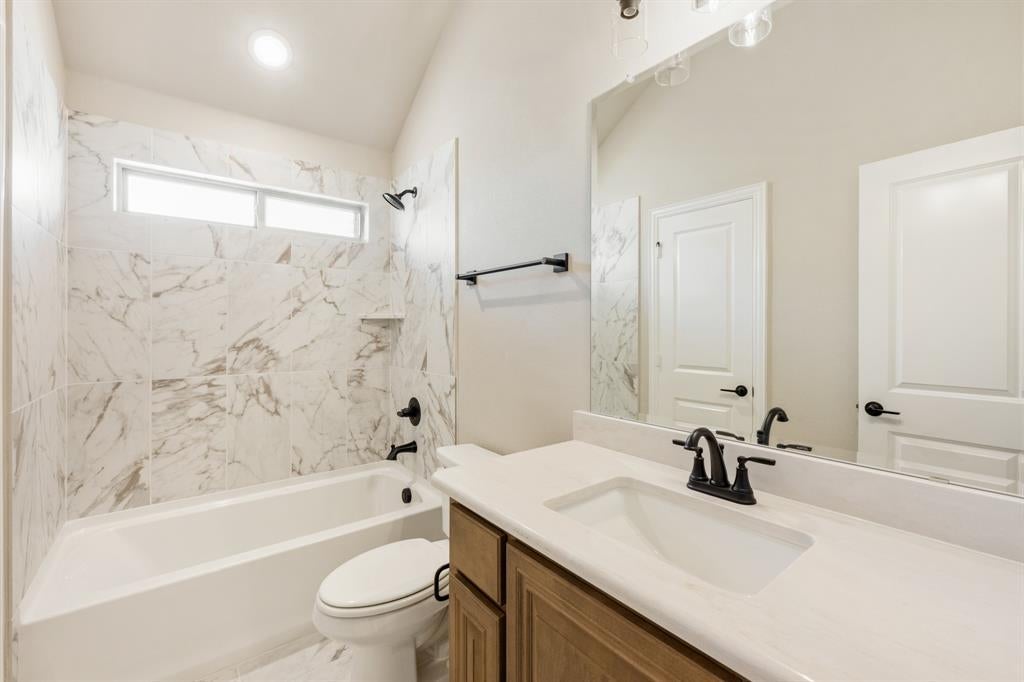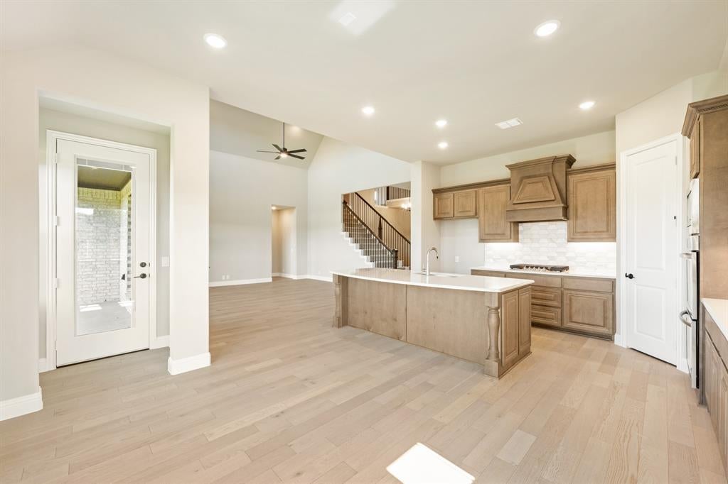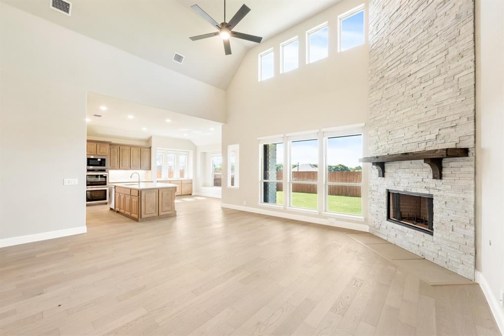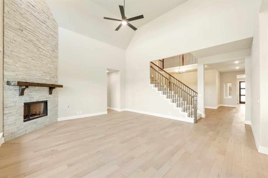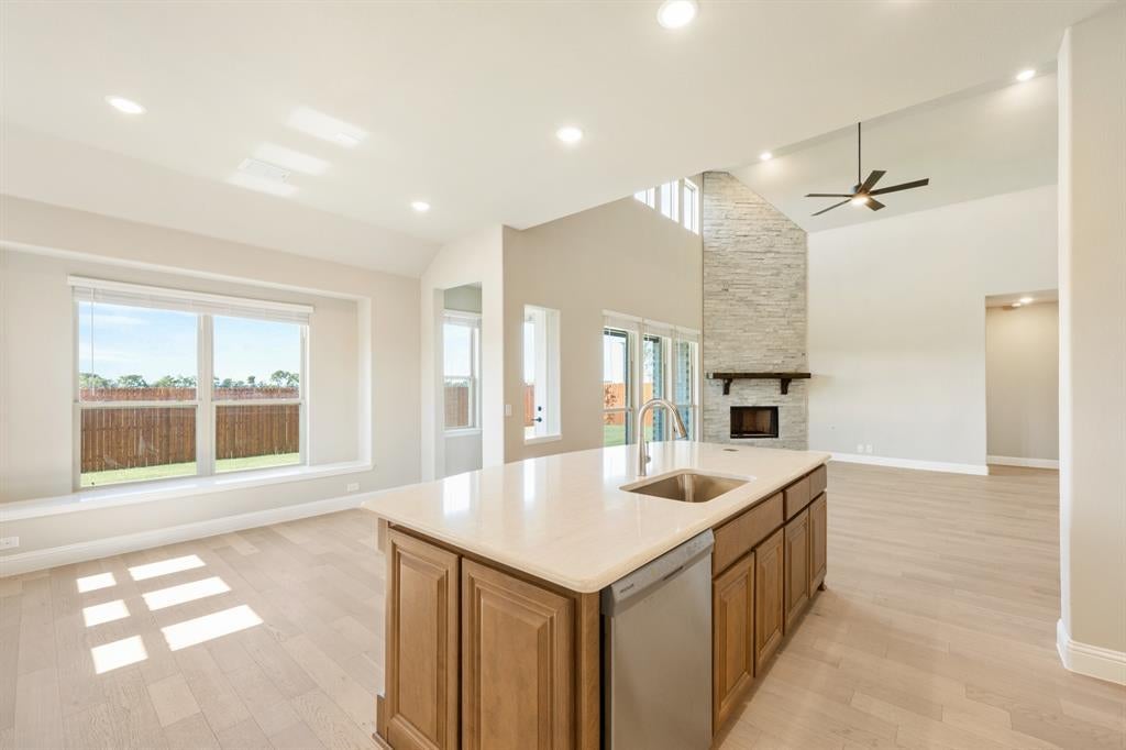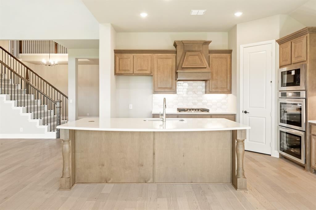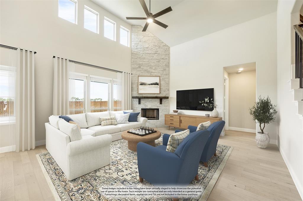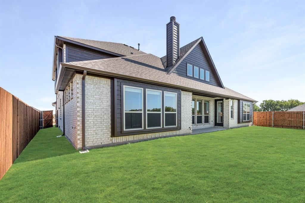 NEW & NEVER LIVED IN! Introducing Bloomfield's Primrose FE VI floor plan, a stunning two-story home with a beautiful brick and stone elevation that perfectly complements its elegant design and 8' interior doors that enhance the upscale feel throughout. Boasting 5 bedrooms and 4.5 baths, this spacious layout includes multiple bedrooms on both levels, offering the flexibility today's families need. Enter through the upgraded 8' front door into a dramatic Rotunda Entry that sets the tone for sophistication, leading to a Formal Dining area, private Study, and an expansive Family Room accentuated by vaulted ceilings and a striking Stone-to-Ceiling Fireplace with a cedar mantel. The Deluxe Kitchen is a chef’s dream with built-in stainless steel appliances, double ovens, quartz countertops, pot and pan drawers, a custom wood vent hood, and ample cabinetry for storage, seamlessly blending beauty with function. Engineered wood floors add warmth and durability across the open common areas, while charming window seats create inviting spaces to relax. Upstairs, a spacious Game Room and Media Room provide ideal areas for entertainment, and a thoughtfully designed mud room enhances organization near the garage entry. Additional features include a tankless water heater, 2-inch blinds, gutters, and a gas drop on the covered patio, all situated on a private interior lot. Set in an amenity-filled community offering scenic trails, a playground, pickleball courts, and more, this home at Timberbrook delivers the lifestyle you've been dreaming of.