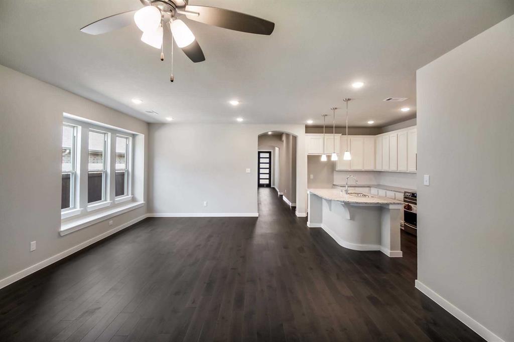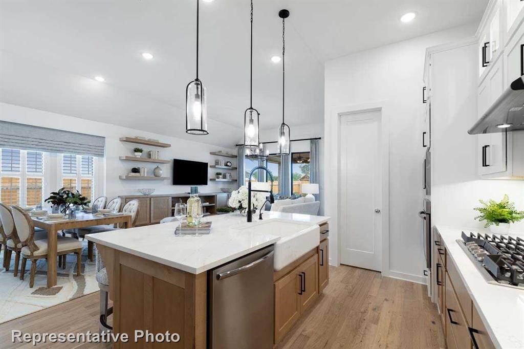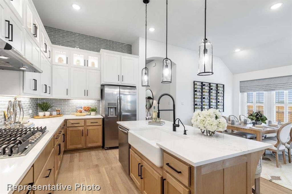 MLS# 20915795 - Built by Highland Homes - October completion! ~ Perfect 1 story plan, 3 beds, 2.5 baths with study. This home is 100% brick, full gutters with tie in drains. Beautiful 8 foot solid wood front door. All exterior and interior doors are 8 feet. Chefs' kitchen featuring 36-inch 5 burner cooktop, built in oven and microwave, quartz countertops, large island, walk in pantry and 42inch upper cabinets with adjustable shelves. Primary bath includes drop-in tub with separate shower, knee space to sit and do your hair and makeup and linen closet. Wood floors from front door to back door in main living areas and hallways. Designer finishes throughout. Large, covered patio great for entertaining and lounging. Full sprinklers. 6 foot stained cedar fenced. Master plan community!