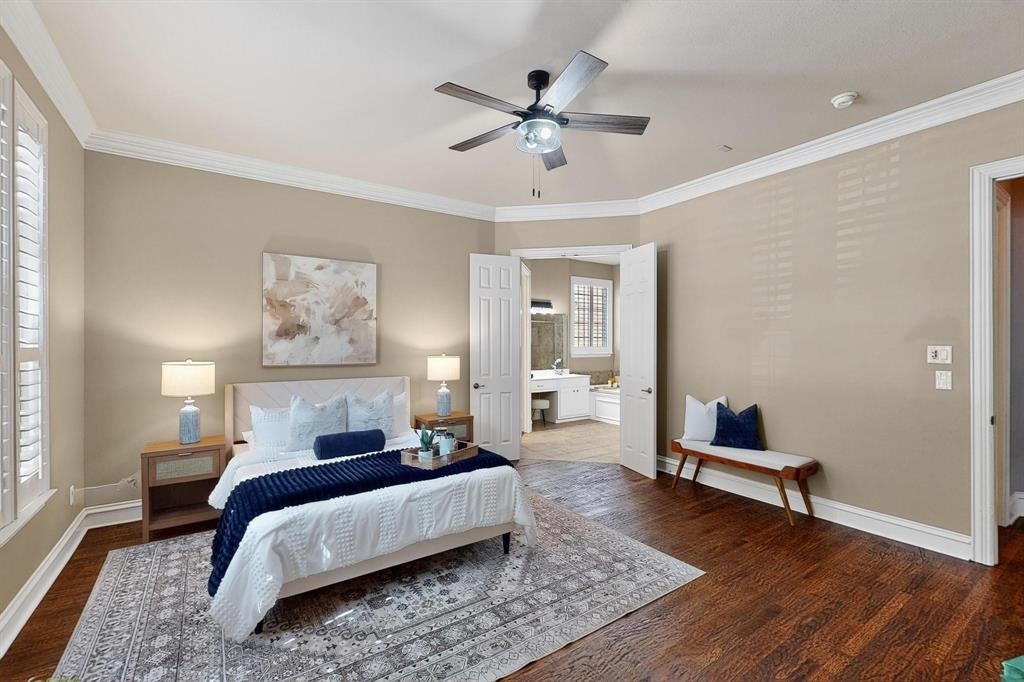 Bedroom / BathroomCustom Closet System, Dual Sinks, Ensuite Bath, Hollywood Bath, Medicine Cabinet, Sitting Area in Master, Separate Shower, Separate Vanities, Walk-in Closet(s)
