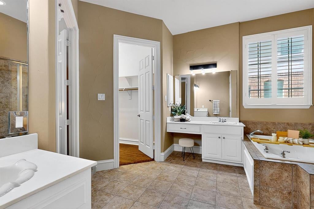 Dual Sinks, Ensuite Bath, Hollywood Bath, Separate Shower, Separate Vanities, Sitting Area in Master, Walk-in Closet(s), Custom Closet System, Medicine Cabinet