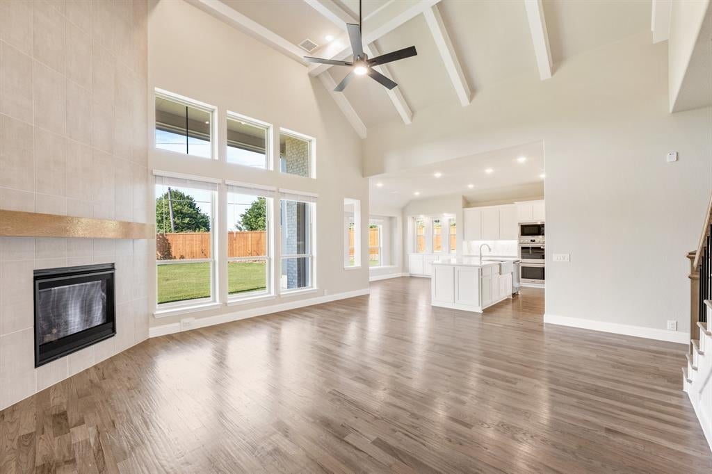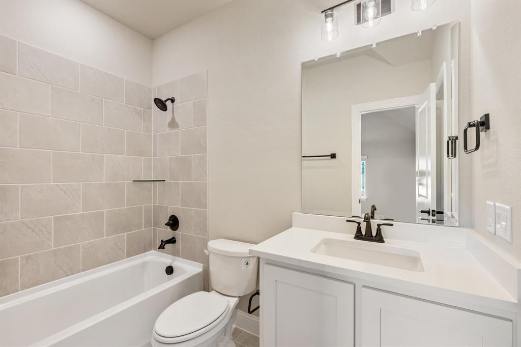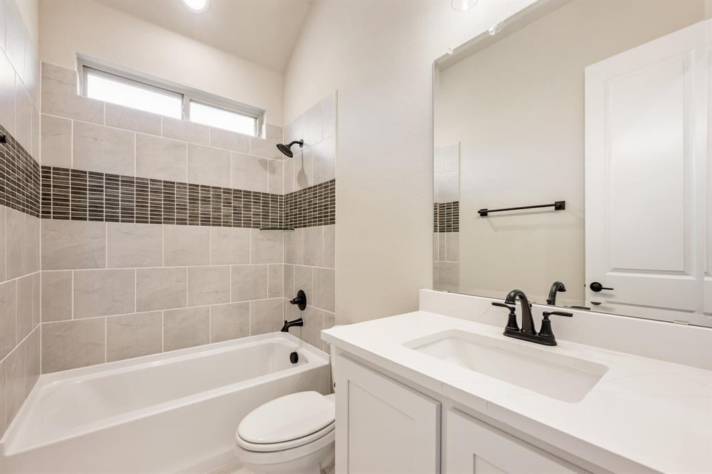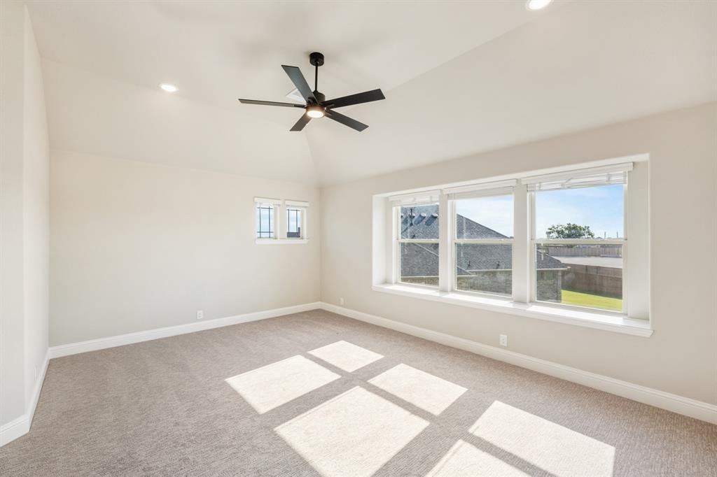 NEW! NEVER LIVED IN. Available to Move-In NOW! Discover the Primrose VI by Bloomfield Homes—a sophisticated two-story haven set on an oversized cul-de-sac lot in the desirable Rockwood community. This thoughtfully designed 5 bedroom, 4.5 bath home offers a 3-car garage with beautiful cedar doors, blending curb appeal with functionality. Step inside through a grand Rotunda Entry that immediately sets a tone of elegance, leading you past a tranquil Study enclosed by glass French doors and into a formal Dining Room perfect for entertaining. The heart of the home is the Gourmet Kitchen, featuring Professional Series appliances, double ovens, mosaic tile backsplash, under-cabinet lighting, and striking Quartz countertops paired with painted cabinetry and designer hardware. Flowing effortlessly from the kitchen is the expansive Family Room, where large windows flood the space with natural light and a dramatic Tile-to-Ceiling Fireplace with gas logs adds warmth and style. Gorgeous wood floors span the first-floor common areas, complementing the custom wood staircase with iron railing. The luxurious Primary Suite offers a private retreat with a garden tub, separate shower, and an oversized walk-in closet. Upstairs, enjoy movie nights in the Media Room, game time in the spacious Game Room with built-in Tech Center, plus 2 additional bedrooms and baths—ideal for guests or family. Step outside to a covered patio with backyard views and a built-in gas stub, ready for your next grill-out. Extras like blinds, gutters, and architectural uplights complete the package. Come experience refined living with Bloomfield at Rockwood!