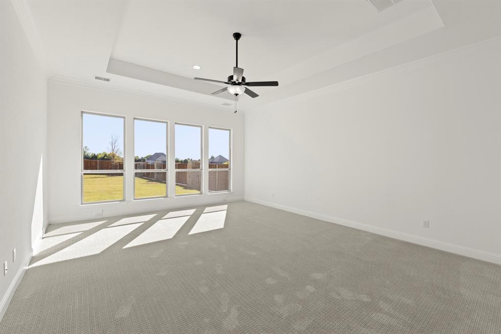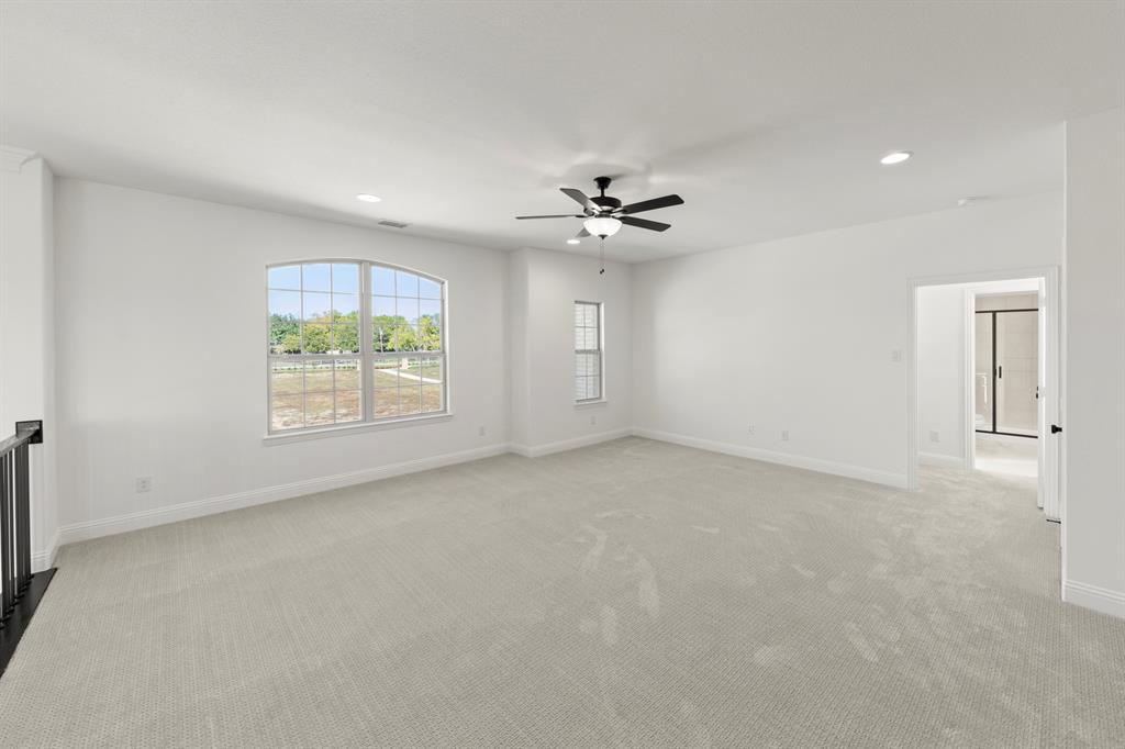 MLS# 20932825 - Built by Windsor Homes - Ready Now! ~ This stunning single-family residence, set for completion by October 2025, boasts 5 bedrooms and 5 full bathrooms and a powder across a spacious 4,741 square feet. Nestled in the desirable Winding Creek subdivision within the Rockwall ISD. This home features an open floorplan enhanced by a two-story family room. Enjoy culinary delights in the eat-in kitchen equipped with quartz counters, a kitchen island, and a butler's pantry. The property offers a study, gameroom, and media areas, perfect for entertaining. A elegant tiled two story gas fireplace adds sophistication to the family room. The exterior features a covered patio, exterior fireplace, and full sprinkler system. Additional highlights include drive-through Porte Cochere 3-car garage, and smart home system. Situated on a corner lot, this home is designed for modern living with thoughtful details throughout.