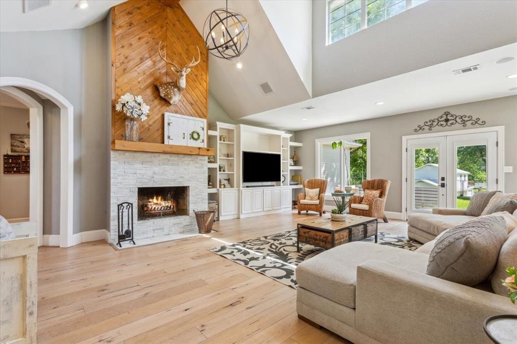 Welcome to a truly exceptional 3-acre Brazos Riverfront estate in the coveted Stillwater Farms gated community. This picturesque property, located in the highly rated China Spring ISD, offers a rare combination of natural beauty, thoughtful design, and modern comfort. A rolling, tree-dotted lawn slopes gently to the river’s edge, where you’ll find private water access perfect for launching kayaks, paddleboards, airboats, or simply enjoying peaceful days fishing and floating. With no fencing between neighbors, the setting feels like a private park—open, tranquil, and lush. The two-story home boasts inviting curb appeal, with a circular drive accented in brick, carriage house shingles, and a charming wrap-around porch ideal for taking in Texas sunsets. Inside, light wide-plank hardwood floors and a soaring two-story foyer create a bright, airy feel throughout. The great room features a beamed ceiling, floor-to-ceiling windows framing the stunning backyard, and a wood-burning fireplace. It flows seamlessly into the open kitchen and dining area, complete with a large island, varnished wood countertops, stainless appliances, gas cooking & glass-front cabinetry. The main level hosts the primary suite with ensuite bath, a guest bedroom, a cozy library with fireplace and coffered ceiling, an office or craft room with stainless countertops, laundry room with sink, and guest powder bath. Upstairs are three spacious bedrooms with direct bath access and a versatile loft nook. Just down the lawn, a detached structure includes a three-car garage, workshop, and half bath below, with a 17'x24' finished space above—perfect for a studio, guest suite, or rental. Bonus: friendly goats Hiccup and Duke are happy to stay! Only minutes from Waco Airport (9 miles), Downtown Waco (14 miles), & Baylor University (15 miles), this unique riverfront retreat blends the serenity of country living with city convenience. Stillwater Farms gated community offers a private boat ramp for residents only.