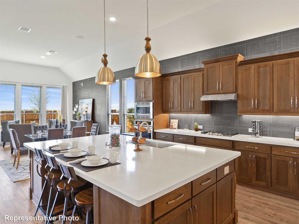 Discover the Yale floor plan, a thoughtfully designed single-story home offering 2,750 sq ft of versatile living. At the center is an open-concept kitchen featuring a large island, stainless steel appliances, abundant cabinetry, generous counter space, and a bright casual dining area perfect for entertaining or everyday living. The private owner’s suite is tucked at the back, offering a relaxing retreat with a split vanity, soaking tub, separate shower, and expansive storage. A guest bedroom sits just off the kitchen, while a separate bedroom with private bath near the foyer provide ideal flexibility for guests or multigenerational living. This new home community will boast our new houses for sale, just a stone's throw away from Fort Worth and the town square of Aledo that features a diverse selection of dining options. With easy access to both I-20 and I-30, commuting to Fort Worth's bustling city center is a breeze, making it ideal for professionals and families alike. Rio Vista at Kelly Ranch is a short drive down Highway 377 to Benbrook Lake for those seeking water activities and offers fishing, boating, and scenic views. For all your shopping needs, look no further than the Shops at Willow Park, where you'll find an array of boutiques, restaurants, and entertainment options.