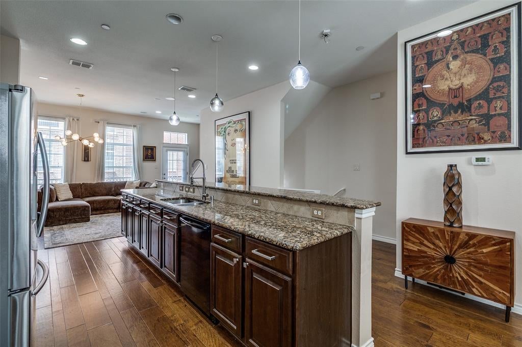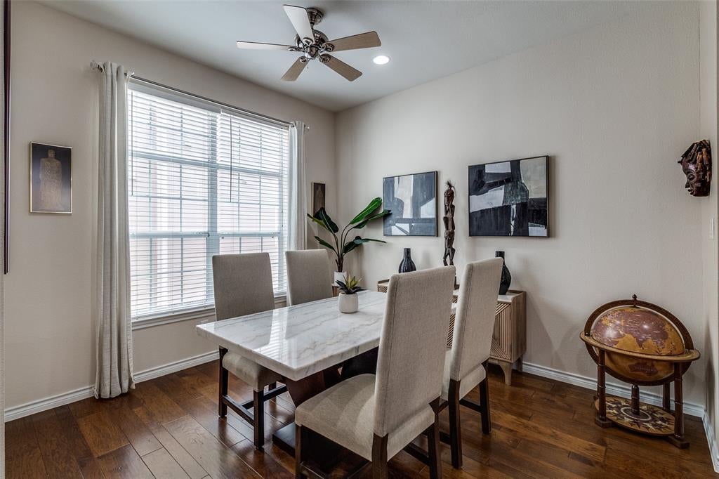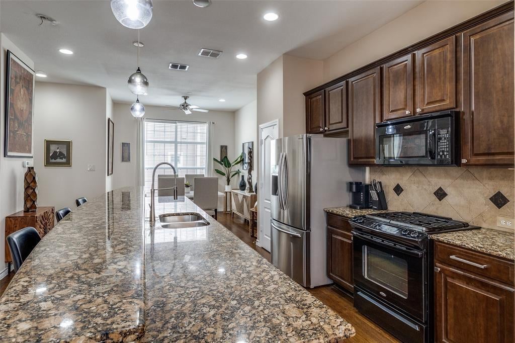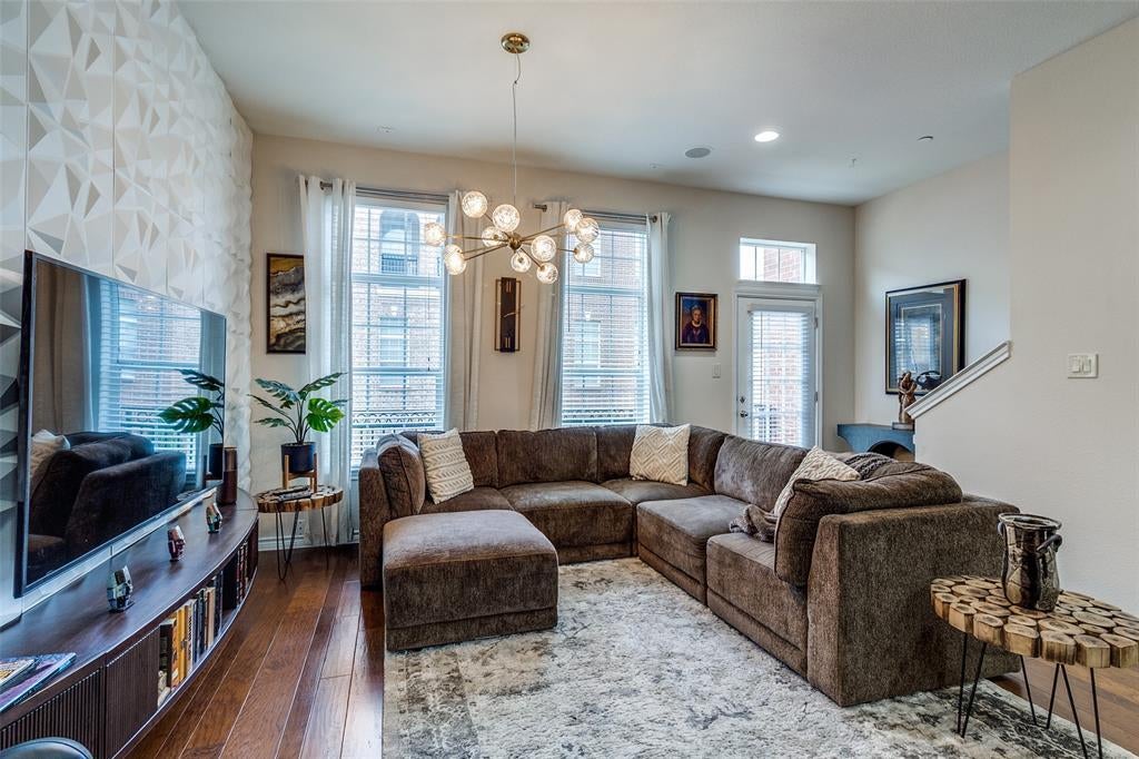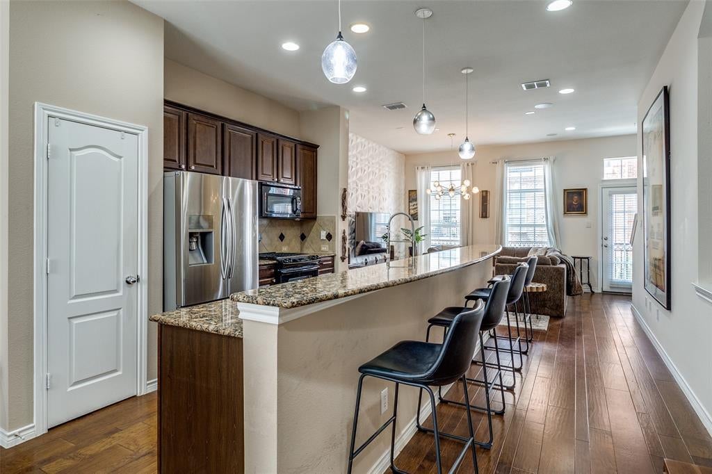Urban Elegance Meets Modern Comfort. 3-Story Townhome minutes from Addison's exciting shops and restaurants. Experience the perfect blend of sophistication and convenience in this meticulously designed three-story townhome. Offering a seamless balance of privacy, style, and urban accessibility, this residence is tailored for the discerning buyer who values both form and function. Step inside and go upstairs to discover an open-concept main level living featuring hardwood floors, large kitchen, ideal for gathering and entertaining, dining and living with large windows that flood the space with natural light. The chef’s kitchen is outfitted with stainless steel appliances, granite countertops, and large kitchen island with plenty of available additional seating. The first level boasts a guest suite or home office with an ensuite bath. The private top-floor primary retreat offers a spa inspired ensuite, a walk in closet, sitting area and convenient third floor laundry room. Main level balcony, overlooking courtyard is perfect for sunset cocktails. Located in an exclusive enclave near vibrant dining and boutique shopping, this townhome offers city living at its most refined.