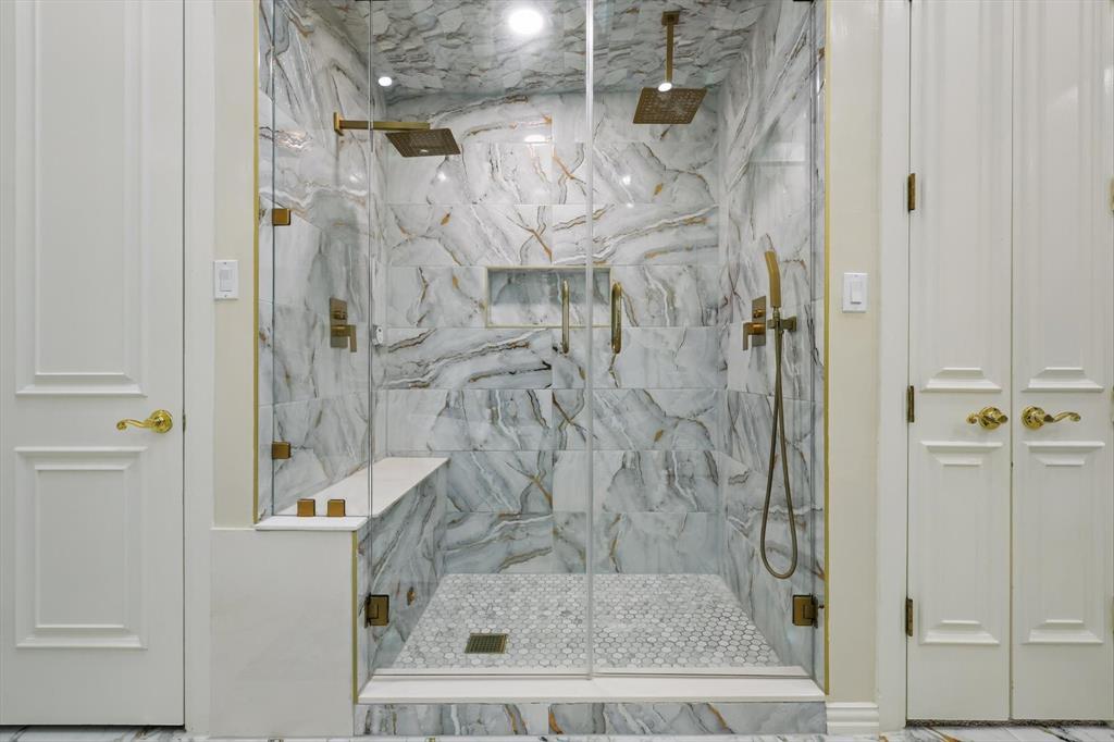 | Master Bathroom | 18 x 14 | 1 | Bidet, Built-in Cabinets, Built-In Desk, Custom Closet System, Double Shower, Drip/Dry Area, Dual Sinks, Ensuite Bath, Granite/Granite Type Countertop, Jetted Tub, Linen Closet, Natural Stone/Granite Type, Separate Shower, Separate Vanities, Sitting Area in Master, Steam Shower |