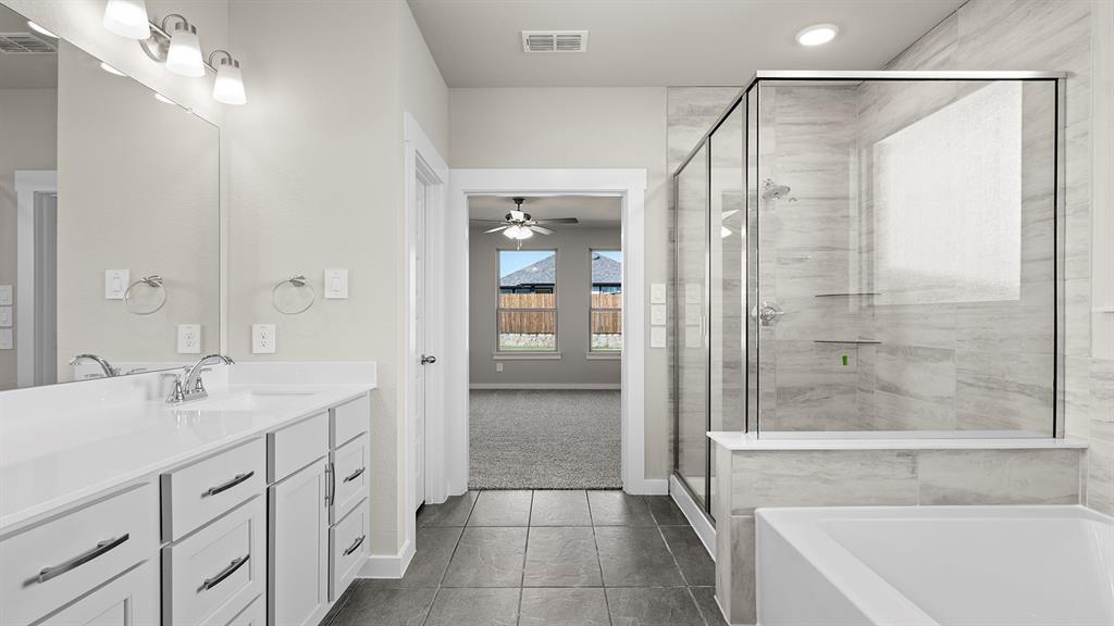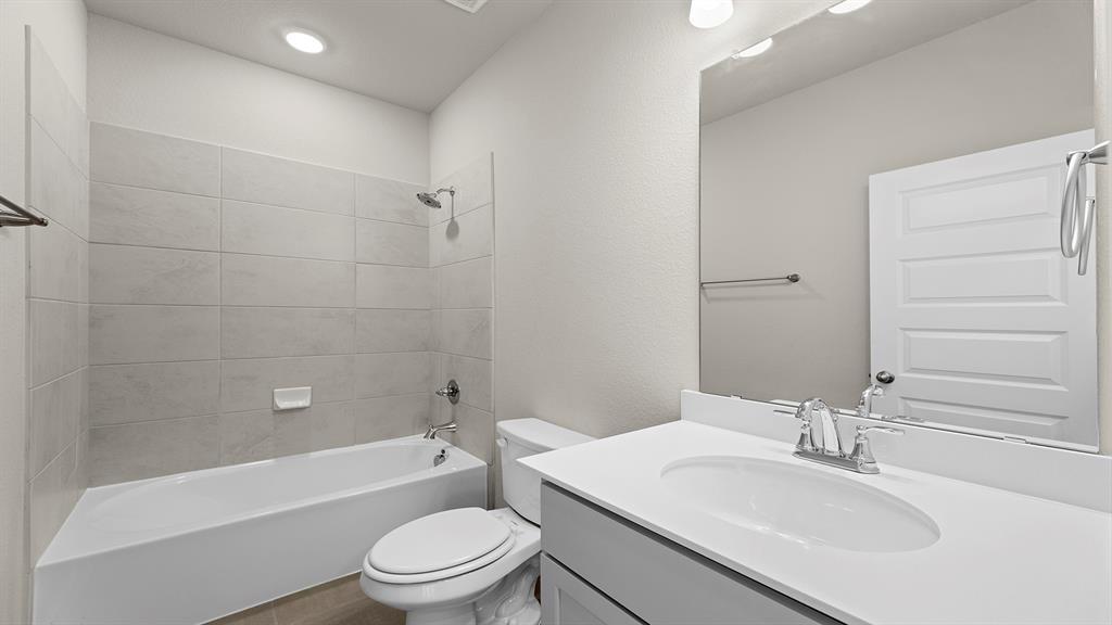MLS# 20952734 - Built by HistoryMaker Homes - Ready Now! ~ This beautifully designed 2-story home combines modern aesthetics with practical living. At the heart of the home is the expansive living and dining area, which flows seamlessly into the kitchen - featuring quartz countertops, large kitchen island, walk-in pantry, and upgraded built-in appliances. The primary bedroom, located on the first floor, offers an extended vanity, walk-in closet, and garden tub with a separate shower. An extra secondary bedroom on the first floor provides flexibility for guests, an office, or a workout room. Upstairs you will find two bedrooms accompanied by a large game room. The covered patio and large backyard invites outdoor enjoyment for all.