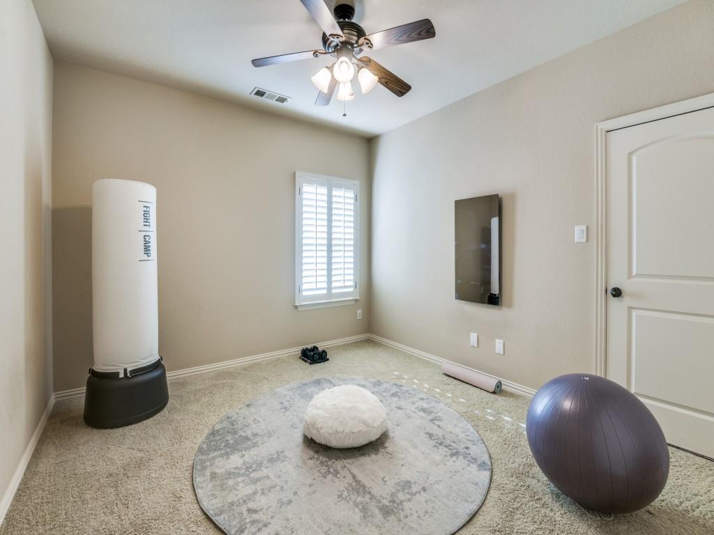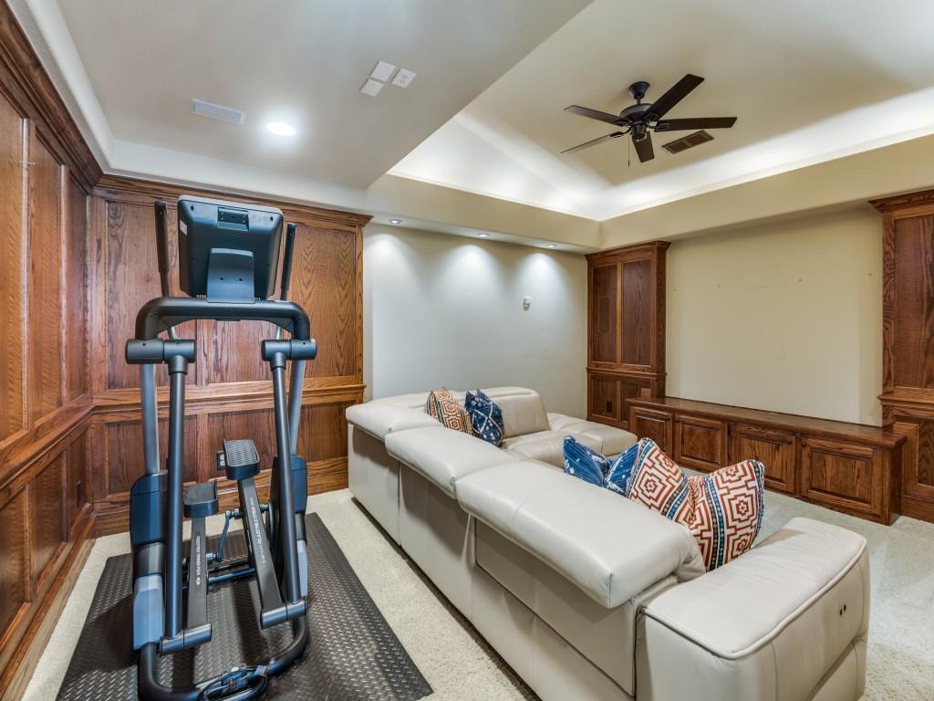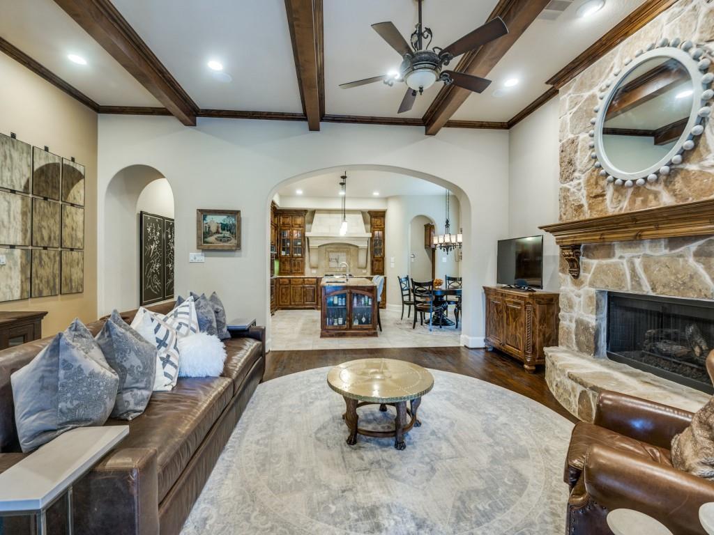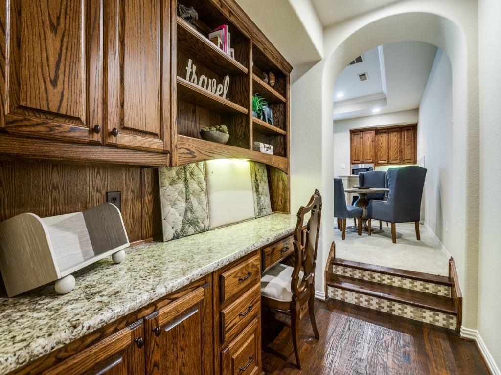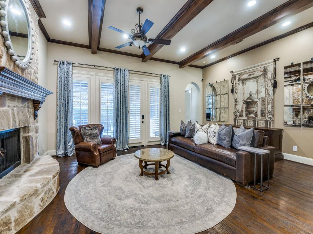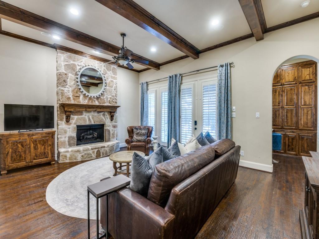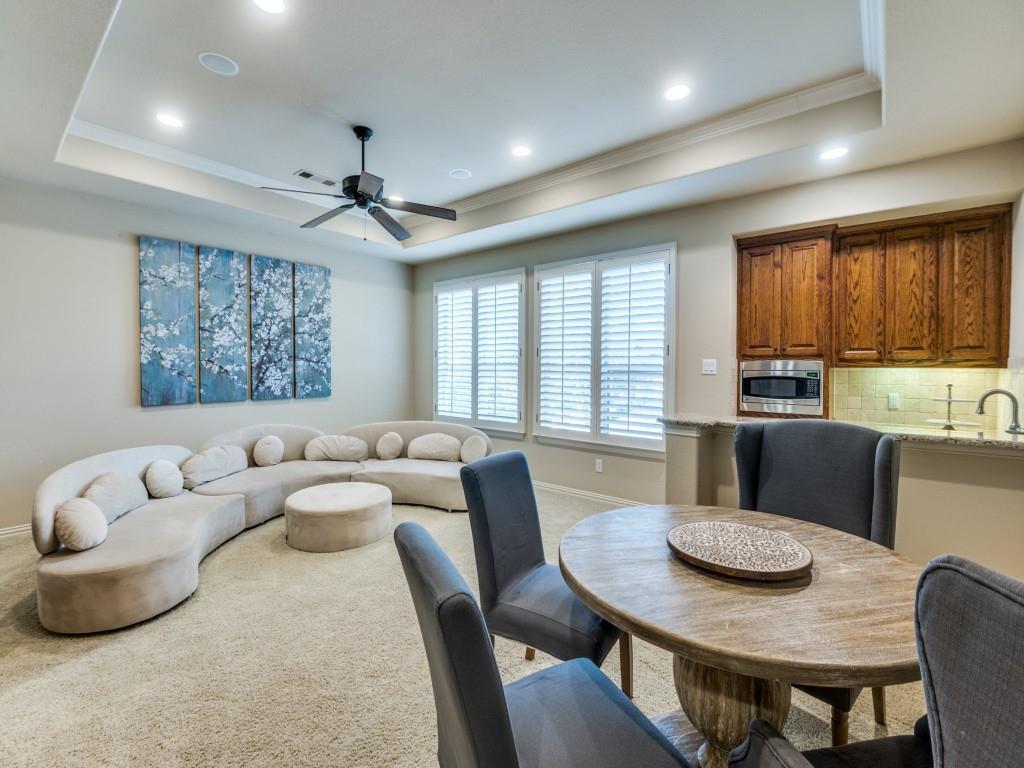 Stunning Home in Guard Gated Lakes of Las Colinas. Welcome to this beautifully crafted home nestled in the highly desirable Lakes of Las Colinas community. Showcasing elegant custom features throughout, this residence offers timeless sophistication and everyday comfort. Step inside to discover rich hardwood flooring, vaulted ceilings accented with wood beams, and plantation shutters that add a refined touch. A dedicated executive office with built-ins and a coffered ceiling makes working from home a pleasure.The gourmet kitchen boasts stainless steel appliances, 5 burner gas cooktop, built-in refrigerator, double ovens, pot filler, and a spacious island perfect for entertaining. The main level includes a luxurious primary suite featuring dual vanities, separate jetted tub, walk-in shower and spacious closet with built-ins. Cozy up in the family room around the stunning stone fireplace or enjoy the upstairs media room and game room, complete with a refreshment center with sink, microwave and beverage refrigerator. The second level also includes 2 en-suite bedrooms with an additional secondary bedroom and full bathroom along with a built-in workspace with granite countertops and cabinetry—perfect for studying or creative pursuits. Outside, a low-maintenance turf backyard with built-in kitchen offers a private retreat for relaxation and play. Additional features include a 2 car garage, mudroom, separate laundry room with sink, lightning rods, 2 tankless water heaters, 3 recently replaced HVAC units, including the ductwork, and newly replaced motor, springs and cables on both garage doors. Ideally located in the heart of Las Colinas, you'll enjoy easy access to Campion Trail, Lake Carolyn, Toyota Music Factory, and all the dining, shopping, and entertainment the area has to offer.