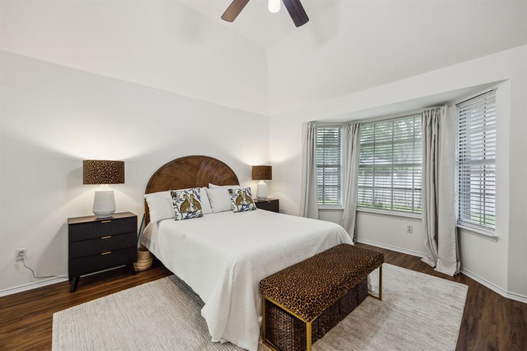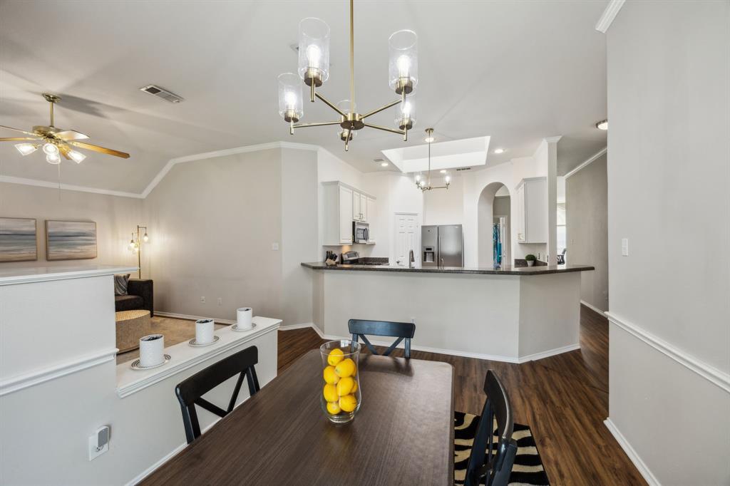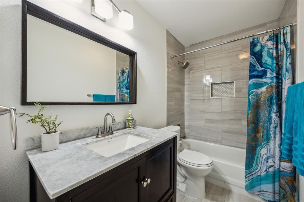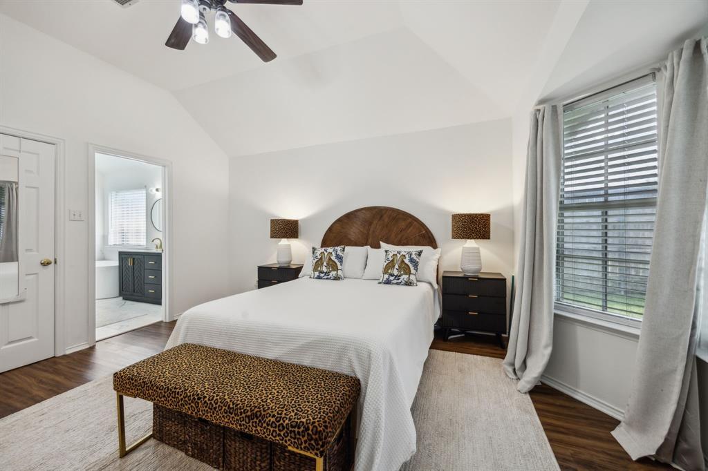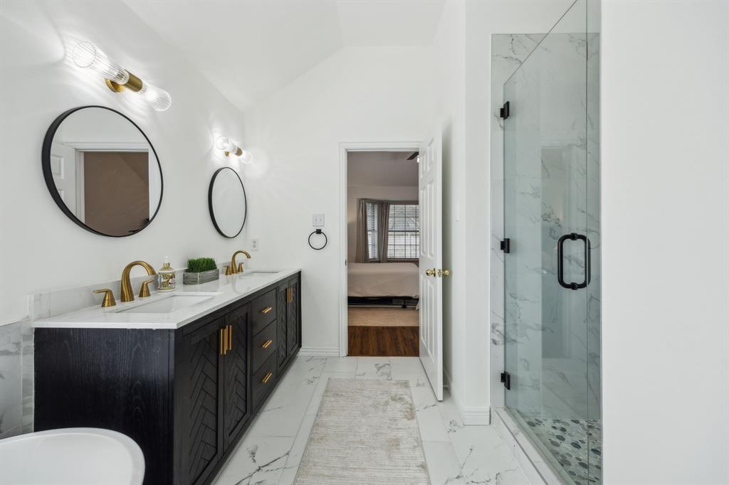 Charming 3-2-2 one-story home with fantastic curb appeal in the sought-after Lakes of Valley Ranch! Ideally located in Irving, central to Dallas and just a short walk to scenic Champions Park with trails and playgrounds. Featuring updated LVP flooring in all the main areas and an open, airy layout perfect for everyday living and entertaining. The kitchen shines with granite countertops, stainless steel appliances, and ample cabinet and counter space. Enjoy the privacy of split bedrooms, including a spacious primary suite with a beautifully updated bath featuring a freestanding soaking tub and sleek frameless glass shower. The large backyard offers plenty of space to relax, play, or entertain. This one checks all the boxes—location, style, and comfort!
