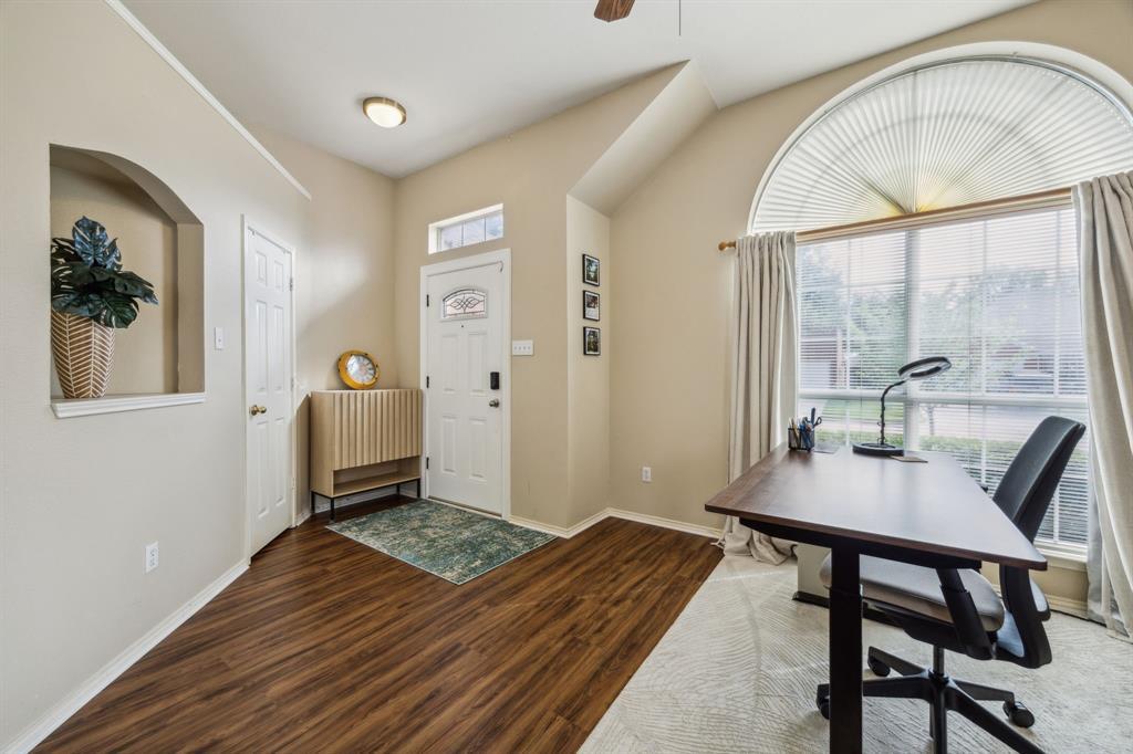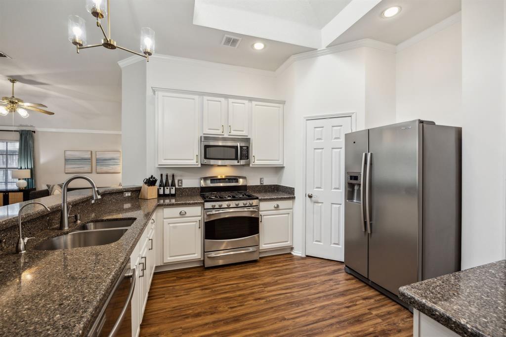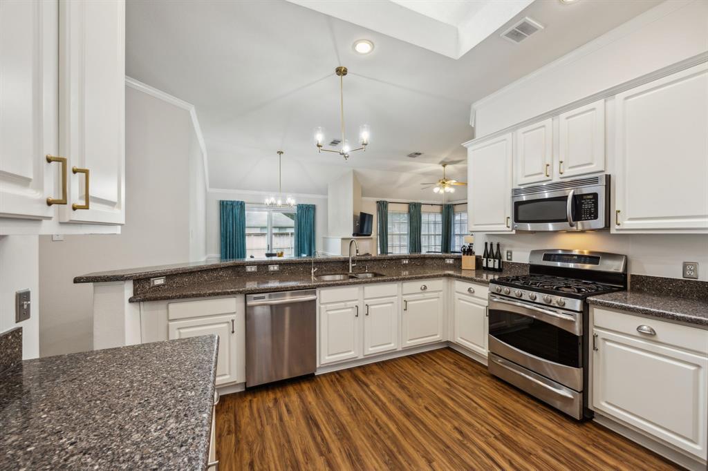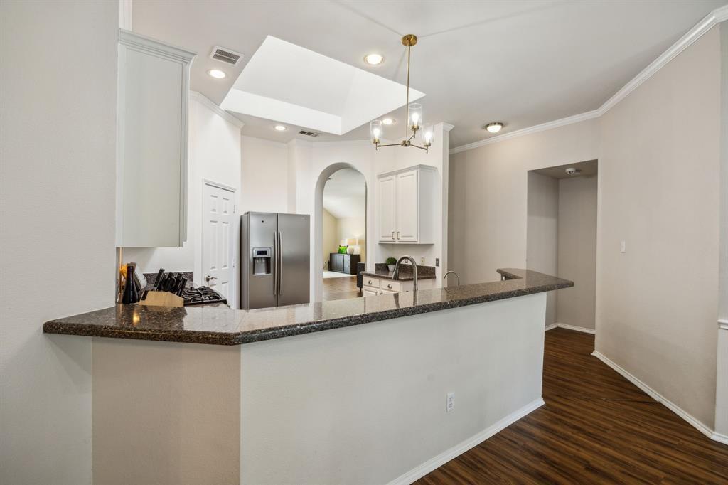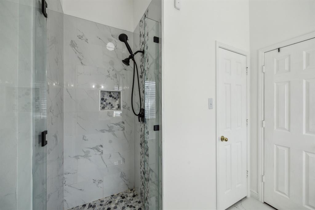 Charming 3-2-2 one-story home with fantastic curb appeal in the sought-after Lakes of Valley Ranch! Ideally located in Irving, central to Dallas and just a short walk to scenic Champions Park with trails and playgrounds. Featuring updated LVP flooring in all the main areas and an open, airy layout perfect for everyday living and entertaining. The kitchen shines with granite countertops, stainless steel appliances, and ample cabinet and counter space. Enjoy the privacy of split bedrooms, including a spacious primary suite with a beautifully updated bath featuring a freestanding soaking tub and sleek frameless glass shower. The large backyard offers plenty of space to relax, play, or entertain. This one checks all the boxes—location, style, and comfort!
