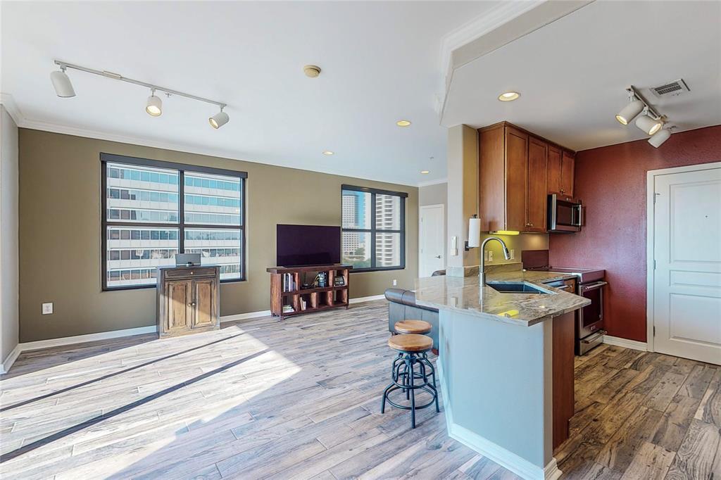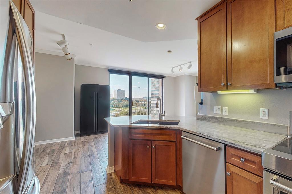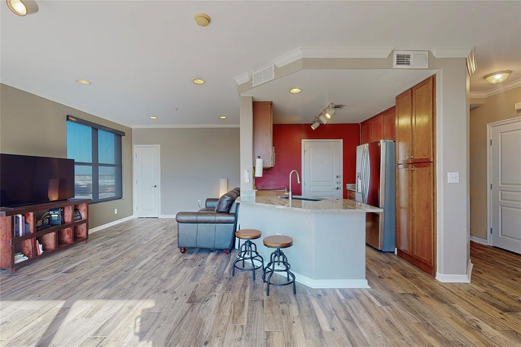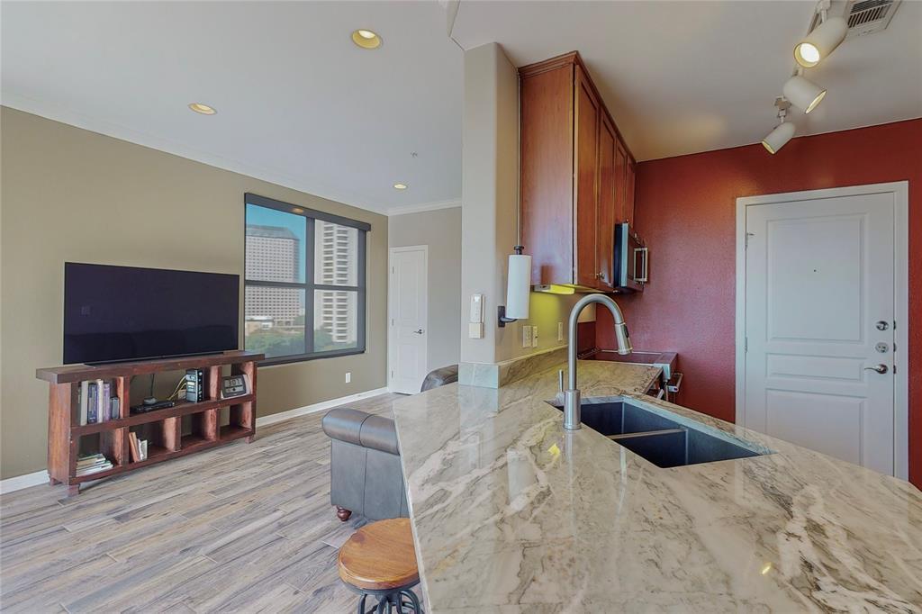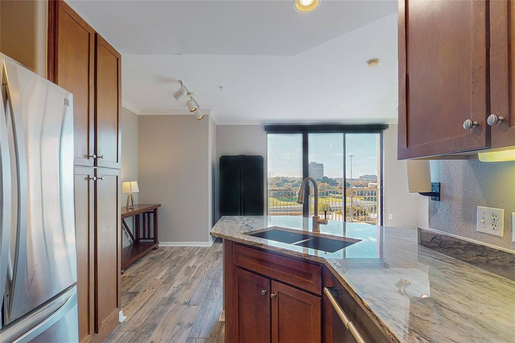 This updated light and bright corner unit features abundant windows, generously sized terrace, views of the hills of Las Colinas and Mandalay Canal. Additional features include granite counter-tops, high-end appliances, wood like flooring, two closets with built-ins, and electric solar shades. Community amenities include rooftop pool, work out facility, 24-hour concierge, activity center & more. Minutes from DFW Airport, Love Field and downtown Dallas. Walking distance to restaurants, venues such as Music Factory with live concerts and endless choices of dining. Includes 1 reserved parking space #76.