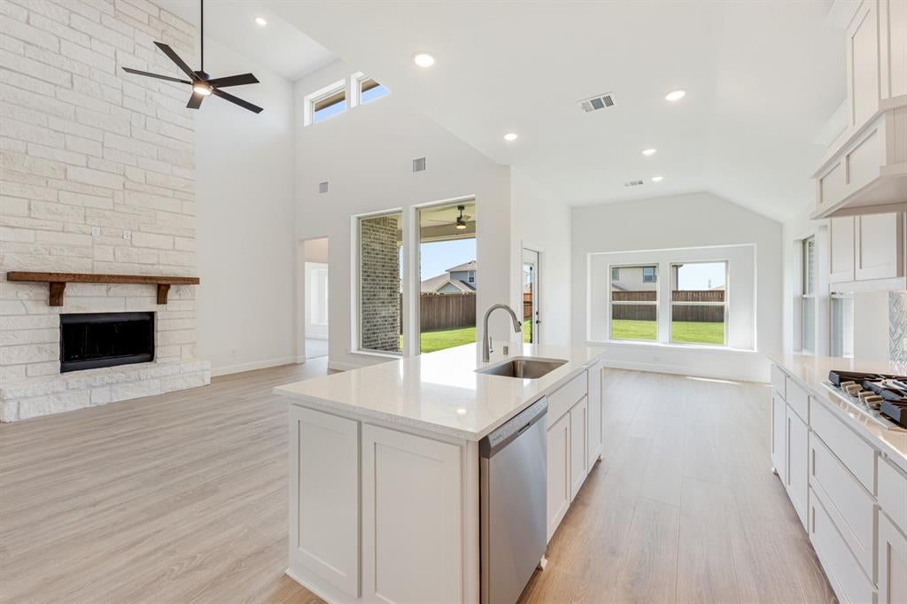 BRAND NEW & NEVER LIVED IN! Ready NOW. Set in the award-winning Waterscape community, Bloomfield Homes is building our new Violet IV floor plan on an oversized homesite measuring nearly a quarter-acre! The layout is defined as bright and airy, with tall ceilings throughout, along with a dramatic 17' Family Room. A stone fireplace reaches floor-to-ceiling, durable RevWood floors line the common areas, and an inviting gourmet kitchen beckons. An additional secondary bedroom and full bath are located downstairs near the entry, offering comfort and convenience for guests or multi-generational living. The other 3 secondary bedrooms are upstairs, along with 2 full baths, and Bedroom 4's bath is an ensuite! The Primary Suite is placed downstairs with luxurious features like a window seat, dual sinks, a garden tub, and a bench seat shower. Granite countertops are in all baths, while the kitchen is topped with Playa White Quartz. All cabinets are in a modern Shaker style and painted a classic white. To maximize your cooking experience, we added a pot filler above the stove, a wood vent hood, a trash can pull-out drawer, deep pot-and-pan drawers, herringbone backsplash tile, and under-cabinet lighting. And don't miss the gas drop on the covered patio to fire up your grill! So many more upgrades included - gutters, ceiling fan on the patio, Level 2 carpet, and 3-car garage with storage space - and that's not the end! Contact Bloomfield Homes to learn about the difference in buying and building with us.