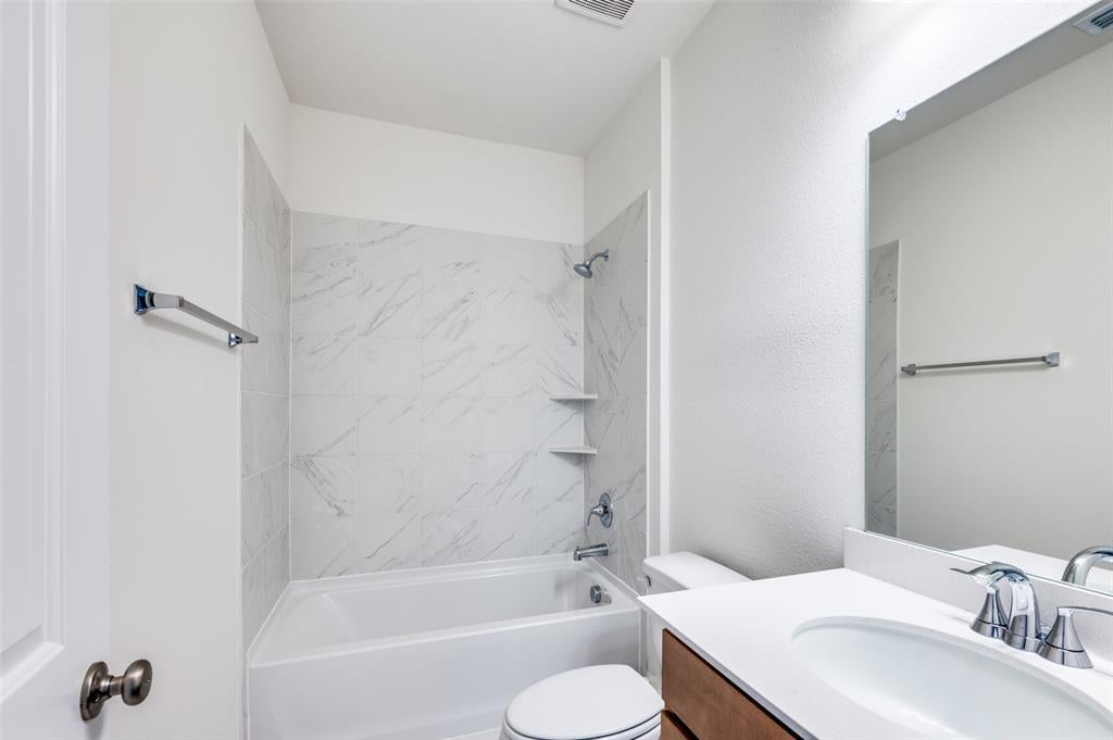 Discover the perfect blend of comfort and practicality in this modern 5-bedroom, 2-story home. The open concept kitchen boasts Quartz countertops, stainless steel appliances, and a roomy walk-in pantry. Relax in the primary bath with an extended vanity and fiberglass shower. Outside, enjoy the front porch and extended covered patio with automatic sprinkler system. The home features elegant touches like a stained entry door, stone veneer exterior, and smart home features including USB ports and a smart thermostat. With 9’ ceilings, this home offers a spacious ambiance, while the upgraded details throughout elevate its appeal. Ask sales counselor about closing cost and rate buy down opportunities.