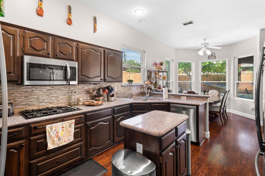 This house, which is tucked away in Plano, is a magnificent combination of elegance and comfort! The flowing LVP floors create a warm atmosphere. The intriguing outdoor retreat is one of this home's distinguishing features. You'll find your own little heaven when you enter the backyard. The spacious covered patio offers the perfect environment for al fresco dining and recreation, all while viewing the pool and the lush green surrounds. The main suite has plenty of natural light and is roomy. There is flexibility because one of the six bedrooms is conveniently downstairs. The remaining five bedrooms are upstairs. A cheerful atmosphere is ensured with updated energy-efficient windows throughout the property. The eating area, living room, and dining room are all effortlessly connected by the open floor concept.