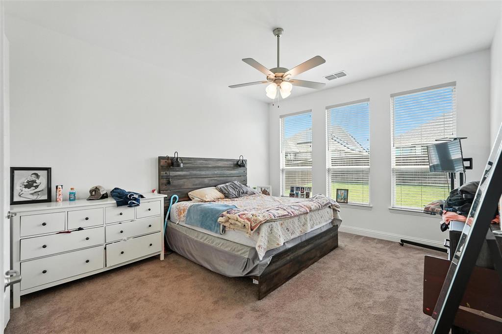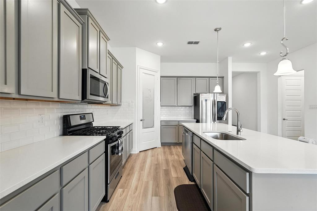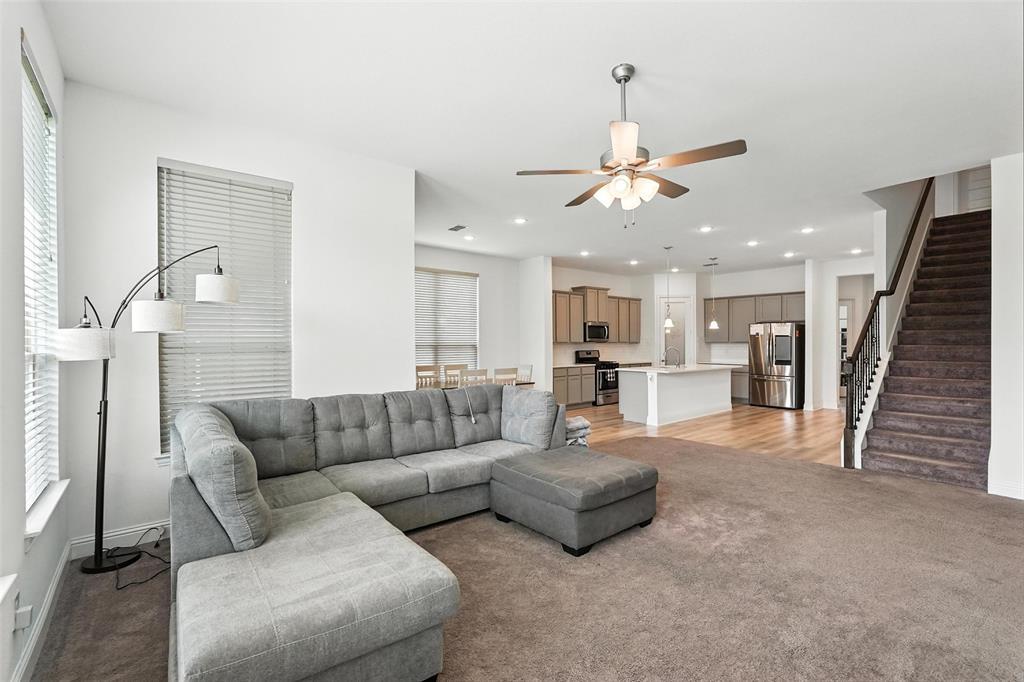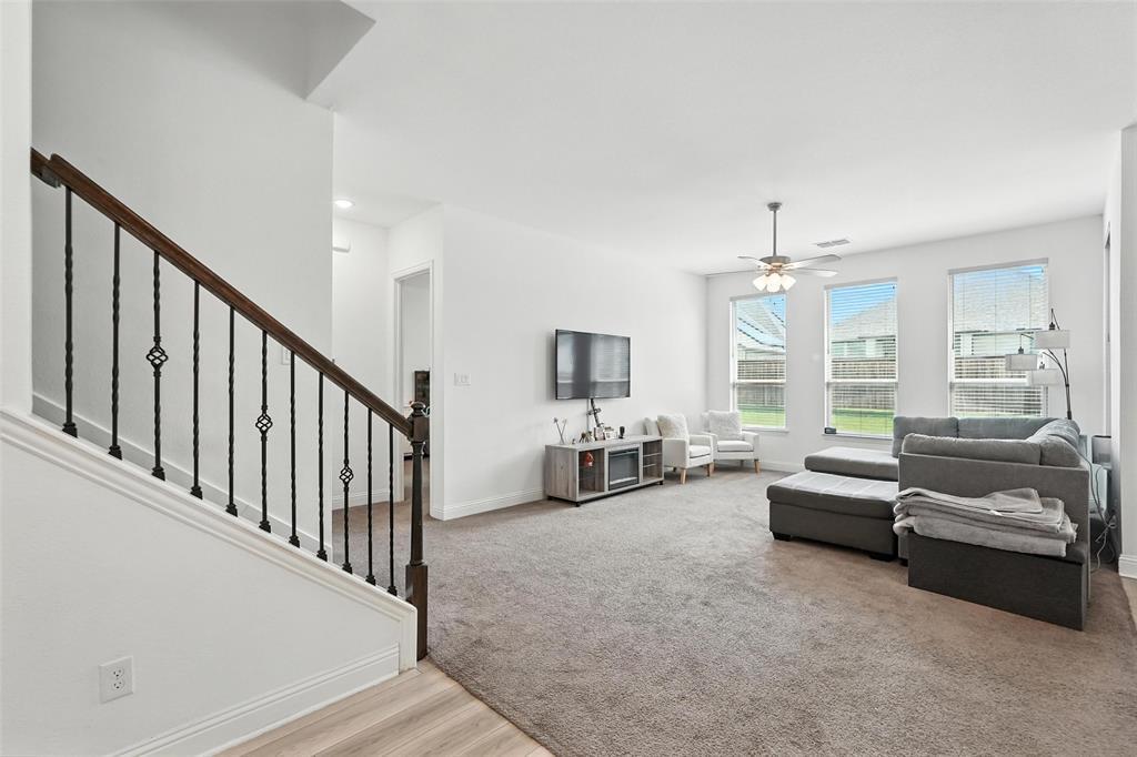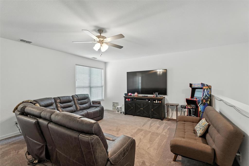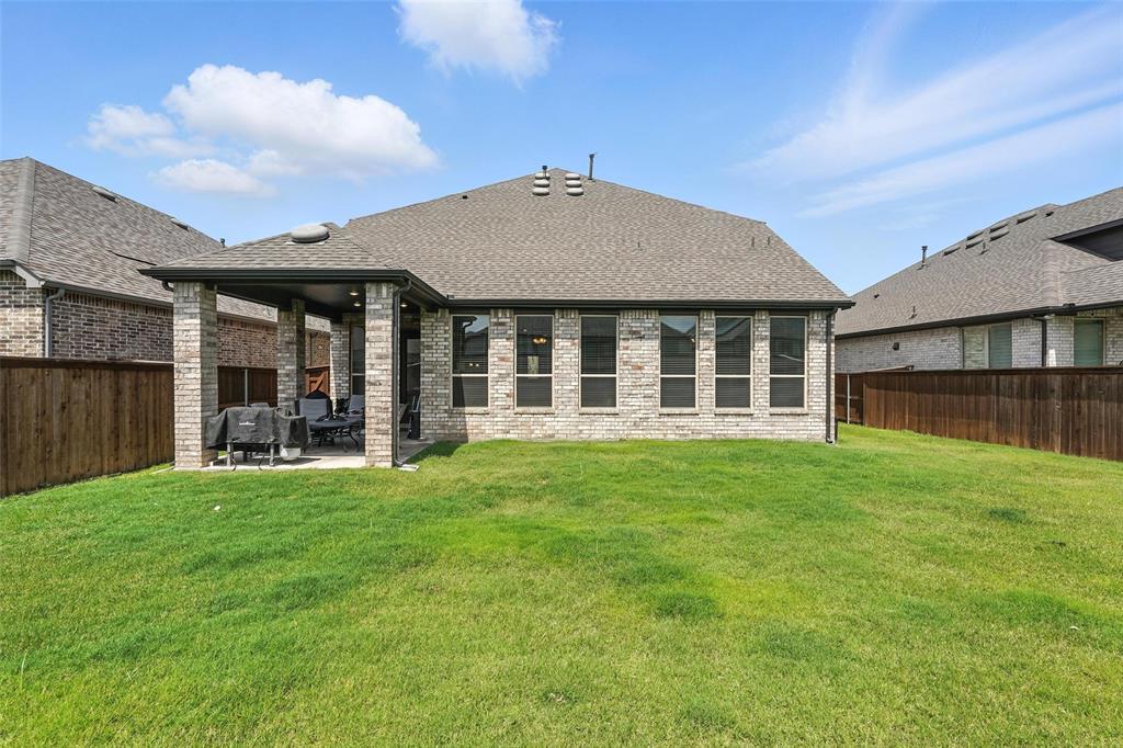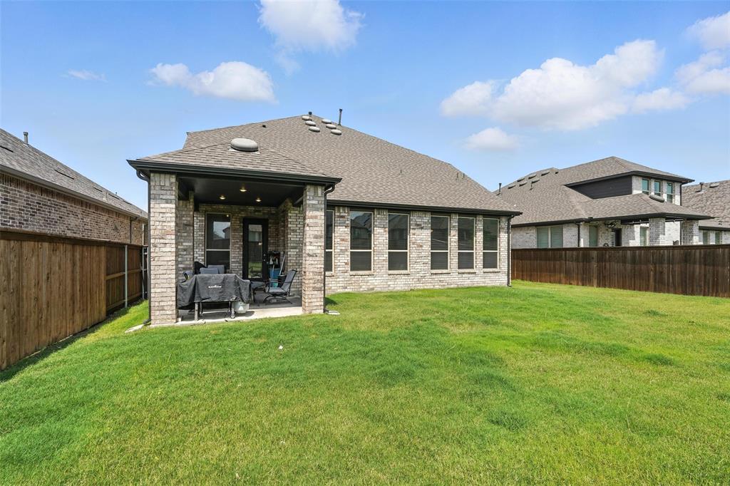 Welcome to this stunning 5-bedroom, 4.5-bath home in the heart of Celina, offering modern comfort, thoughtful design, and ample space. Built in 2021, this two-story residence features a beautiful brick and stone exterior with exceptional curb appeal. Inside, you'll find an open-concept layout with a chef’s kitchen showcasing quartz countertops, a large center island, stainless steel appliances, subway tile backsplash, and sleek gray cabinetry. The kitchen flows into the bright living and dining areas—perfect for entertaining or family gatherings. The main floor offers a spacious primary suite with a luxurious ensuite bath with dual vanities and walk-in closet. There is also an office space which could be used as a 6th bedroom. Upstairs, you'll find four generously sized bedrooms, including one with a private ensuite bath, perfect for guests or multigenerational living. A large game room provides a flexible space for media, play, or lounging. Additional features include luxury vinyl plank flooring, plush carpet in the living area, a two-car garage, extended driveway, and a covered entryway. Enjoy life in a friendly neighborhood with access to excellent schools, shopping, dining, and major highways. This move-in-ready home blends space, style, and functionality—schedule your private showing today!