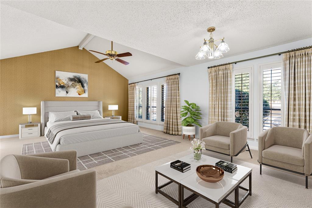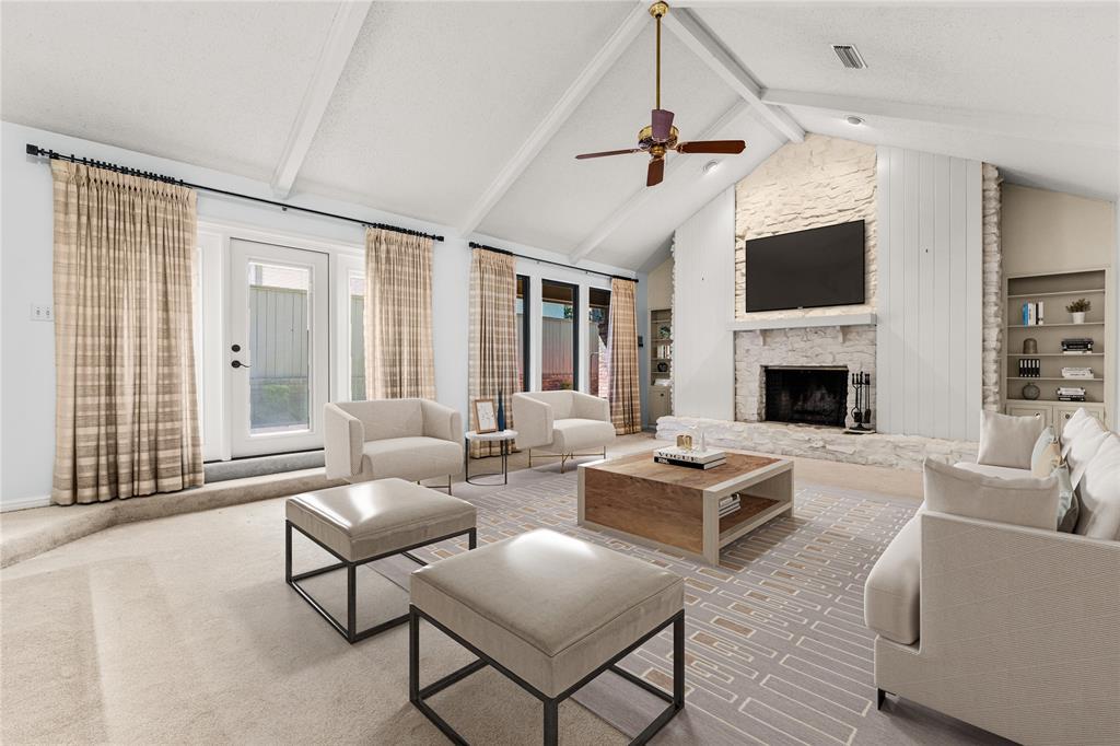Welcome home to this charming 4-bedroom, 3.5-bath ranch-style residence on a desirable corner lot, where comfort and character meet in every corner. The open living area features vaulted ceilings, a cozy stone fireplace, and large windows that fill the space with natural light, creating a bright and cheerful atmosphere perfect for family gatherings or quiet evenings at home. The kitchen offers classic cabinetry, ample counter space, and a sunny breakfast nook—an inviting spot for morning coffee or casual meals. The main-floor primary suite provides privacy and comfort with two spacious closets and a private bath, while the upstairs bedrooms share two full bathrooms, giving everyone plenty of space. A convenient half bath on the main floor adds ease for guests.
