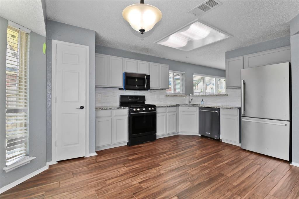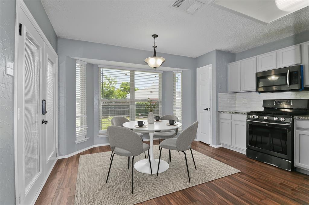 Step into comfort and style in this beautiful 3-bedroom, 2-bath home featuring an open-concept layout perfect for everyday living and entertaining. Enjoy the warmth of wood-look tile flooring and elegant granite countertops throughout. The inviting eat-in kitchen boasts bay windows and French doors leading to a private, fenced backyard ideal for relaxing or hosting guests.