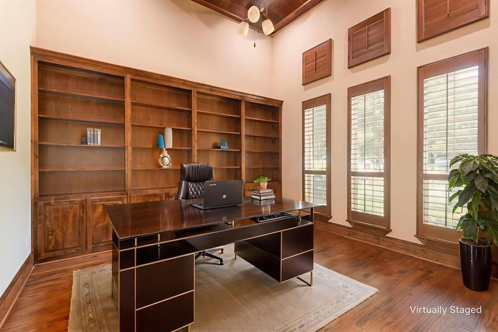 Step inside to a world of custom sophistication where no detail has been overlooked in this stunning property that offers an unparalleled blend of elegance & functionality & breathtaking views of lush golf course. The uniquely designed home sits gracefully on a picturesque plot boasting gorgeous views from patios & upstairs balcony. The colossal gourmet kitchen caters to both seasoned chefs & culinary enthusiasts with the expansive layout showcasing a massive island & breakfast bar surrounded by an abundance of custom alder cabinetry for ample storage. A walk in panty, butlers pantry with additional custom storage, modern appliances including double ovens & double dishwashers & prep sink make meal preparation both efficient & enjoyable. Expansive windows overlook the covered patio, yard & golf course & allow the home to be draped in natural light. The large family room is open to kitchen & features a stone fireplace, builtins & more windows to the gorgeous backyard. The large primary suite promises tranquility & style, complete with exquisite bathroom fixtures & generous closet space. A secondary bedroom with ensuite bath is also located downstairs isolated from primary suite. Rounding out the main floor is an executive study with wall of builtins, spacious formal dining area, wine grotto & half bath. Upstairs boats very large game & media rooms, 2 additional bedrooms & access to ideally located balcony to take in the views of the golf course & still enjoy the sunsets without sitting in the direct West sun. Outside of the property truly shines with a substantial, pool sized yard that invites endless possibilities for recreational enjoyment framed by a line of mature trees that offer privacy & serenity. Entertain guests on the vast covered patios equipped with an outdoor kitchen & elegant gas fireplace perfect for year round enjoyment. This luxurious estate captures the essence of refined living & offers the perfect backdrop for an extraordinary lifestyle.