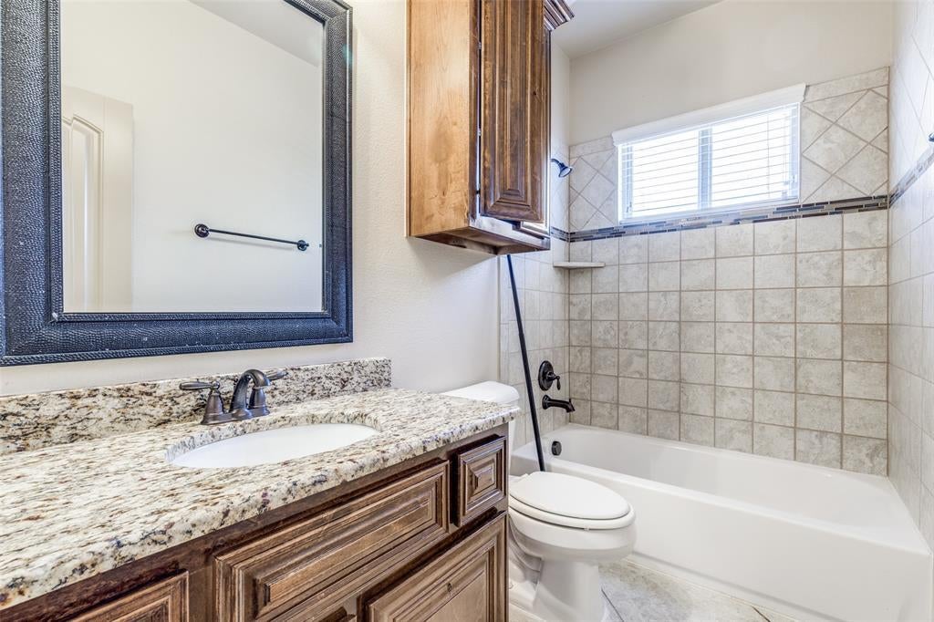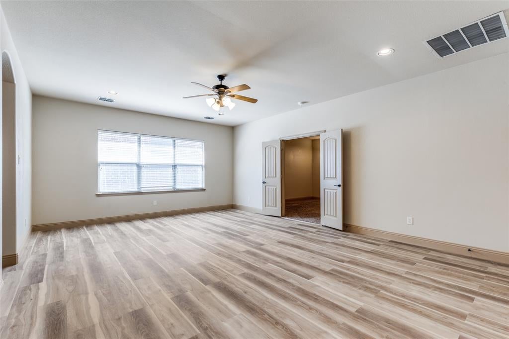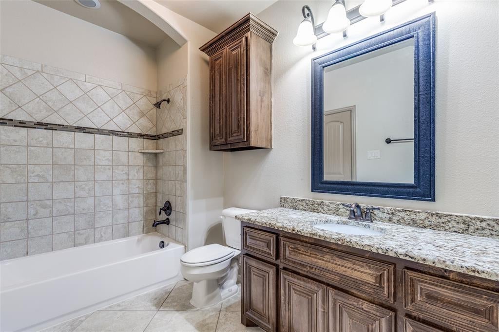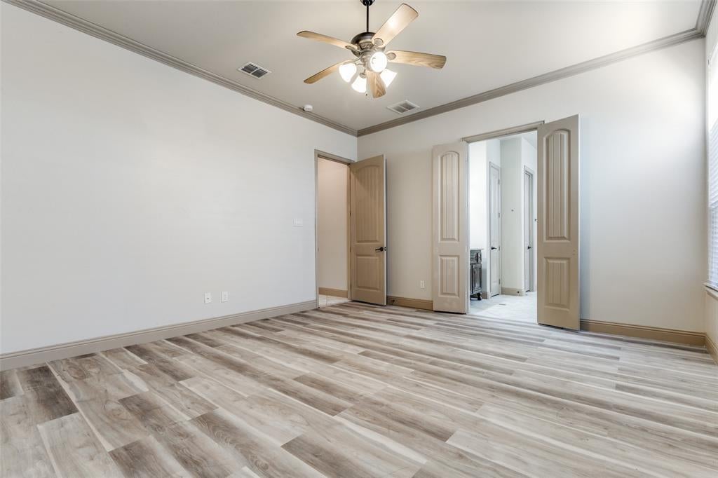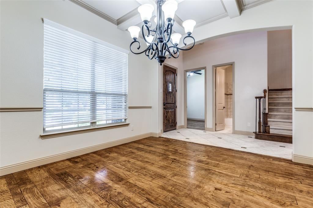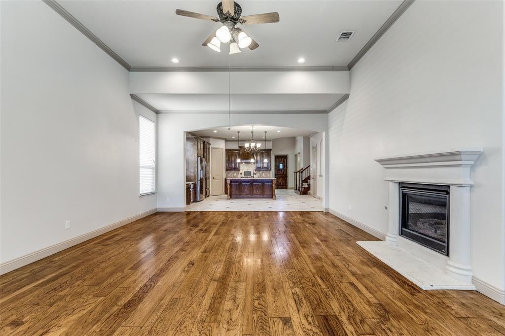 Step inside to soaring ceilings and an open layout designed for everyday living and easy entertaining. A formal dining room with a coffered ceiling sets the stage for gatherings, while the front secondary bedroom offers the perfect setup for a home office or guest space. The chef’s kitchen is the heart of the home, featuring granite counters, a gas cooktop, stainless steel appliances, decorative backsplash, walk-in pantry, large island, and a built-in desk area. Ceramic tile, LVP, and hardwood flooring flow throughout the home. The living room, just off the kitchen, offers a cozy gas fireplace and plenty of space to relax. The spacious primary suite includes French door entry to a private bath with dual vanities, dual sinks, jetted tub, separate shower, and walk-in closet. Upstairs you’ll find three secondary bedrooms, two full bathrooms, a large game room, and a media room ready for movie nights. Out back, enjoy a covered patio and gated driveway with electric gate for added privacy. This home faces north and is conveniently located minutes from Eagle Stadium and just a short drive to Allen Premium Outlets, The Village at Allen, and Fairview Town Center.