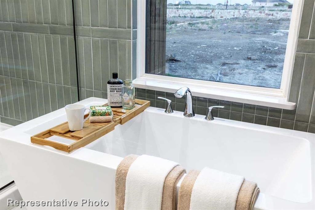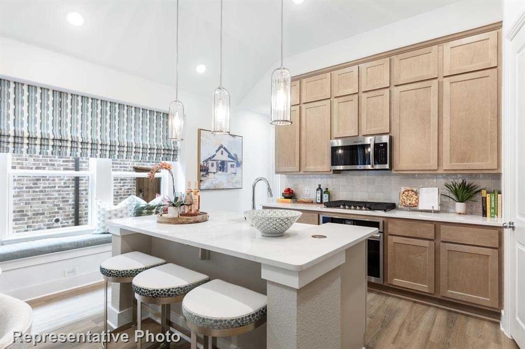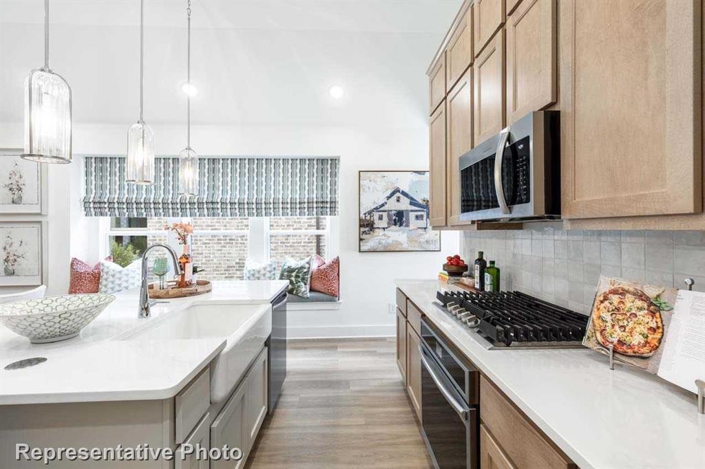 MLS# 21013786 - Built by Highland Homes - December completion! ~ Popular One-Story Bristol P Floorplan features Four Bedrooms, Three Baths, Two Car Garage. Beautiful finish out with upgraded Quartz Countertops, Five Burner 36 Gas Cooktop, Subway tile backsplash, Upper Double stacked kitchen cabinets, Pendant lighting, Luxury Vinyl Flooring in all common areas, Free Standing Tub w- Glass Shower and Tile shower floor in primary. Gas 10' Fireplace, White Brick.