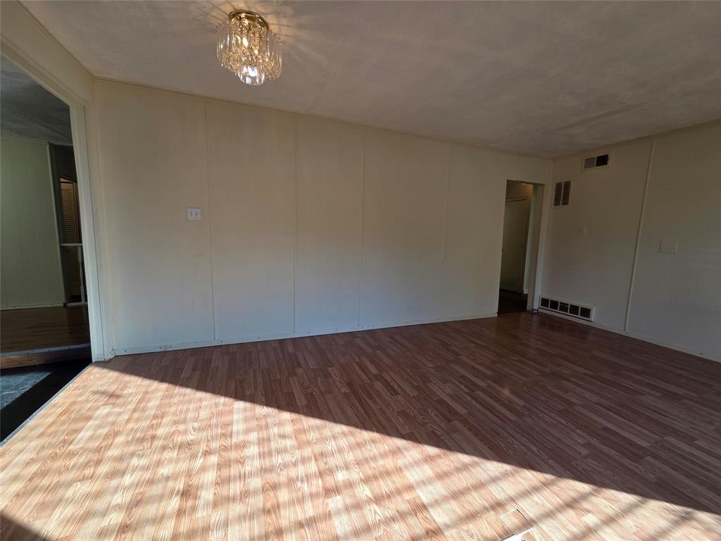 Don't miss out on a prime investment opportunity! This lovely 3 bedroom, 1 bath home features an open floor plan with a spacious backyard! The inviting comfortable layout is sprawling with hardwood floors, upscale lighting and ceiling fans throughout! The living area flows into the kitchen, which features plenty of cabinet space. Step outside to discover a large, fully fenced backyard, perfect for outdoor entertaining, gardening, or simply relaxing under the Texas sky. The ample space is ideal for summer barbecues. Located in a quiet, friendly neighborhood, this home is conveniently close to schools, parks, shopping, and dining. Close to Hypermarkets, and Mesquite Rodeo development. Quick and Easy access to 635 and just 17 minutes away from downtown Dallas. The tax record shows 2 bds. However the garage was converted into a 3rd bedroom with an AC unit installed. A slab of concrete is in the backyard perfect for a shed to sit on.