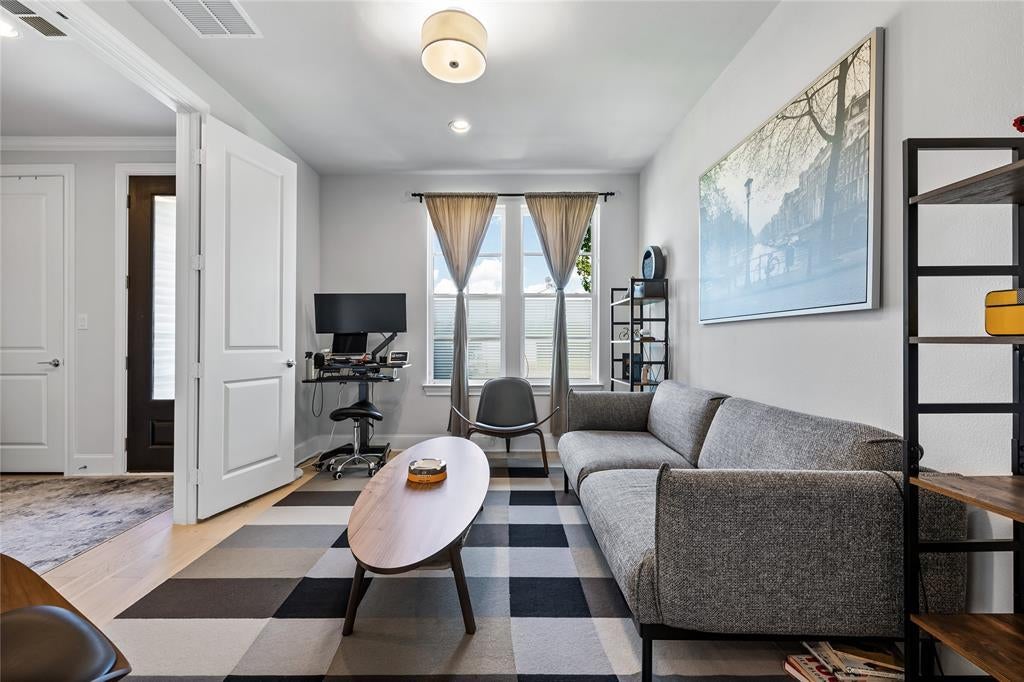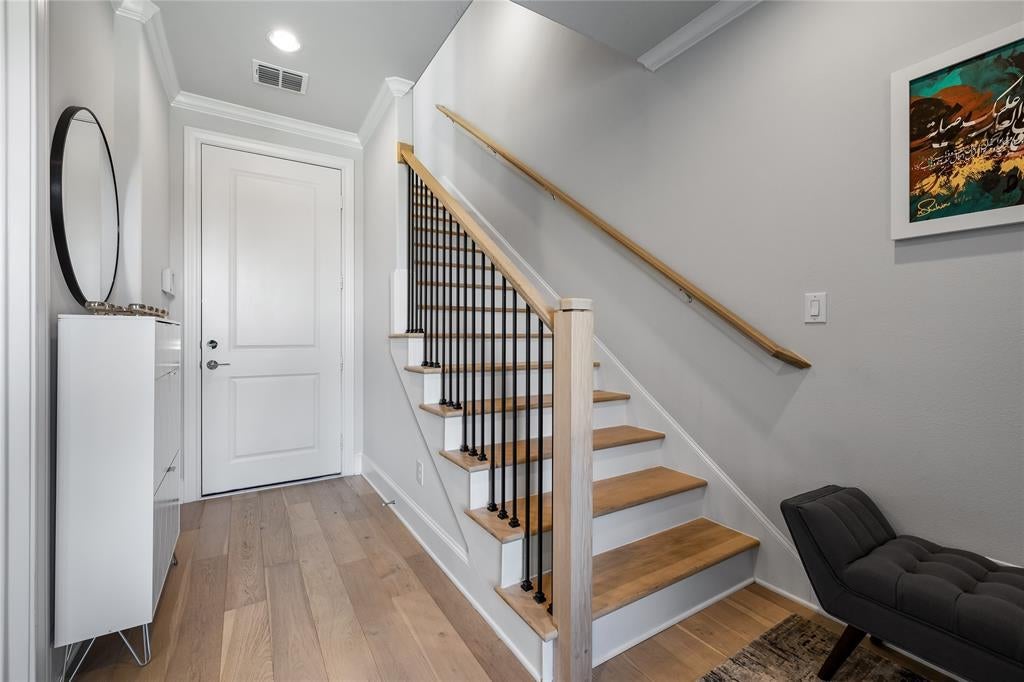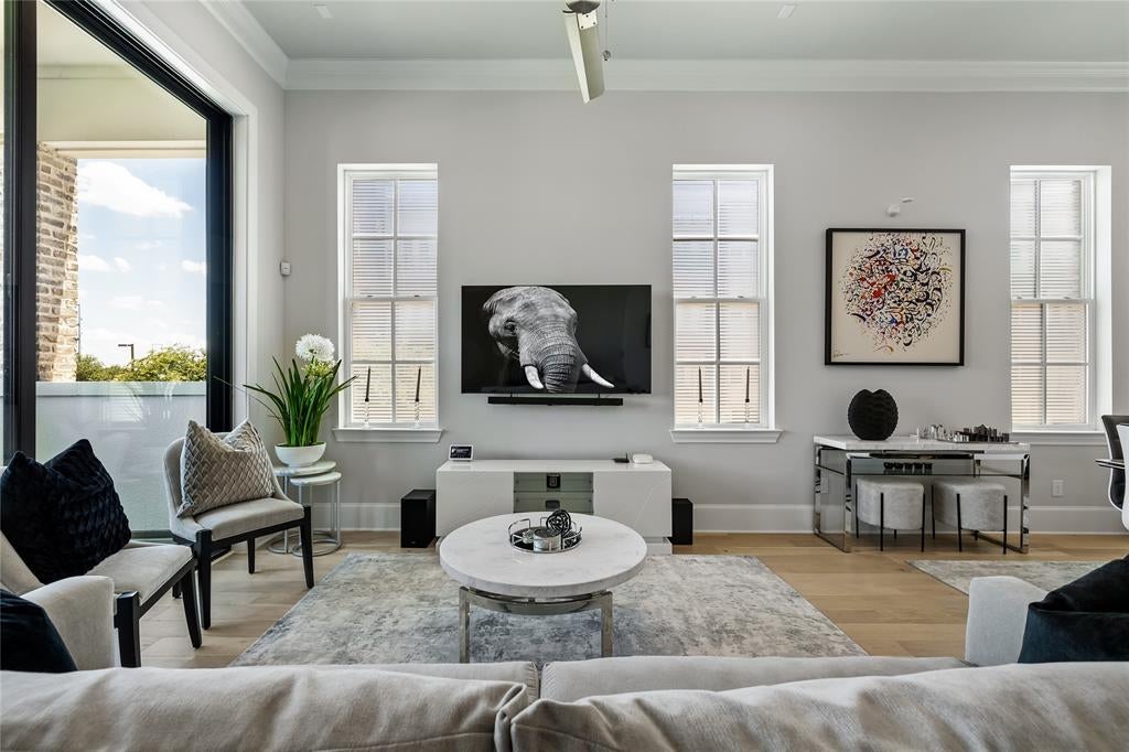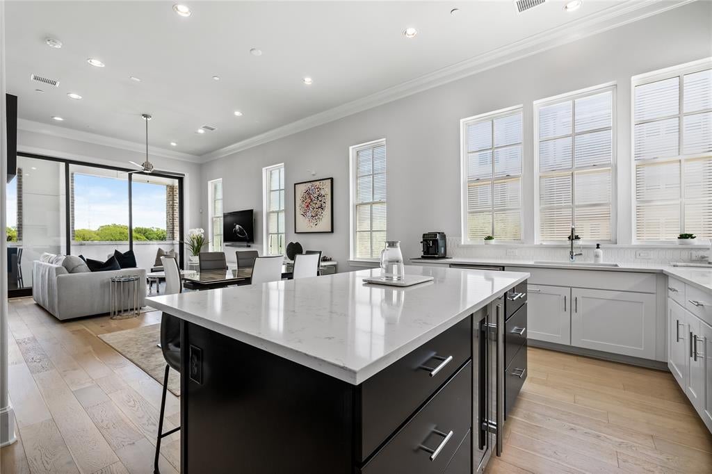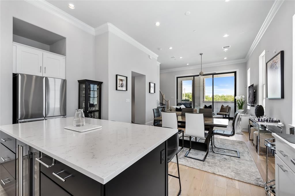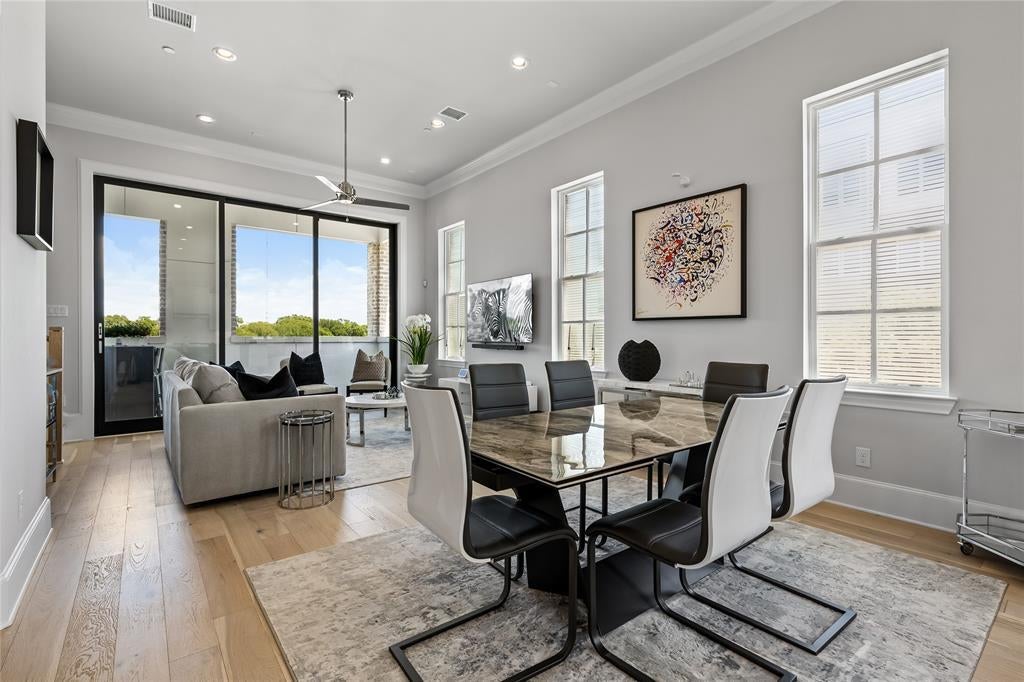 UNDER CONSTRUCTION WITH ESTIMATED COMPLETION IN DECEMBER! This stunning 3-bedroom, 3.5-bath end-unit townhome offers one of the most desirable locations in the community, with breathtaking views stretching from the greenbelt and Elm Fork of the Trinity River all the way to downtown Dallas. Designed for both luxury and convenience, this home features a private rooftop terrace for outdoor entertaining and a second-floor balcony to take in the scenic surroundings. Inside, the gourmet kitchen is a chef’s dream, boasting Fisher & Paykel appliances, exquisite quartz countertops, a designer tile backsplash, and soft-close cabinetry. The spacious, spa-like primary suite is a true retreat, featuring a large drop-in tub, walk-in shower, and an expansive walk-in closet. Luxury finishes include upgraded engineered hardwood floors throughout, soaring 12-foot ceilings on the main living level, and oversized sliding panel doors that fill the space with natural light. This exclusive community will offer a lush central courtyard with a resort-style pool and is just a short walk to DART, Water Street, Toyota Music Factory, Campion Trail, and Lake Carolyn. PLEASE GO TO MODEL HOME FOR ALL OPEN HOUSES AND SHOWINGS - 5449 PATTERSON ST.