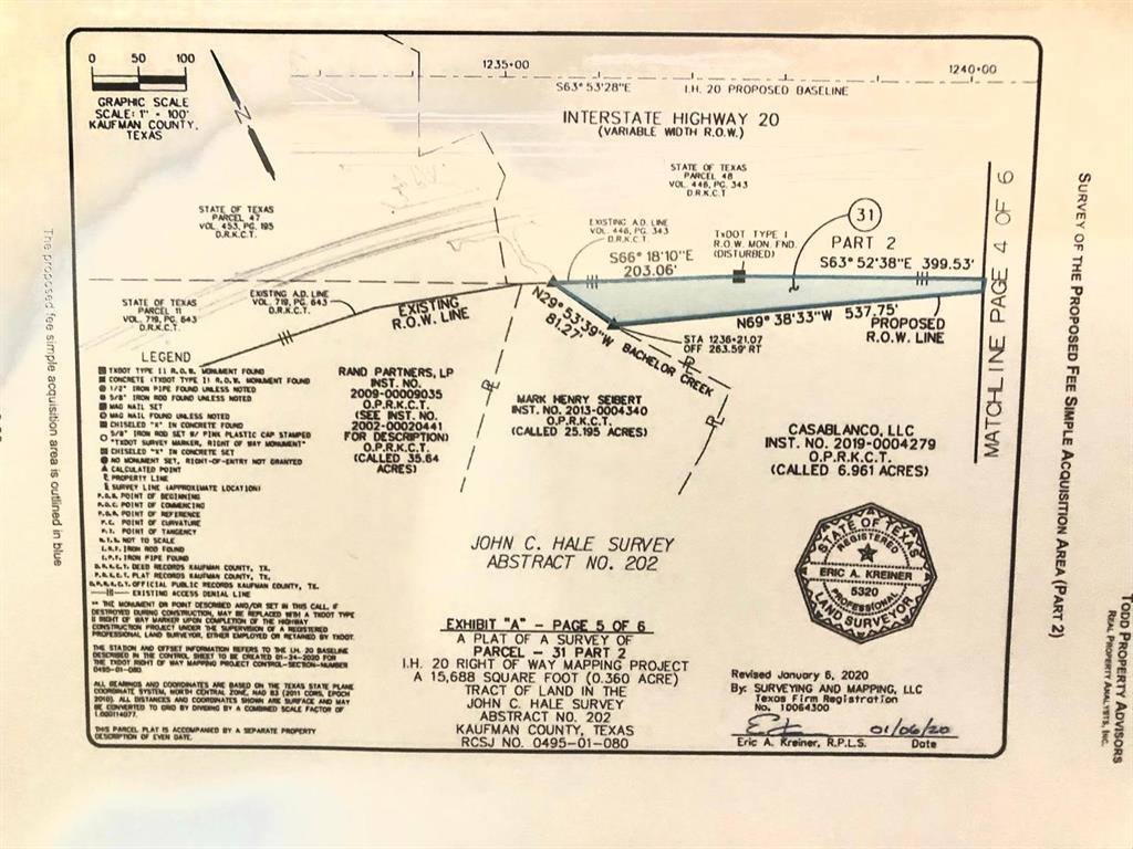 6 plus acres in desirable location close to I-20 Frontage Road and Tanger Outlet Mall in Terrell. Close to Buc-ee's, shopping centers, Terrell Municipal Airport and Southwestern Christian College. Buyer to check easements and measurements. Front of property adjacent to access road. No survey available and at the expense of the buyer. Proposed city access road survey in photos. Great opportunity in fast growing Terrell! PROPERTY FALLS WITHIN THE FEMA 100 YEAR FLOOD ZONE. Seller will consider owner financing.
