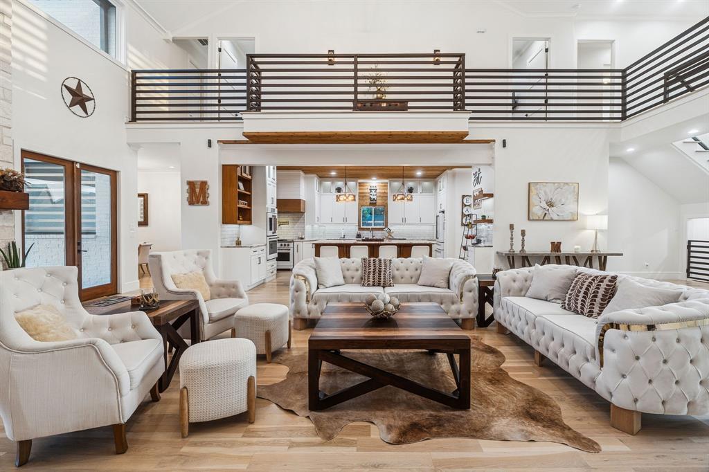 Perfect for entertaining indoors and out, this extraordinary estate offers 6,422 sq. ft. in the main residence plus a 2,202 sq. ft. guest home, combining 8,600+ sq. ft. of luxurious living space. Every detail reflects craftsmanship, comfort, and thoughtful design. Built on a reinforced slab foundation engineered to minimize settling, with hail-impact resistant metal roof and full closed-cell foam insulation, including garage, for efficiency and soundproofing. The living room impresses with soaring 28’ vaulted ceilings, white stone fireplace, custom cabinetry, and chandeliers. The dining room features accent fireplace, coffee-tea bar, and close by a bar with sink, icemaker, and mini-fridge. The spacious kitchen accommodates professional appliances suited for a gas range along with a commercial grade vent hood, double ovens, 4-door refrigerator, dishwasher, pot filler, porcelain farm sink, custom cabinetry, and magnificent quartzite island. Space also features a spacious pantry, mudroom, and laundry room. The owner’s suite offers backyard access, spa-like bath with soaking tub, rainfall shower, dual sinks, and a custom walk-in closet with center island. Additional bedrooms are spacious feat. walk-ins and unique finishes. Amazing amenities to the home include a theater room, office, and gym-guest room. Outdoor living shines with stamped concrete patios, outdoor grills, fire pit, basketball court, dog run, turf yard, retaining wall, and automatic gate. Gas generator provides peace of mind. The guest home, complete with its own kitchen, cedar porch, metal roof, and stained concrete floors, is perfect for extended family, Airbnb, or rental income. Highlights include custom wood floors, porcelain tile baths, maple doors, pine framing, smart wiring, zoned high-efficiency HVAC, and dual smart irrigation systems. Within ALLEN ISD, A TOP-RATED SCHOOL DISTRICTS!