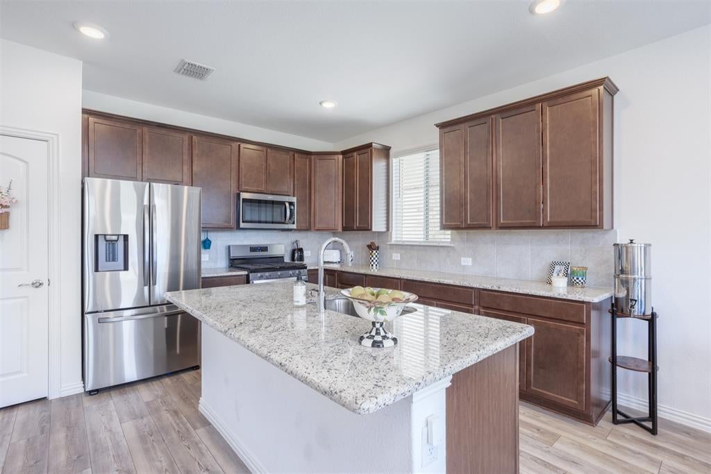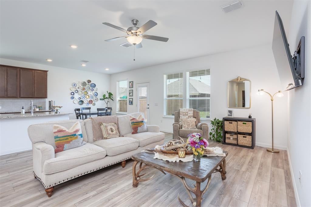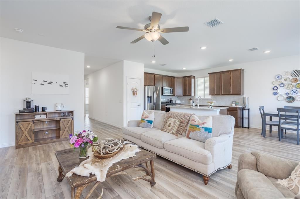 Welcome to this beautiful move-in ready 3-bedroom, 2-bath home in the heart of Anna, TX, just 2 years old and brimming with modern style. The open floor plan is enhanced by a soothing neutral color palette, creating a bright and inviting atmosphere throughout. Durable LVP flooring flows seamlessly through the main living areas, complemented by cozy carpet in the bedrooms. The spacious kitchen is the heart of the home, featuring a large center island, ample cabinetry, and plenty of counter space for cooking, dining, and entertaining. The generous backyard offers room to relax, play, and host outdoor gatherings. Located in Anna ISD and offering quick access to Hwy 121, this home combines comfort, convenience, and contemporary living—ready for you to make it your own!