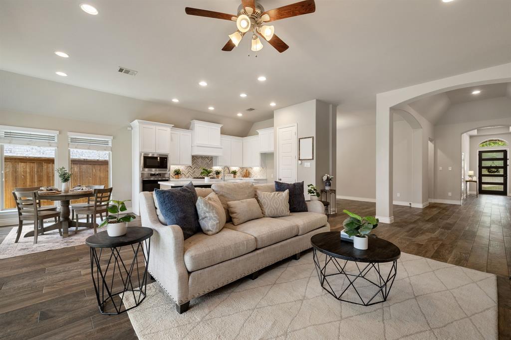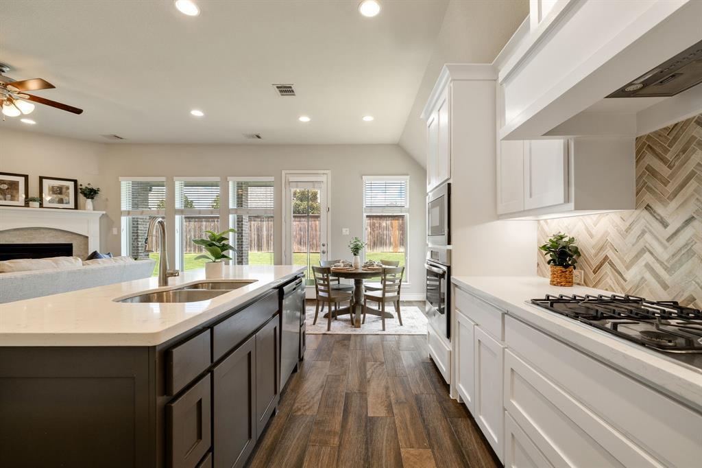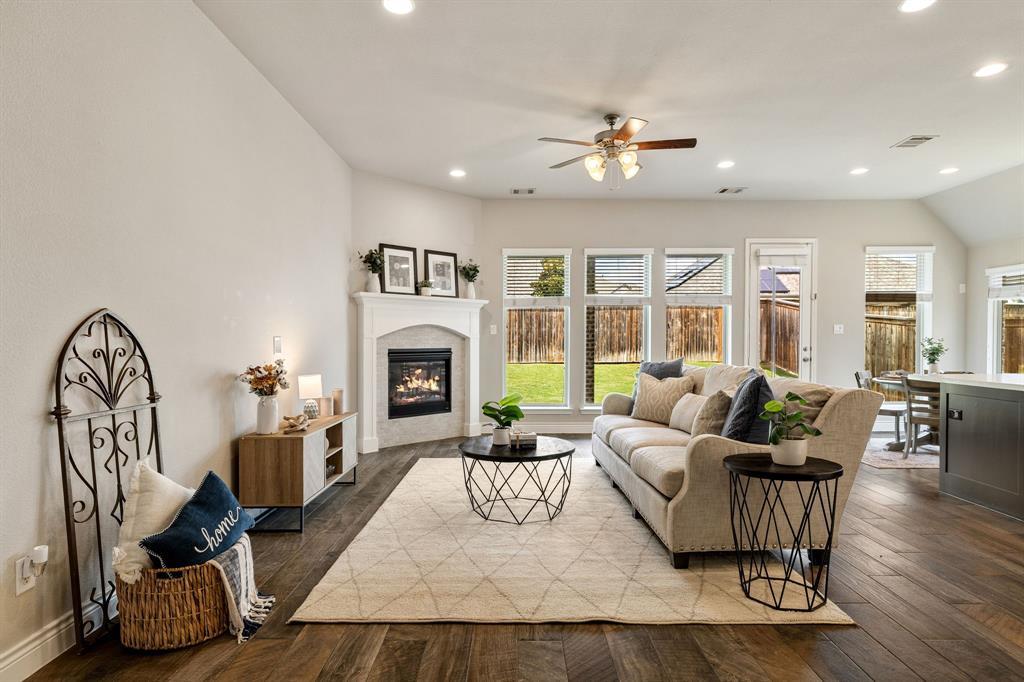 Welcome to this beautiful, move-in-ready single-story Perry home offering a spacious open-concept layout perfect for both everyday living and effortless entertaining. From the moment you step through the extended entryway with soaring 12-foot ceilings, you’ll be greeted by an abundance of natural light, elegant finishes, and a warm, inviting atmosphere. The kitchen is truly the heart of the home, featuring an oversized breakfast bar, sunny breakfast nook, and ample room for gathering with family and friends—perfect for dinner parties, holiday celebrations, or casual game nights. Equipped with a gas cooktop, built-in oven, microwave, quartz countertops and walk-in pantry. The flexible floor plan includes a versatile space ideal for a formal dining, open game room, home office, or kids’ play area, flowing seamlessly into the large family room centered around a charming stone, gas fireplace. Thoughtful design touches include durable and beautiful wood-look ceramic tile flooring throughout the main living areas, and neutral carpet in the bedrooms. The spacious secondary bedrooms are split, while the primary suite provides a peaceful retreat at the end of the day. The private master bedroom complete with an ensuite bathroom including separate vanities, garden tub, separate shower and walk-in closet. Light and bright during the day and peaceful at night makes for a perfect retreat! Located in the sought-after boutique community of Glen Crossing with resort-style amenities—including a sparkling pool, pond with fishing, playground, parks, scenic trails, and wide-open spaces—you'll enjoy the very best of Celina living. Surrounded by beautiful Texas views and friendly neighbors (including some beautiful longhorns nearby), this home truly has it all: style, comfort, & space to live your best life. Celina is one of the most coveted, growing cities in the country with a small town feel, yet still near to shops, restaurants & top-rated schools! Photos will be uploaded 8-15-2025.