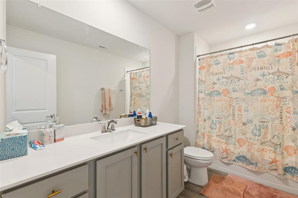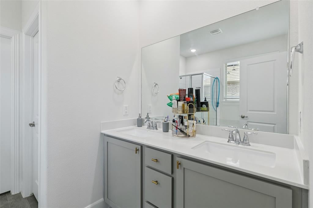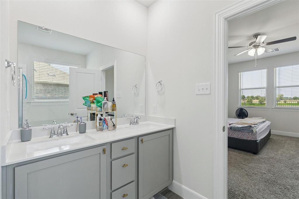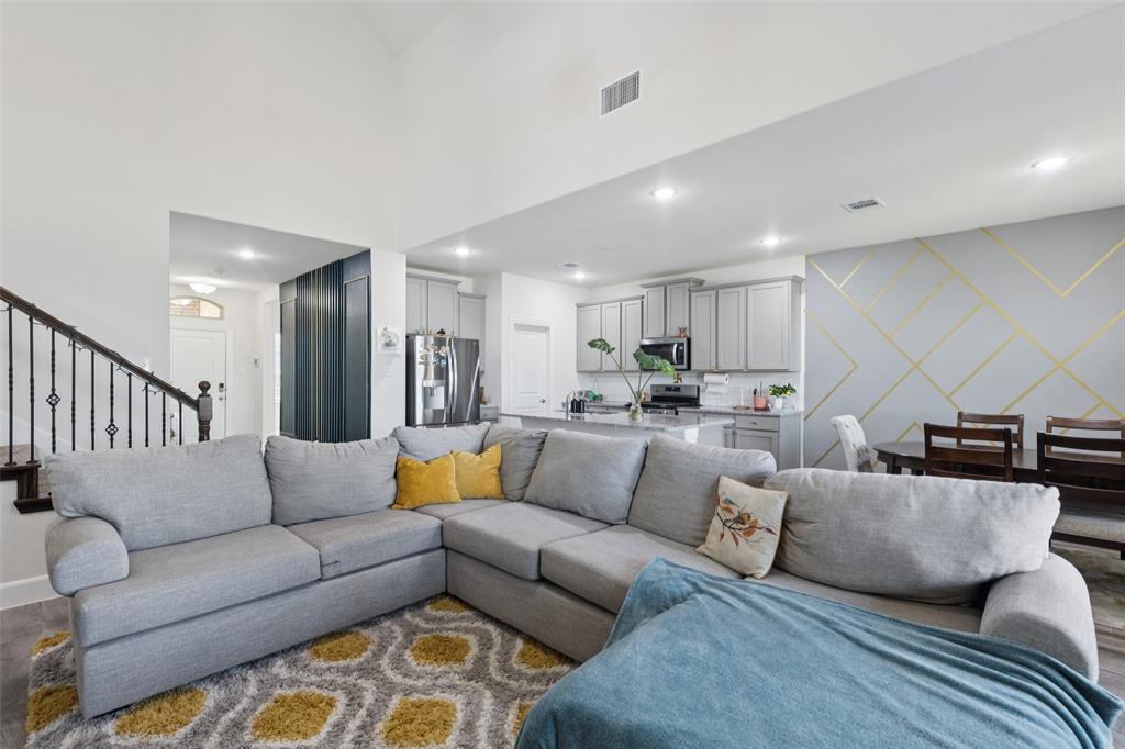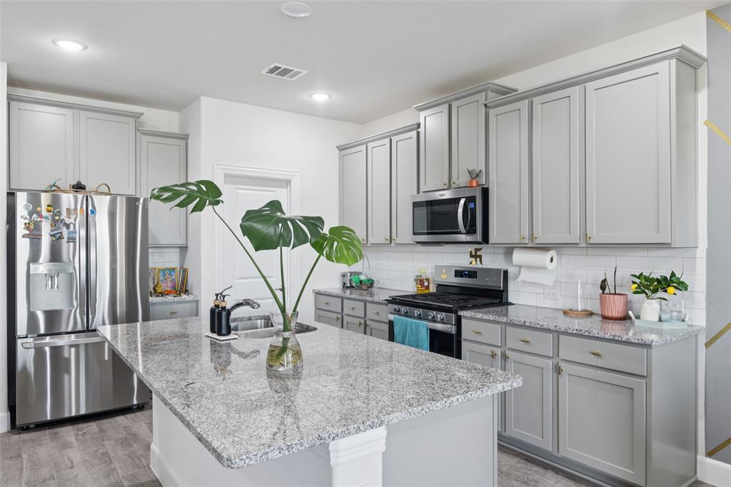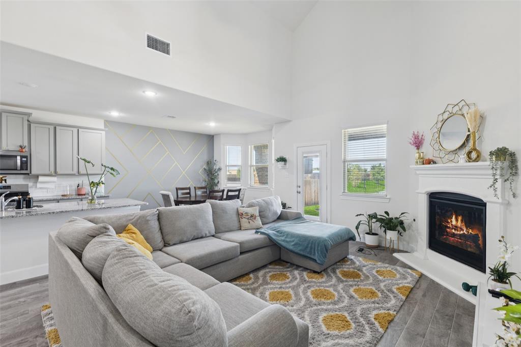 Beautiful and spacious, this 2-story home in Aubrey’s highly sought-after Silverado neighborhood impresses on every level with its light-filled, open-concept design and thoughtful layout. Great curb appeal begins with the striking stone and brick façade, welcoming you inside to a bright interior with a neutral color palette that complements any décor. Stylish touches such as accent walls in the foyer and dining area add warmth and character. Designed for comfort and flexibility, the floorplan is ideal for entertaining or multi-generational living with the primary suite conveniently located downstairs, along with a secondary bedroom and full bath. At the heart of the home is the inviting living room featuring soaring ceilings and a cozy corner fireplace. The chef’s kitchen boasts granite countertops, a large island with breakfast bar, walk-in pantry, and a gas range. Upstairs, a generous bonus space provides endless possibilities as a game room, media space, or second living area. Step outside to a covered patio overlooking the expansive fenced backyard—perfect for a pool, play, or entertaining. Enjoy beautiful and relaxing lake views, offering a serene and picturesque backdrop right from your own home. Silverado residents also benefit from a vibrant community atmosphere.