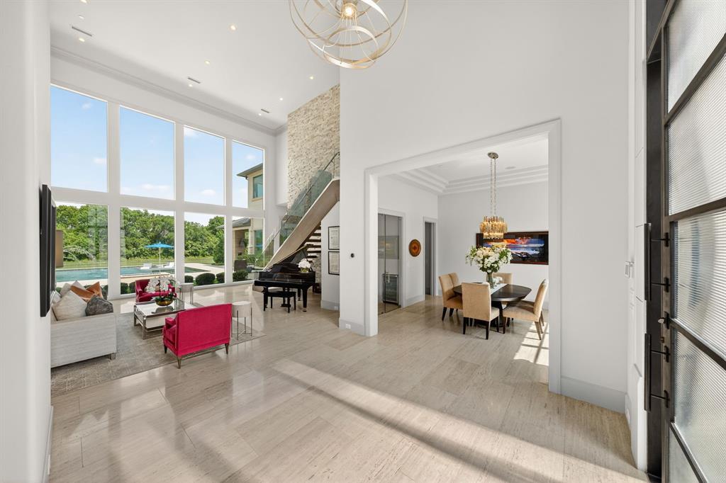 Modern Contemporary Estate with Timeless Design and Panoramic Golf Course Views. Situated on a pristine 0.75-acre lot overlooking the award-winning Arnold Palmer Signature Golf Course at Twin Creeks, this five-bedroom custom estate is the epitome of luxury living. Designed with a modern-contemporary aesthetic, the home seamlessly blends timeless elegance with striking architectural detail. From the moment you enter, you’re greeted by a dramatic mosaic stone feature wall and a floating glass staircase that sets the tone for the exceptional quality throughout. A robust study with built-ins, and French doors. The residence showcases hand-selected designer light fixtures, natural stone and wood flooring. The expansive gourmet kitchen anchored by an expansive quartz island features top-of-the-line stainless steel appliances, superior custom cabinetry, and gas cooktop provides a chef-grade experience. Entertain with ease thanks to a first-level media room, separate wet bar, and open-concept living spaces designed for flow and function. The main floor also includes a luxurious primary suite with views to the oasis style -pool and golf course that carves a tree-lined view and privacy. You will also find a guest bedroom suite on the first level, ideal for guests or in-laws. The second level provides a game room for family entertaining and additional spacious bedrooms. The Bonus Room on 2nd level as optional 6th bedroom, bathroom or home gym. Step outside to your private oasis featuring a custom-designed pool and spa, eye-catching fire pit and a fully equipped outdoor kitchen with grill and fireplace—perfect for year-round entertaining. Located in a private gated enclave within Twin Creeks, this estate offers unparalleled privacy and direct access to one of Texas’s premier golf destinations. Enjoy easy access to top-tier amenities including Legacy West, Stonebriar Country Club, and The Star in Frisco. Freeways; Dallas North Tollway, Highway 121, and George Bush Freeway.