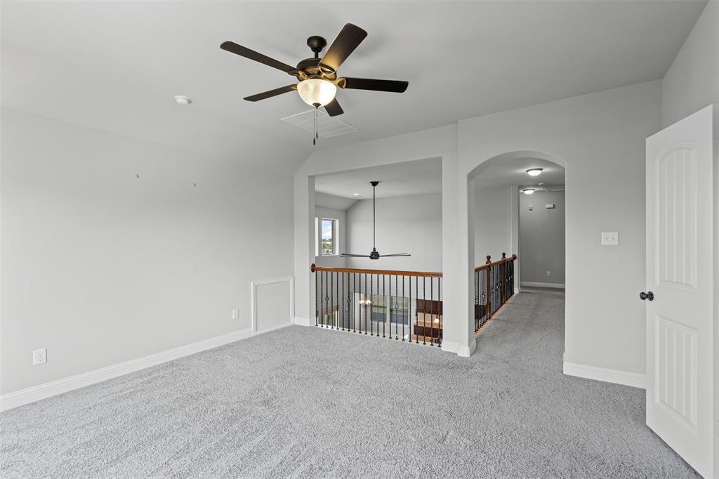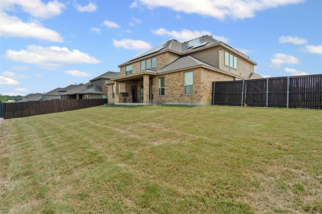 John Houston Custom Homes built this lovely home. A perfect layout with 3 bedrooms downstairs, one is currently used as an office and the 3rd is an en suite. The primary is on the opposite side of the home, so everyone has good personal space. Soaring ceilings and lots of windows offer loads of natural light. Beautiful corner fireplace is naturally the center point of the family room and makes for a grand entrance. Chefs eat-in kitchen with GAS cooking, walk-in pantry, lots of cabinets, granite and stainless appliances. Nice open views all across the back of the home. Gorgeous staircase leading up to the second level with 2 additional bedrooms and a jack n Jill bath. The second living area upstairs has a built in wet bar and there is also a real media room that is so flexible. It could be a pool room, exercise room or man cave. Out back is a covered patio with a great cooking area and grill. You can see the custom quality through out, especially the lovely real wood floors. The current seller installed solar panels for excellent efficiency. These will pass free and clear with the sale. Great location. beautiful home, great schools. Don't miss this one!