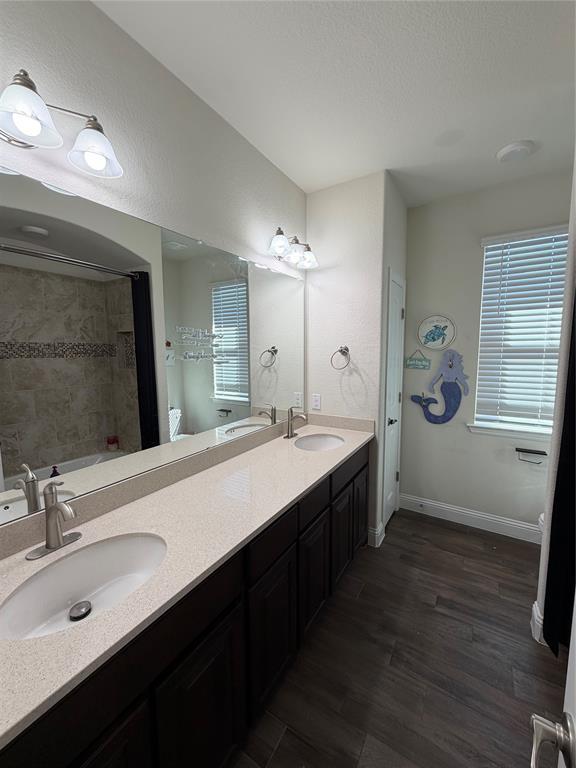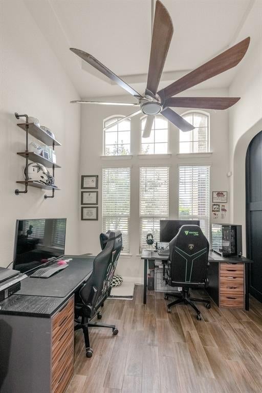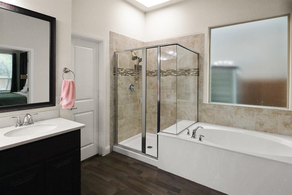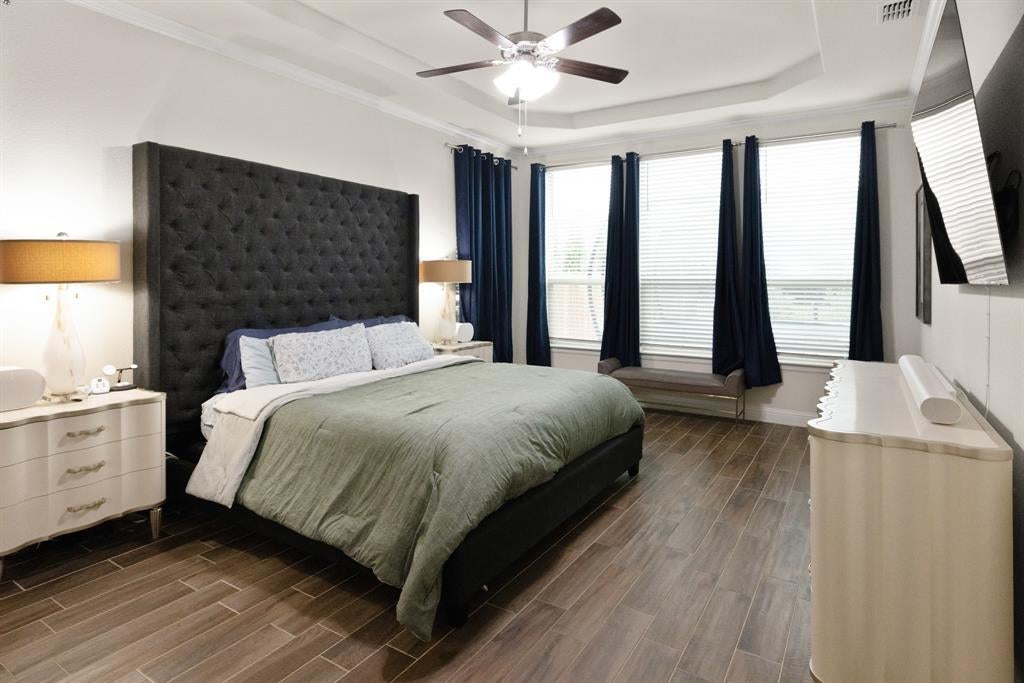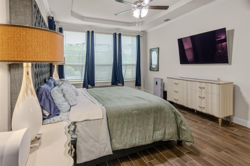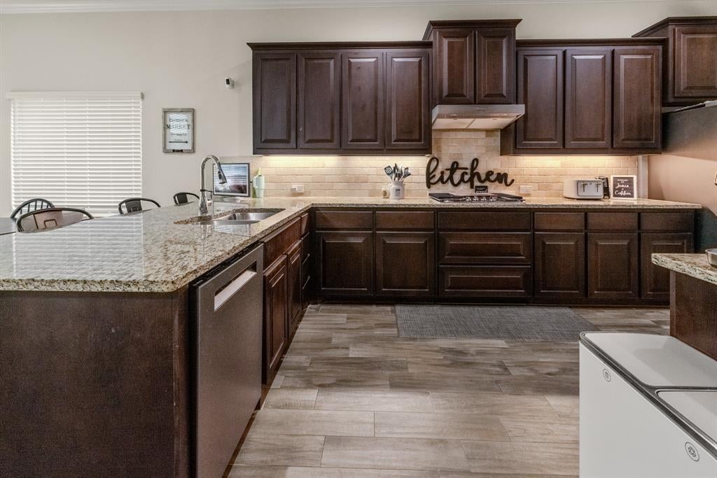 Welcome to this Immaculate 2-story home in the sought-after Morningstar Community, a perfect blend of modern comfort, thoughtful upgrades, and serene greenbelt views. This 4 bedroom, 2.5 bath, 2,644 sq ft, residence features an open-concept layout designed for both entertaining and everyday living. The spacious living room boasts a built in, premier in-wall theater system with an 8K receiver, and a 77 in. TV creating a true home cinema experience. The beautifully appointed kitchen offers upgraded appliances, including a new Signature Series dishwasher, and flows seamlessly into the dining and living spaces. The private primary suite features a custom barn door leading to a luxurious en-suite bath, while the versatile office or flex room is accented by stunning handmade 10-foot barn doors. Upstairs, new flooring adds to the home's move-in ready appeal. The garage is EV ready with dual charging stations, and the professionally designed landscaping includes custom French drains, crushed granite walkways, a river rock flower bed, and automated drip irrigation for effortless maintenance. Relax or entertain under the covered back patio, while enjoying the privacy and peaceful views of the greenbelt area behind you. Located within the highly rated Aledo ISD and offering access to Morningstar's exceptional amenities, including pools, parks, and scenic, trails-this home truly has it all.
