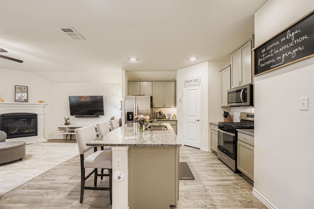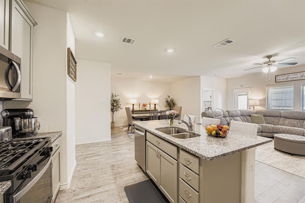 Welcome to this beautiful, nearly new home in the sought-after Silverado community of Aubrey. Featuring an upgraded kitchen with a gas cooktop, modern appliances and open living spaces, this home is designed for both comfort and entertaining, as well as a spacious dining area. Enjoy the spacious backyard, perfect for gatherings or quiet evenings outdoors. The sellers WILL leave the washer, dryer and refrigerator for the new owners at no charge. The Primary bedroom is n the back of the house for privacy. The front bedroom could easily be used as a home office if needed. Silverado offers an unbeatable lifestyle with three sparkling community pools, scenic parks, peaceful ponds, and its own elementary school right in the neighborhood. A wonderful opportunity to experience vibrant community living in a growing area—ready for you to make it your own! Come out and see this lovely home today.