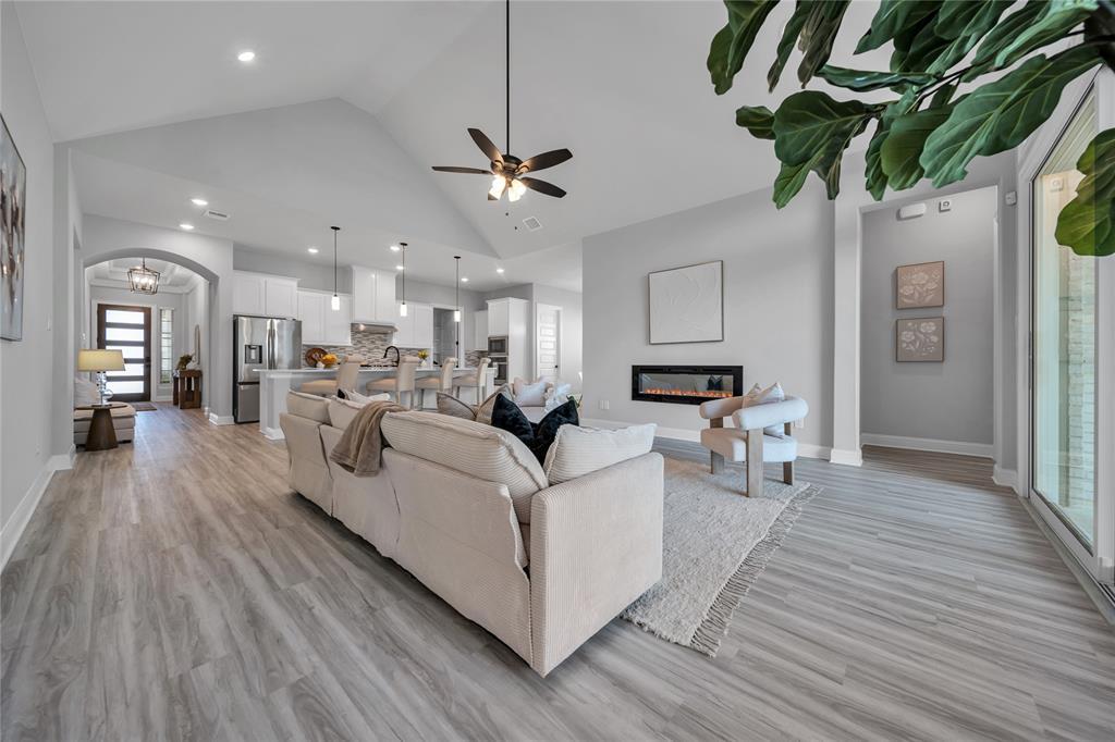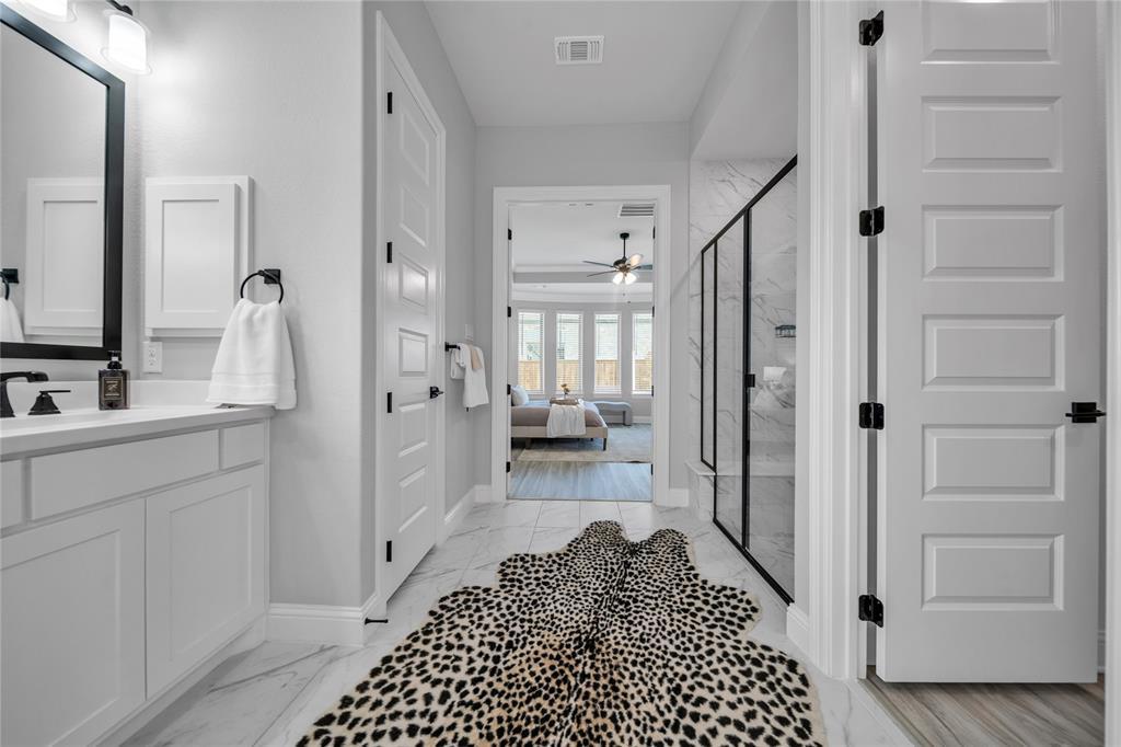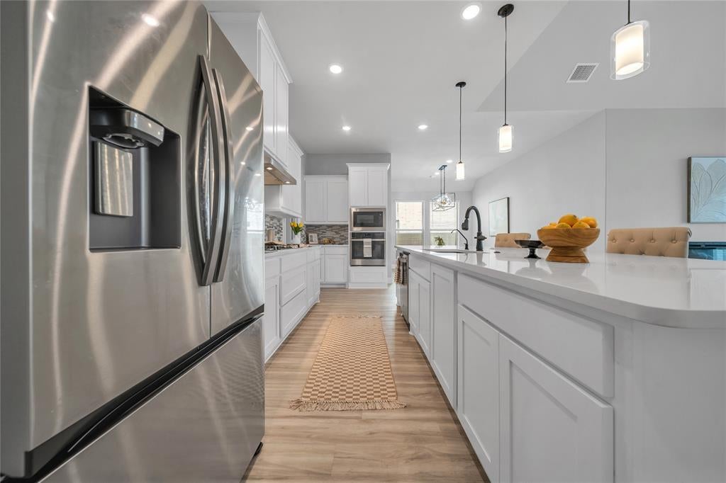 From the moment you walk in, the quality is undeniable. Wide-plank luxury flooring flows through an open, sun-filled layout, while the gourmet kitchen takes center stage with quartz countertops, a designer backsplash, matte black fixtures, and abundant cabinetry. Every bathroom has been elevated with framed mirrors and elegant tilework, and the extended concrete patio provides a perfect outdoor retreat for gatherings, grilling, or quiet evenings under the Texas sky.