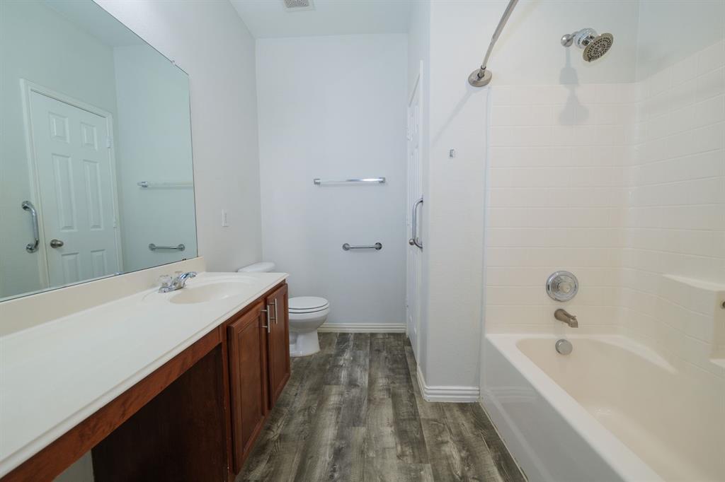 Primary suite with non-carpet flooring, walk-in closet, and low-maintenance living