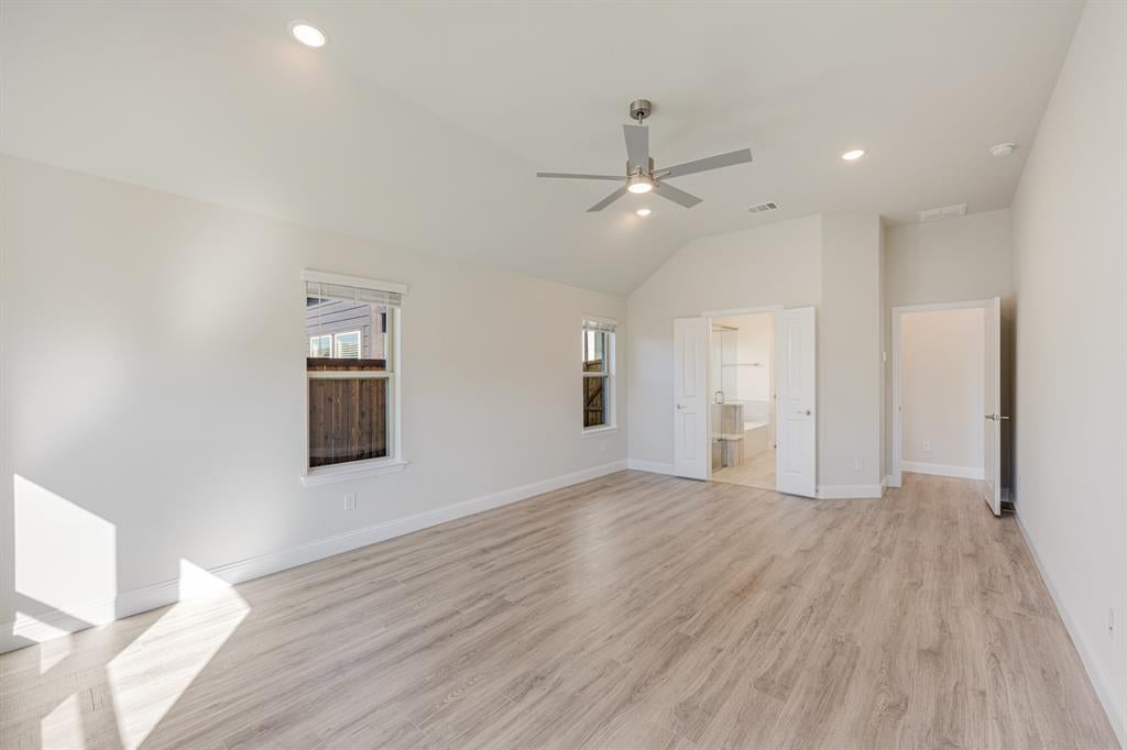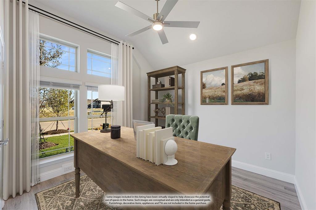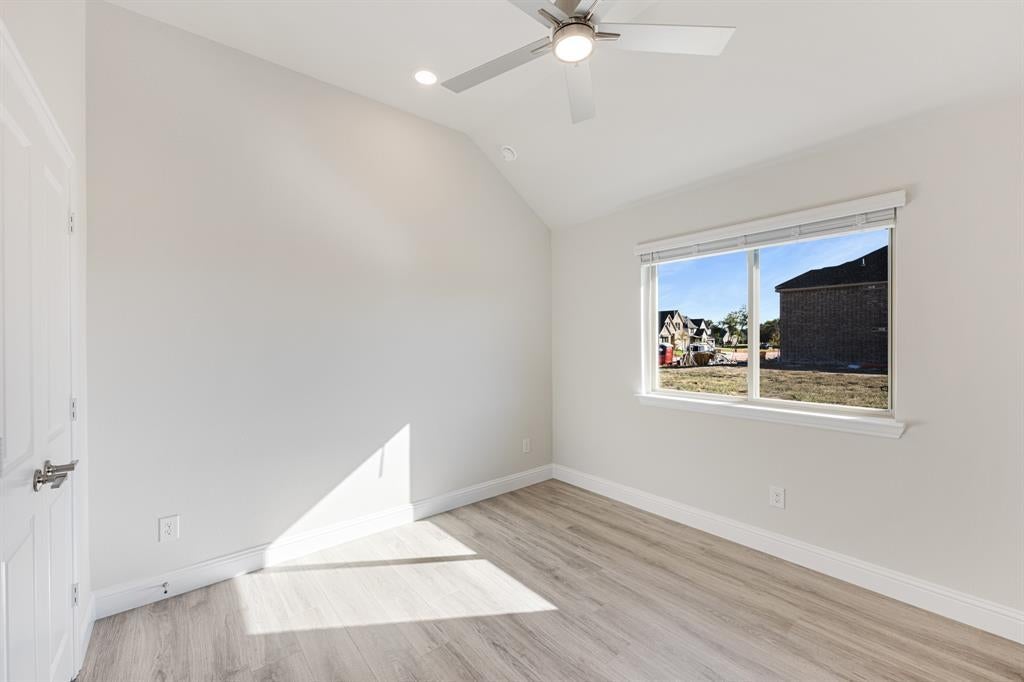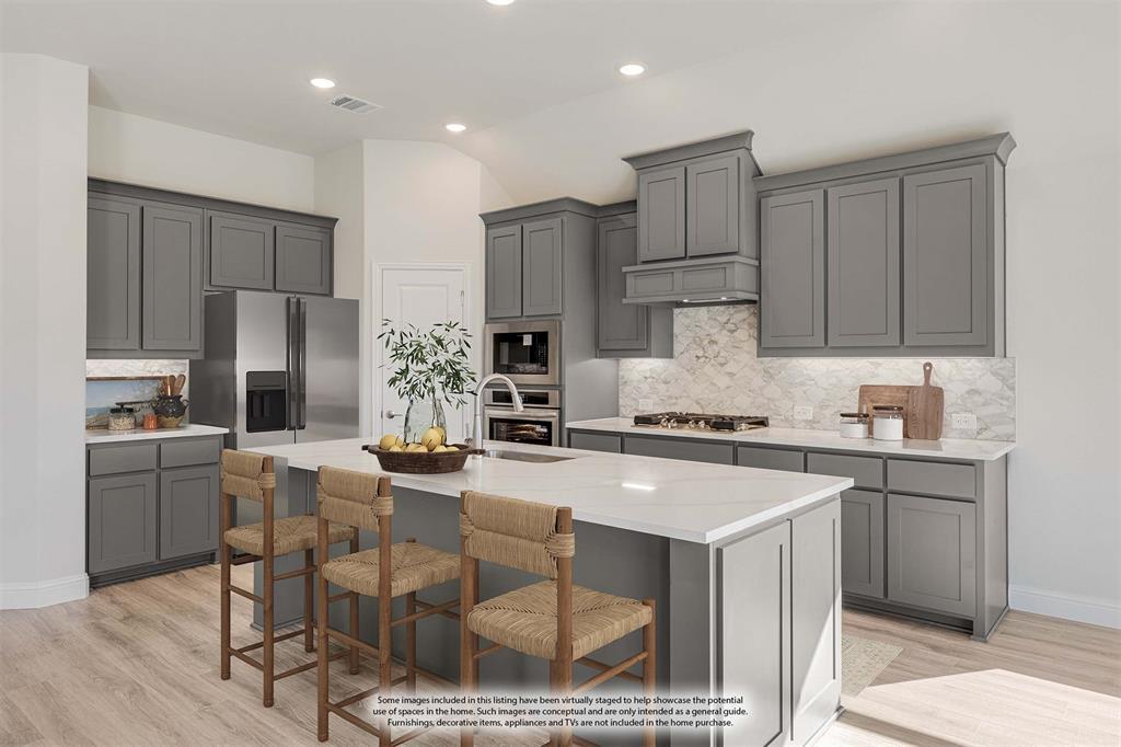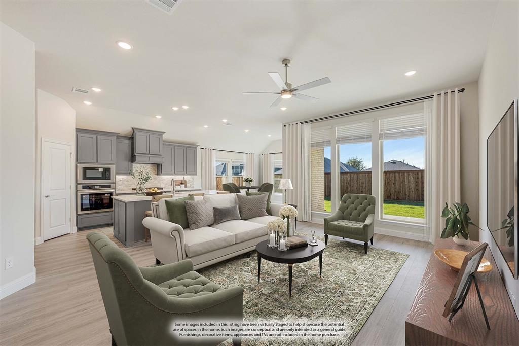 NEVER LIVED IN NEW HOME! QUICK CLOSE READY! Bloomfield Homes has the perfect single-story option for anyone looking in the Denton-Aubrey area—this Jasmine plan offers 4 bedrooms and 3 full bathrooms in a thoughtful layout designed for everyday living. From the moment you step through the 8' front door, you’re greeted by an extended foyer that flows past three secondary bedrooms positioned toward the front and side of the home, each with easy access to full bathrooms that make them ideal for family or guests. Continuing into the heart of the home, the space opens into a bright and welcoming Family Room lined with large windows that fill the home with natural light, while high ceilings create an airy, open feel. The Family Room connects seamlessly to the Kitchen and Breakfast Nook, forming a central gathering space that’s perfect for both relaxed daily routines and entertaining. The Deluxe Kitchen is a standout with quartz countertops, stainless steel appliances, pot and pan drawers, a gas cooktop with a vent hood, and custom cabinetry, all anchored by a large center island that makes meal prep and casual dining easy. Tucked at the back of the home for privacy, the spacious Primary Suite offers a quiet retreat with a spa-like bath featuring dual vanities, a soaking tub, a separate glass-enclosed shower, and a large walk-in closet. Throughout the main living areas, wood-look laminate flooring adds durability and warmth, while soft carpet brings comfort to each bedroom. The home also includes window coverings, full gutters, and a tankless water heater for everyday convenience and efficiency. Out back, a covered patio extends your living space outdoors, offering the perfect spot to unwind, and the interior lot setting in ArrowBrooke combines thoughtful design with upgraded finishes in a prime location.