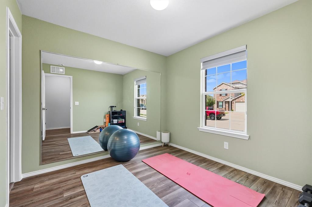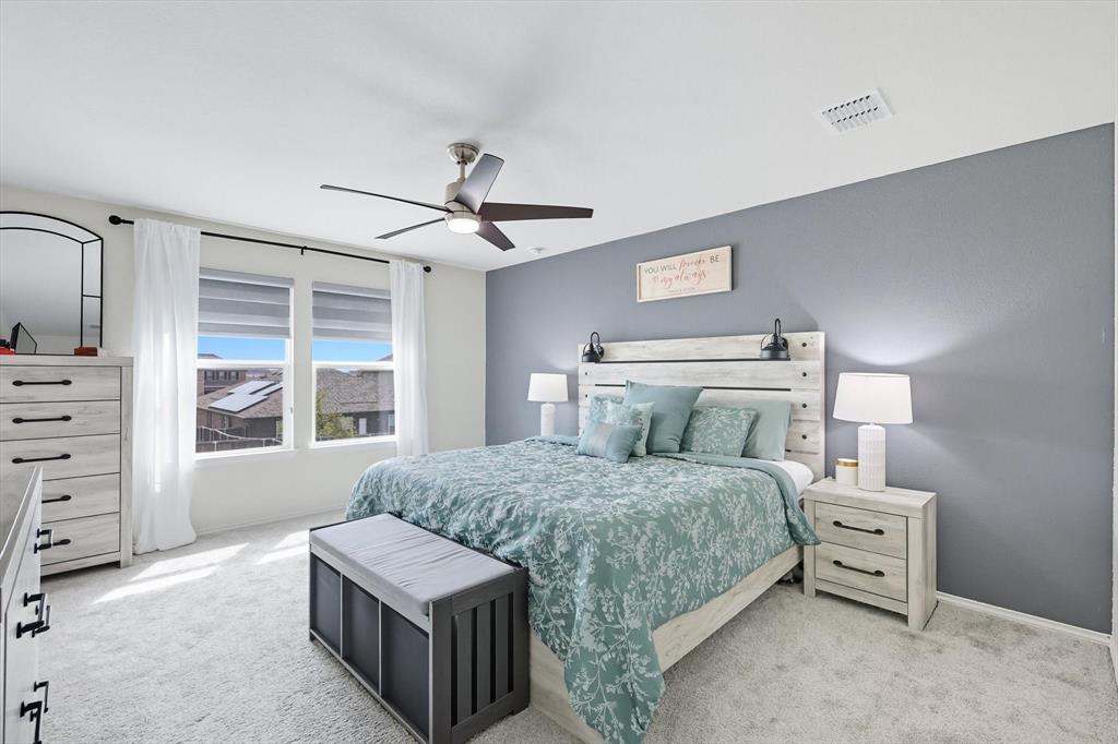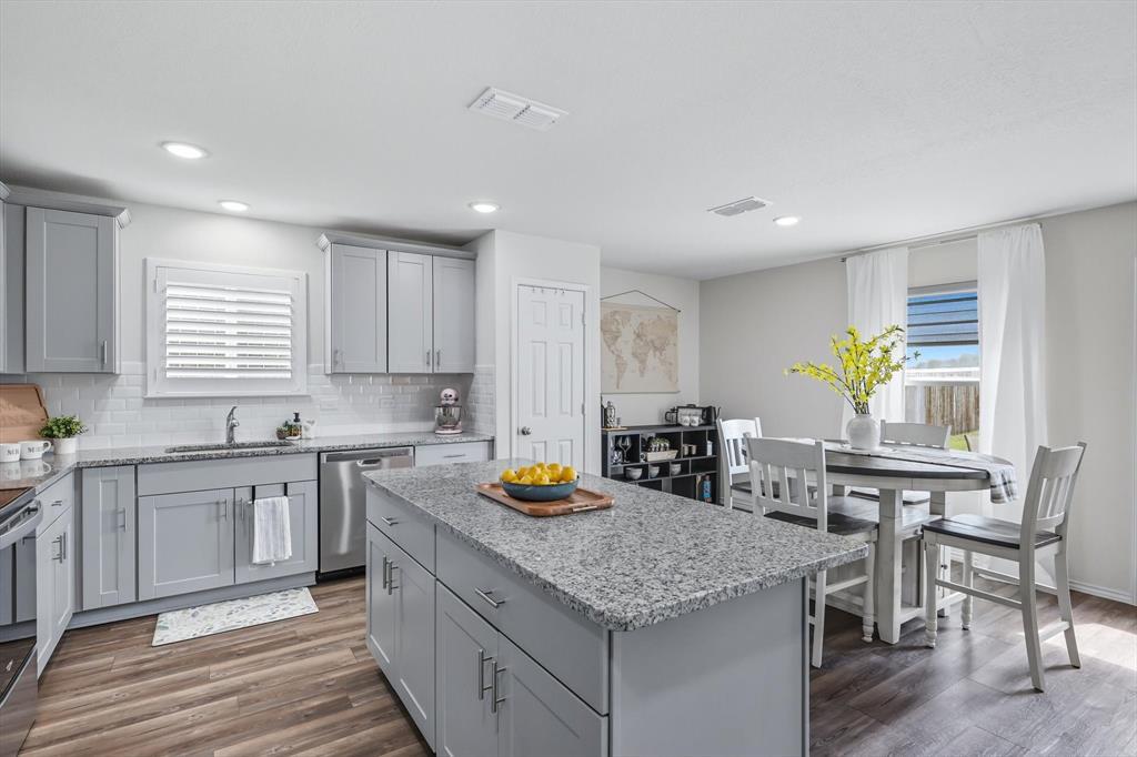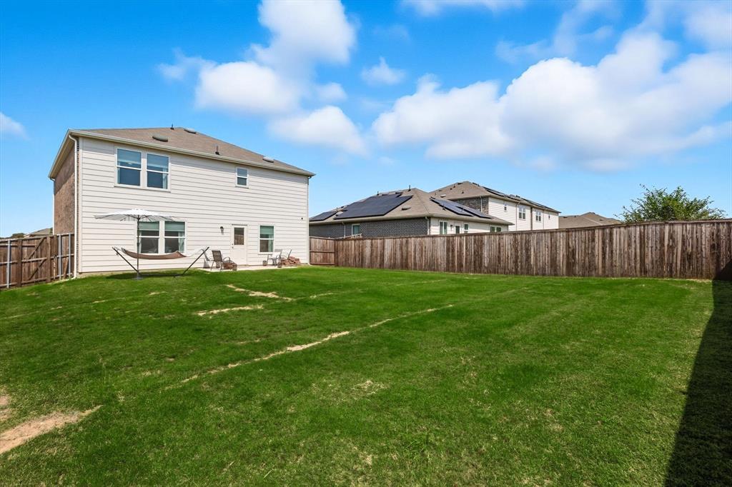 Gorgeous North-Facing 2021 Build in Winn Ridge! Beautiful curb appeal with a brand-new irrigation system front and back. This 4-bedroom, 3-bath home offers both function and flexibility. Luxury vinyl plank flooring flows throughout the main level for style and easy maintenance. A versatile downstairs bedroom—perfect for an office, gym, or guest room—sits next to a full bath. The open-concept kitchen, dining, and family room are filled with natural light. The kitchen features granite countertops, a large island, and stainless steel appliances—a true chef’s delight. Upstairs, enjoy a spacious game room with room for a second office setup. The primary suite boasts a spa-like bath with soaking tub, glass shower, dual sinks, and a large walk-in closet. Two secondary bedrooms share a full bath, and the upstairs laundry is conveniently located near the bedrooms. The backyard offers plenty of space for entertaining, play, or pets. Neighborhood amenities include a pool, splash pad, playgrounds, dog park, fire pits, and sports fields. Ideally located near Costco, H-E-B, PGA Frisco, schools, parks, and shopping—this home is the perfect blend of style, comfort, and convenience!