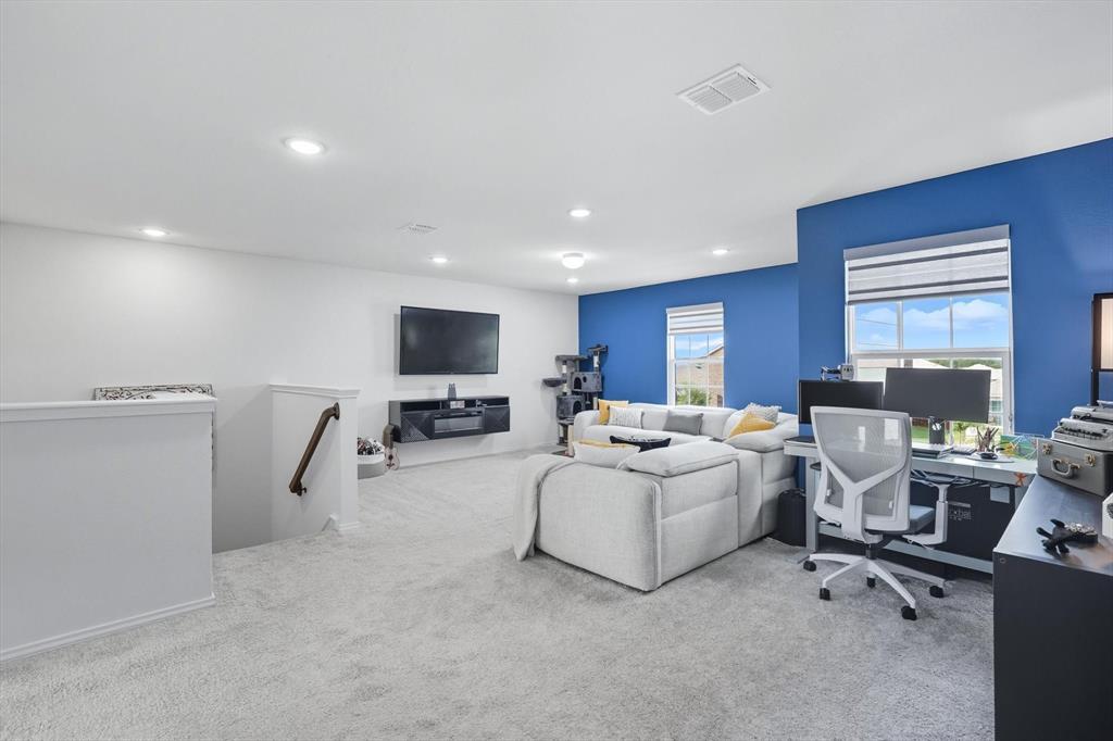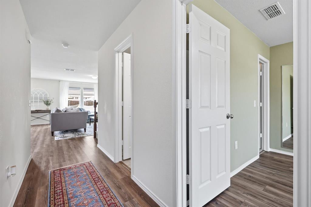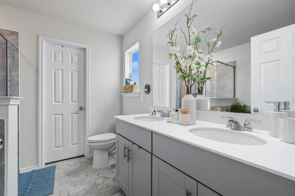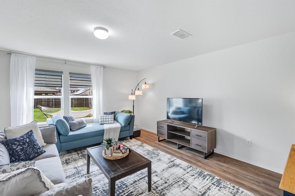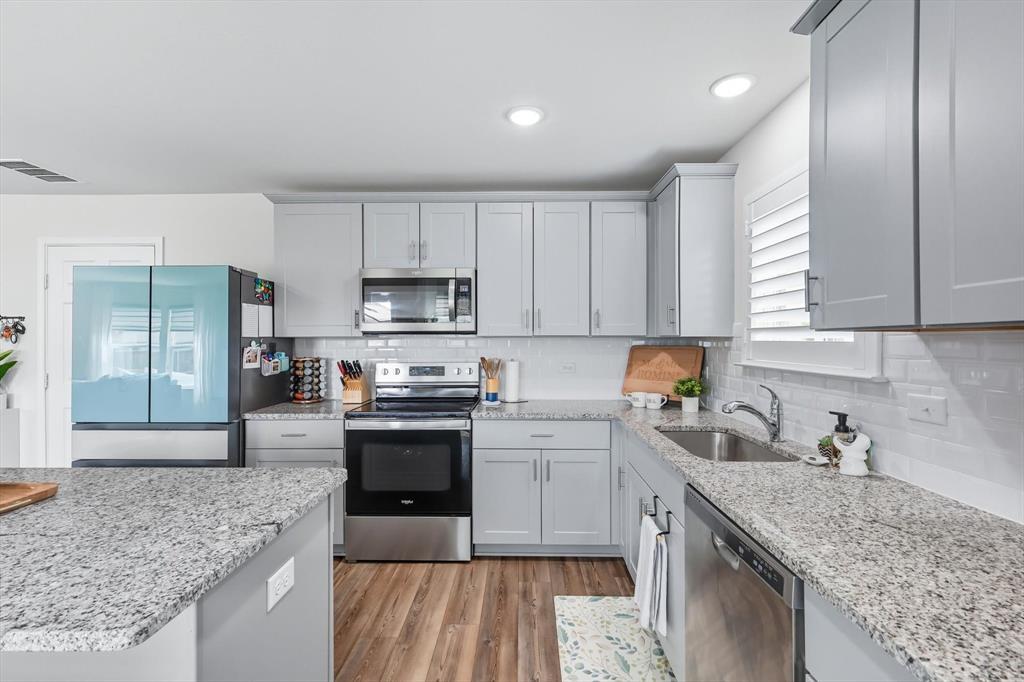 Gorgeous North-Facing 2021 Build in Winn Ridge! Beautiful curb appeal with a brand-new irrigation system front and back. This 4-bedroom, 3-bath home offers both function and flexibility. Luxury vinyl plank flooring flows throughout the main level for style and easy maintenance. A versatile downstairs bedroom—perfect for an office, gym, or guest room—sits next to a full bath. The open-concept kitchen, dining, and family room are filled with natural light. The kitchen features granite countertops, a large island, and stainless steel appliances—a true chef’s delight. Upstairs, enjoy a spacious game room with room for a second office setup. The primary suite boasts a spa-like bath with soaking tub, glass shower, dual sinks, and a large walk-in closet. Two secondary bedrooms share a full bath, and the upstairs laundry is conveniently located near the bedrooms. The backyard offers plenty of space for entertaining, play, or pets. Neighborhood amenities include a pool, splash pad, playgrounds, dog park, fire pits, and sports fields. Ideally located near Costco, H-E-B, PGA Frisco, schools, parks, and shopping—this home is the perfect blend of style, comfort, and convenience!
