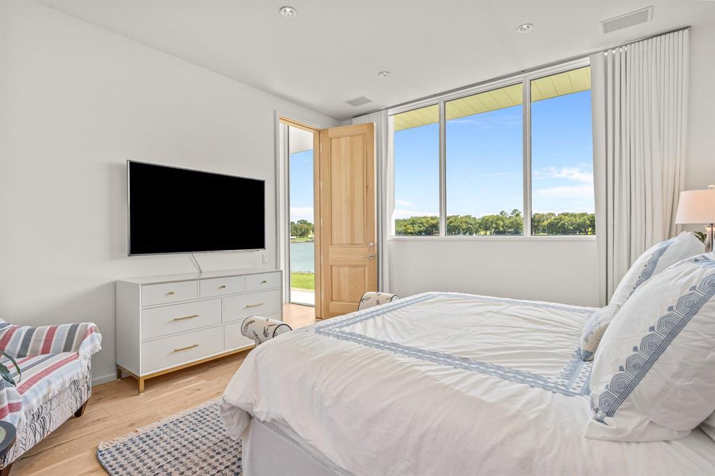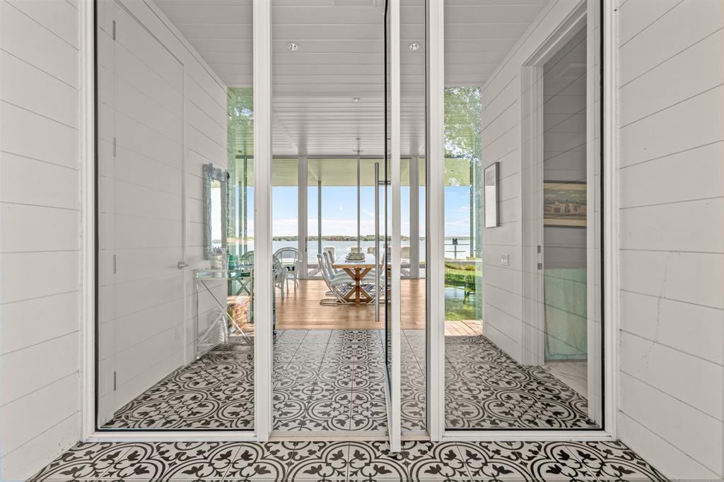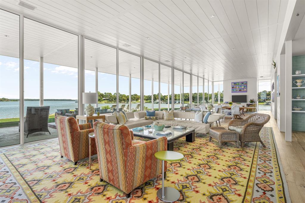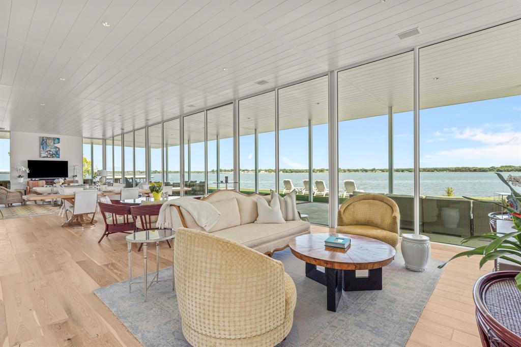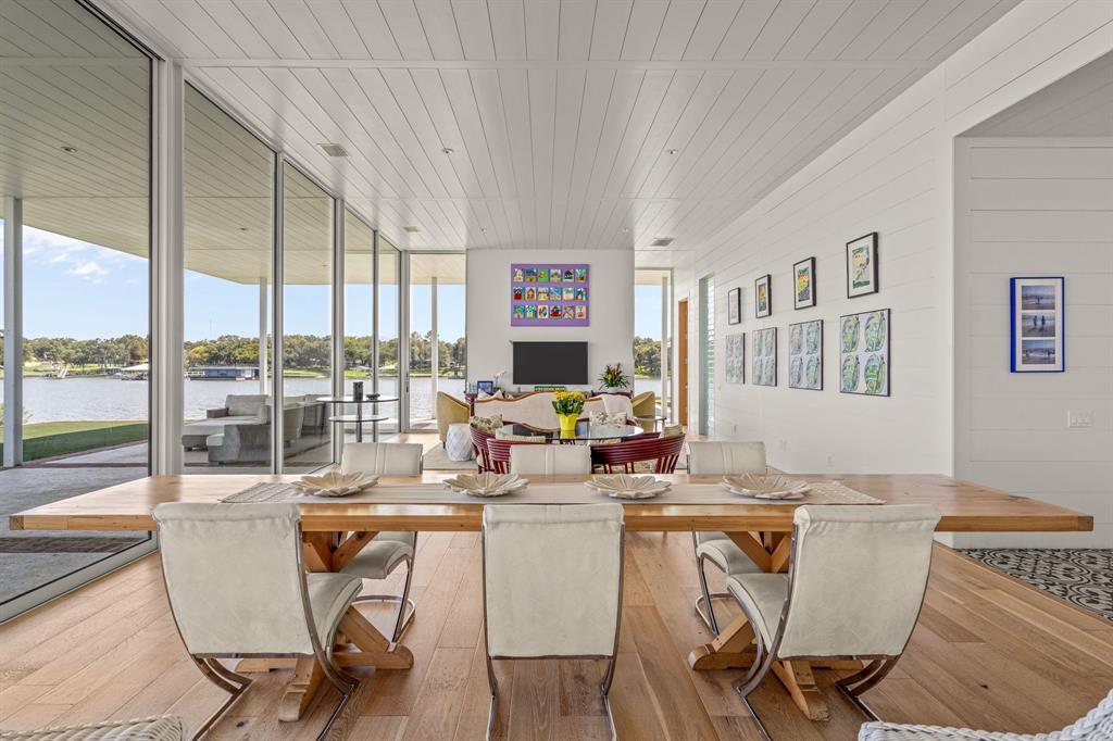 This single-story Eagle Mountain Lake retreat, designed for effortless lakeside entertaining, sits gracefully on 2.164 acres with 750 feet of waterfront. The open-concept layout is framed by floor-to-ceiling windows that showcase sweeping lake views, while a chef’s kitchen boasts a marble island, Miele appliances, and four refrigerator drawers, with a laundry room that doubles as a secondary walk-in pantry. A covered porch wraps around three sides of the home, complete with a built-in bar top and serving area, and beyond the patio a manicured turf yard provides a serene setting for relaxation. The floating dock with boat and jet ski lift enhances the lakefront lifestyle. Prepared for future expansion, the home includes a large attic as well as a separate 1,200-square-foot suite nearing completion, offering panoramic views, private his-and-hers ensuites, and separate closets. Additional amenities include a gated drive with RV and boat parking, plus an Airstream, boat, and jet skis—making this the ultimate turnkey lake property.
