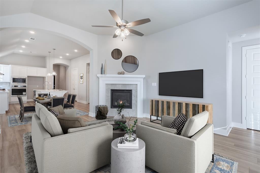 Luxury vinyl plank floors that are both beautiful and practical, Direct-vent gas fireplace with stylish tile surround and beautiful mantle, Smart storage throughout the home, Separate laundry room with built-in shelving, and an extended covered patio for outdoor dinners and lazy weekend mornings. Beyond the home itself, the community offers amenities that make every day feel like a getaway including scenic trails for relaxing walks, the Carriage House & event lawn for gatherings, a resort-style pool & splash pad for summer fun, & a multi-level treehouse built for young adventurers. There’s even a 1.6-acre dog park for four-legged friends, plus a lakeside patio & fire pit perfect for cozy evenings under the stars. Finally, a well-equipped fitness center means your workouts are just a short jaunt away. Conveniently located to shopping, PGA, Frisco Fields and major highways.