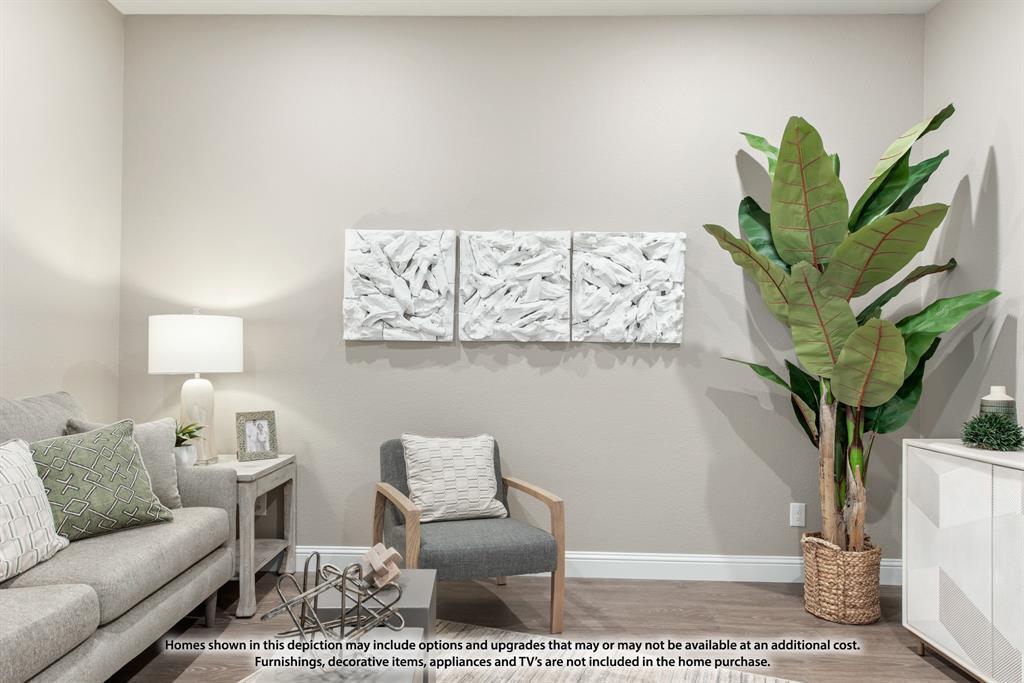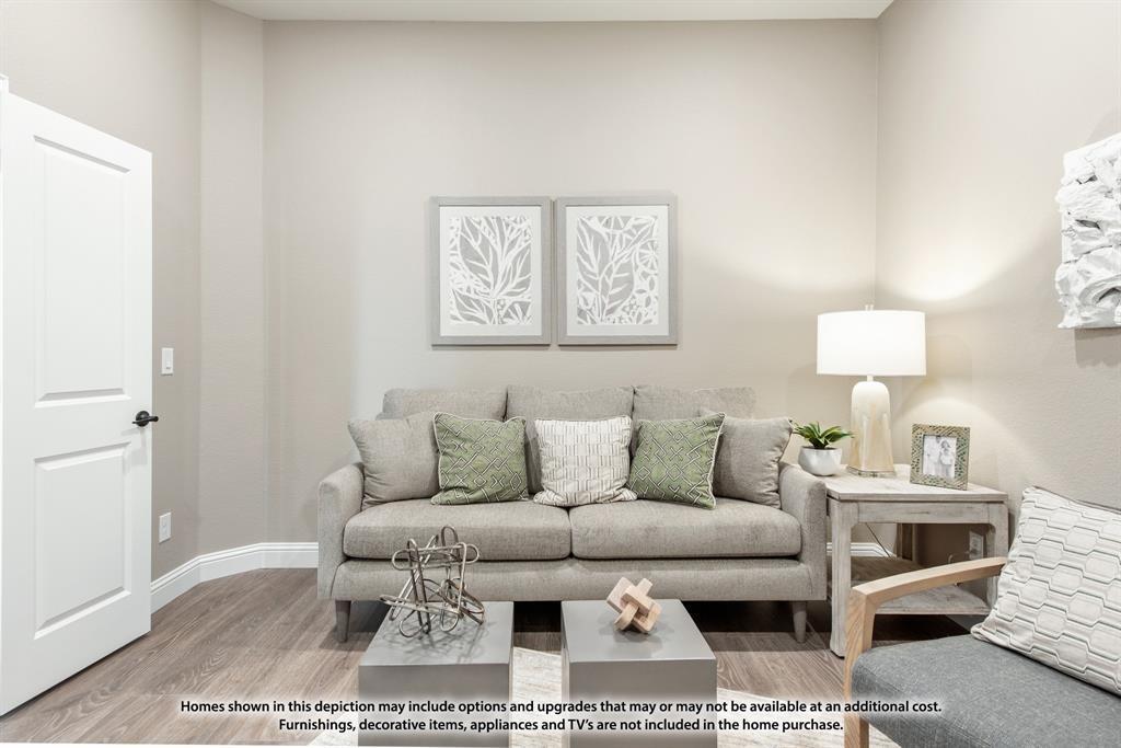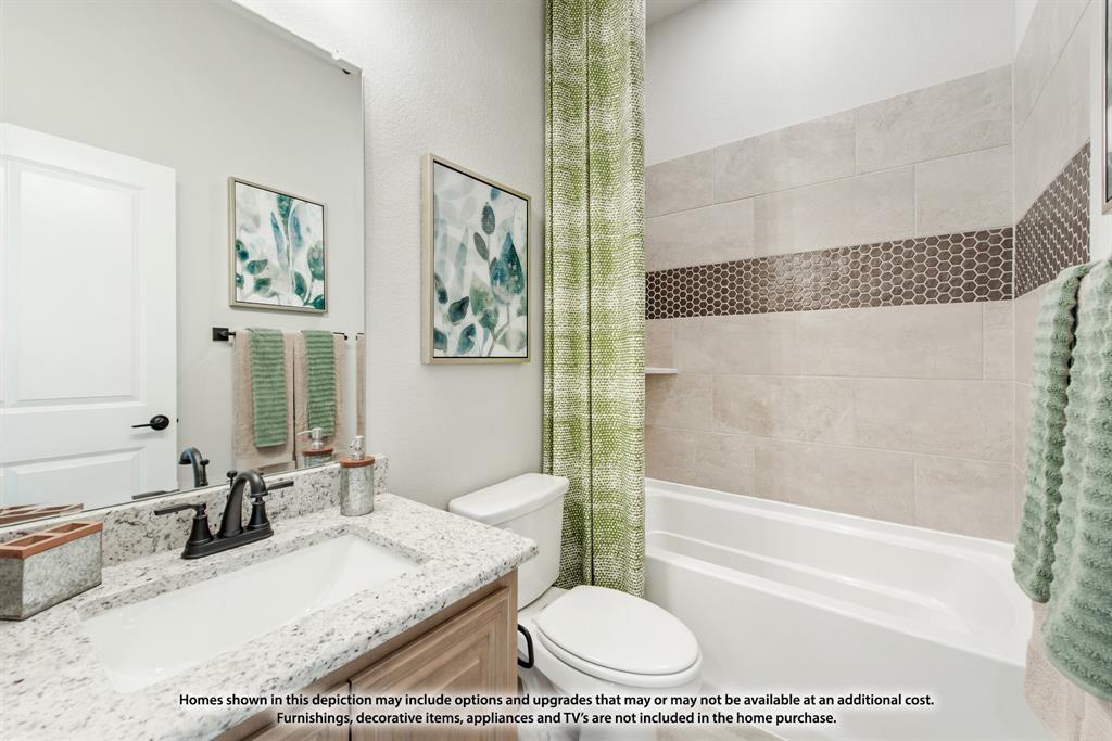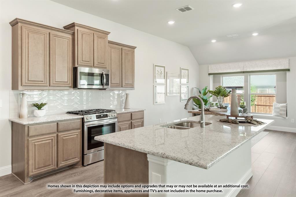 New & Never Lived In! Construction finishing this month! This spacious 3-bedroom, 3-bathroom home with a 2-car garage is a standout from Bloomfield Homes, offering comfort, style, and thoughtful upgrades throughout. From the curb, the home greets you with timeless charm — a beautiful brick and stone front elevation, cedar wood garage door, and an inviting covered front porch with outdoor lighting set the stage for what’s inside. Through the 8’ front door, you're led into a bright, open layout designed for modern living. At the heart of the home is a stunning Deluxe Kitchen, featuring double ovens, a 5-burner gas cooktop, and a large island that flows seamlessly into the Family Room, where a tile-to-ceiling fireplace and vaulted ceilings create a cozy, yet grand atmosphere. This single-story plan includes a guest bedroom with its own private ensuite bath—perfect for visitors or multigenerational living—as well as a study with glass French doors, offering privacy for work or hobbies. The main living areas are finished with durable and stylish wood-look tile flooring, adding warmth and flow throughout. Retreat to the Primary Suite, where you’ll find space to unwind and a spa-like bath setup. Throughout the home, smart design touches like natural gas heat with a tankless water heater help boost energy efficiency. Step out back to enjoy the covered patio, complete with outdoor lighting for relaxing evenings or weekend get-togethers. Located in a vibrant community with a swimming pool and five nearby parks, this home offers the perfect blend of indoor elegance and outdoor enjoyment. Come experience how Bloomfield Homes brings thoughtful design to life—schedule your visit at The Oaks today!