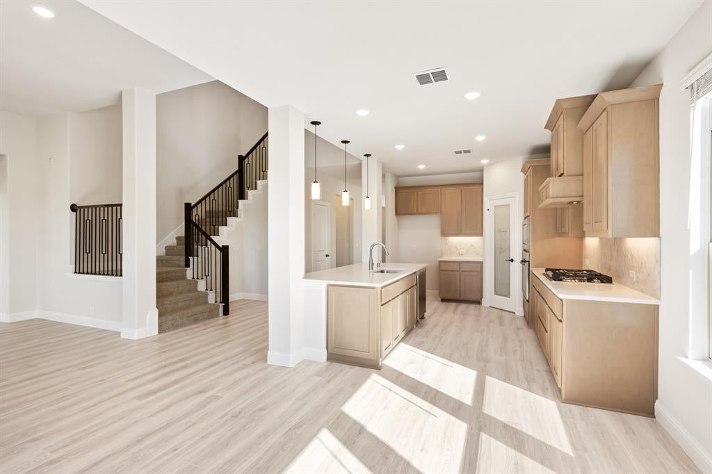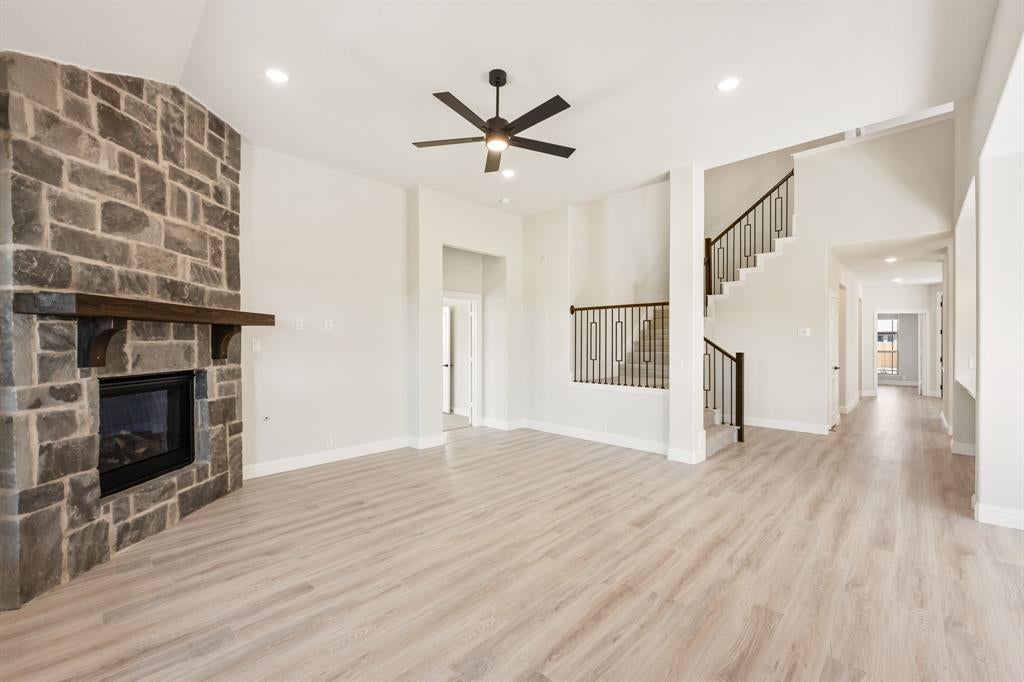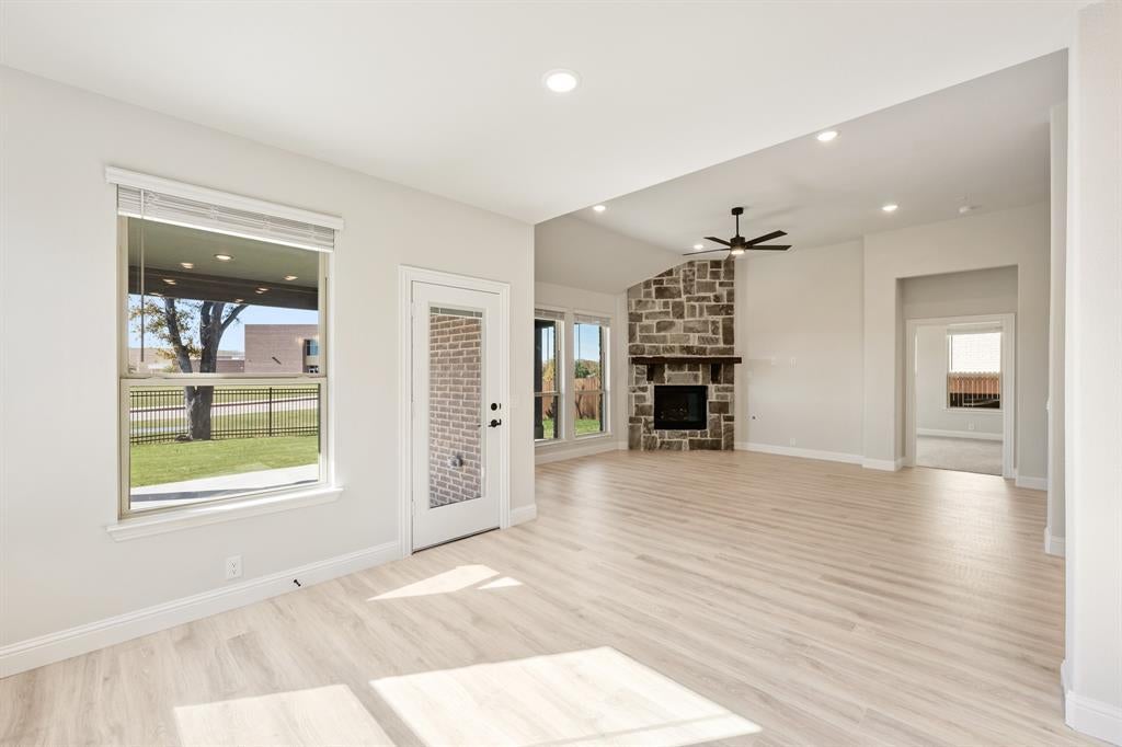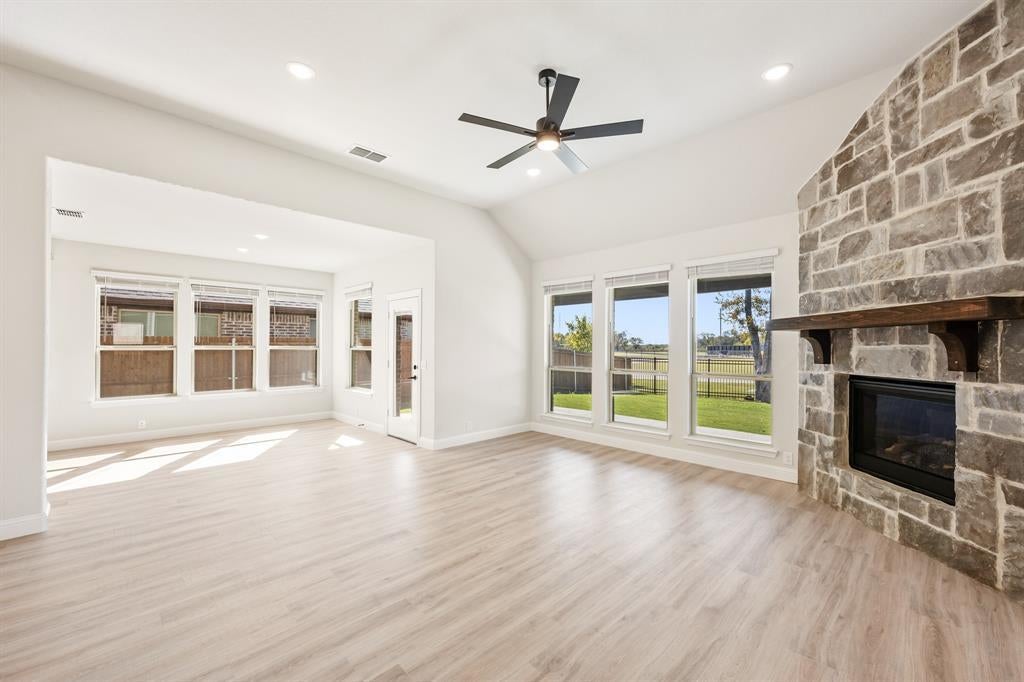 *3% towards financing with any lender.* New, Never Lived In! Move-In Ready! The Magnolia II by Bloomfield Homes is a spacious and stylish 4 bedroom, 3 bathroom, two-story home with a 2-car garage, designed for comfort, function, and elevated everyday living. From the street, the home makes a strong impression with its striking front elevation uplights, full gutters, and an 8’ front door that welcomes you into a bright and open layout. A covered front porch sets the tone for relaxed mornings or quiet evenings, and leads you inside to discover the beauty of this thoughtfully upgraded floor plan. The heart of the home is the Deluxe Kitchen, equipped with a glass pantry door, custom tile backsplash, sleek pendant lights over the island,—perfect for entertaining or gathering with loved ones. Throughout the main areas, you'll find durable laminate wood flooring, offering both style and easy maintenance. In the Family Room, soaring vaulted ceilings and a stunning stone-to-ceiling fireplace with a cedar mantel and vent create a warm, impressive centerpiece. Thoughtful additions like a mud room, charming window seats, and full window coverings throughout the home make everyday life a little easier—and a lot more comfortable. Step outside to enjoy the covered back patio with an extended concrete area, giving you plenty of space for outdoor dining, relaxing, or entertaining guests. The Magnolia II combines elegant design with practical features, all delivered with the trusted quality of Bloomfield Homes. Don’t miss your chance to make this beautifully crafted home yours—schedule a visit today at Ridge Ranch in Mesquite!