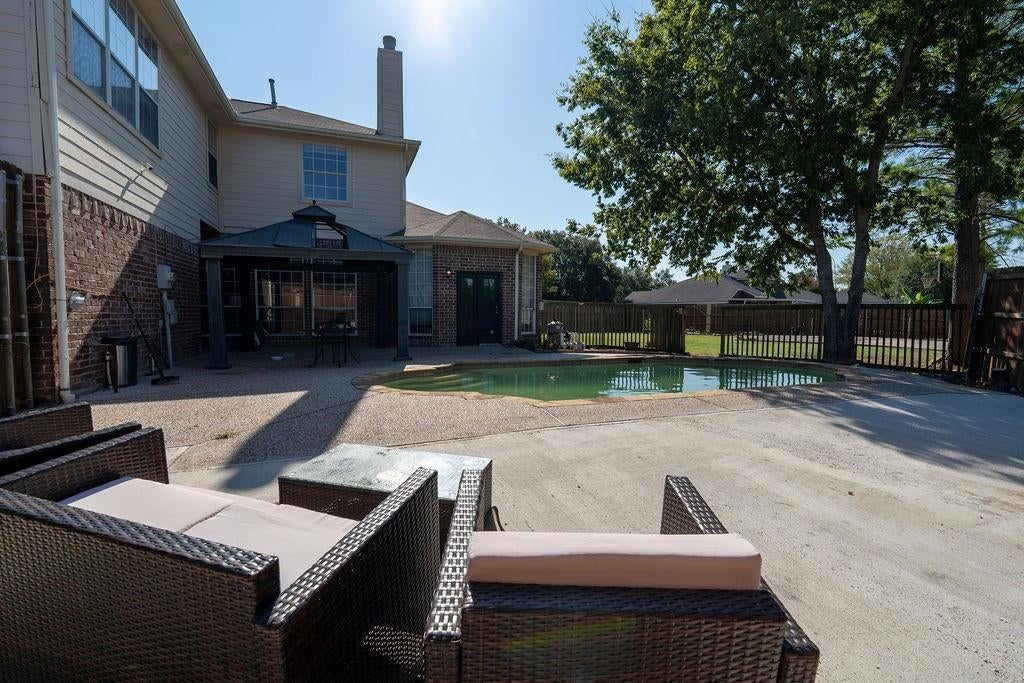 Upscale, 4-bedroom, 3.5-bath traditional home, offering over 3,500 square feet of living space in the highly sought-after Creek Crossing Estates. Situated on an oversized interior lot of just under half an acre, this home offers an impressive combination of comfort, style, and amenities. The main level has multiple living areas, including a spacious formal living room, a family room anchored by a cozy fireplace, and an elegant formal dining area. For those working or studying from home, a private office with French doors provides both functionality and privacy. The kitchen is designed for both everyday use and entertaining. It features a large center island, a convenient breakfast bar, plenty of cabinet space, pantry storage, and stainless appliances. The adjoining breakfast room offers a casual dining option with views of the backyard pool. The downstairs primary suite is a true retreat. French doors lead directly to the pool and patio area, while a fireplace creates a warm and relaxing atmosphere. The spa-inspired ensuite bath is equipped with dual vanities, a garden tub, separate shower, and a generously sized walk-in closet. Upstairs, there's a large game room, a versatile bonus room, and three additional bedrooms. Each bedroom is well-sized, with one featuring a private ensuite bath and another two connected by a convenient Jack & Jill bathroom. Step outside to enjoy your private backyard retreat. The sparkling in-ground gunite pool is the perfect place to cool off during warm Texas summers. A basketball court offers additional recreation options, while the spacious lawn provide plenty of room for entertaining, play, or quiet relaxation. Additional features include a 3-car attached garage with rear entry, dual staircases, vaulted ceilings, and wood flooring. Buyer and agent to verify all information including but not limited to measurements, schools, room sizes, zoning, property condition, and MLS data. Information deemed reliable but not guaranteed.